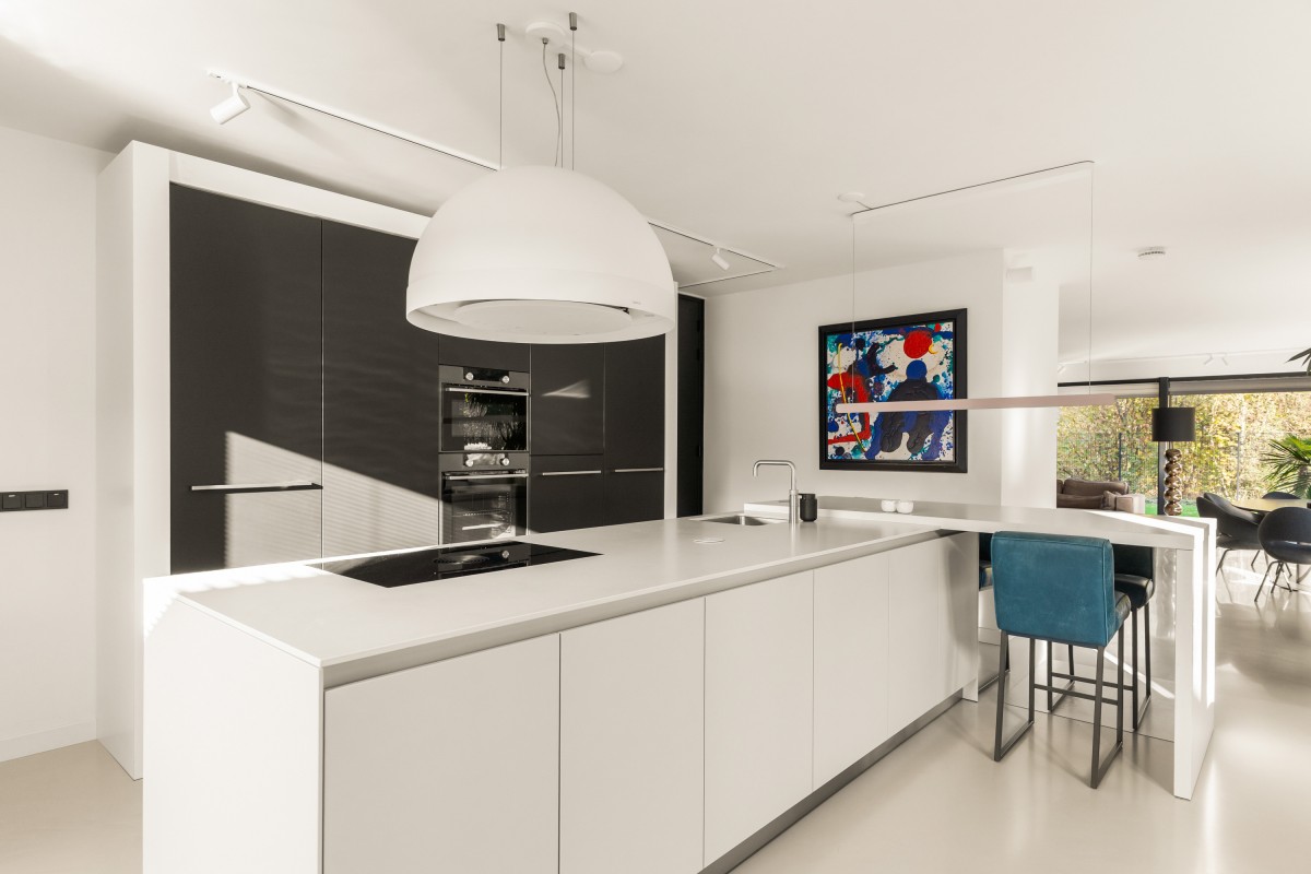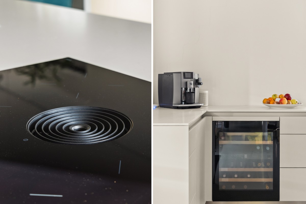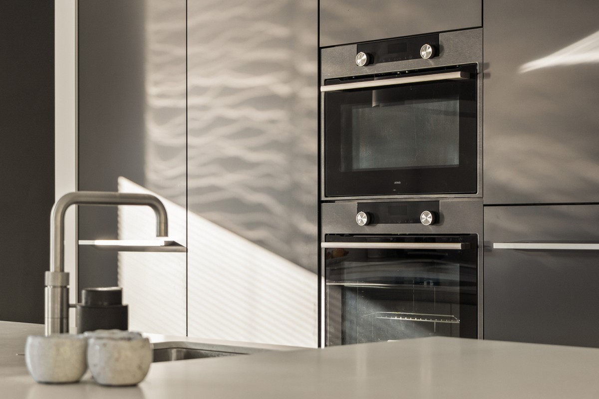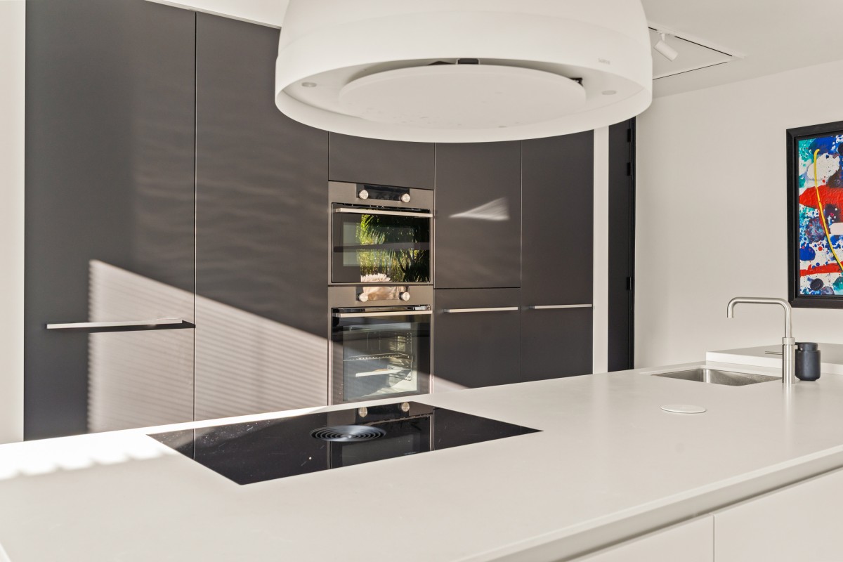 Via de entree kom je in de hal met meterkast, garderobe (met maatwerk kast), toiletruimte en een deur naar de sfeervolle keuken. De luxe Bulthaup keuken is ruim opgezet en biedt volop mogelijkheden om uitgebreid te koken of samen de dag te beginnen met een goede espresso aan de gezellige bar. Het kookeiland is voorzien van een inductiekookplaat met geïntegreerde afzuiging, een wasbak met Quooker kraan, vaatwasser, een composiet blad en veel werkruimte. De wand is ingericht met een koelkast, vriezer, oven en combi-oven. En natuurlijk mag een klimaatkast in een luxe keuken niet ontbreken! Voor extra proviand of om bijvoorbeeld de stofzuiger op te bergen, is er ook een handige bergkast.