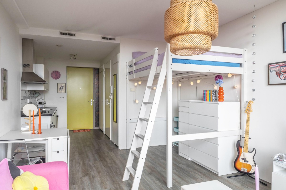 Bright studio apartment located within the Ring of Amsterdam, in a fully renovated complex from 2016. The apartment includes a private storage unit in the basement. With the Bos en Lommerplantsoen right at your doorstep and a restaurant on the water next to the building, this is a pleasant and practical living environment. The complex formerly known as the GAK building was completely renovated and transformed into a modern residential building in 2014. Amenities such as dual elevators, an on-site caretaker, a secure bike storage room, and a communal laundry area with (Miele) washers and dryers make living here extra comfortable. Access to the building is exclusively for residents.
