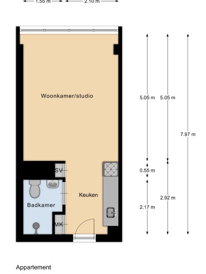- Woonoppervlakte circa 29 m² (conform NEN2580 meetrapport);