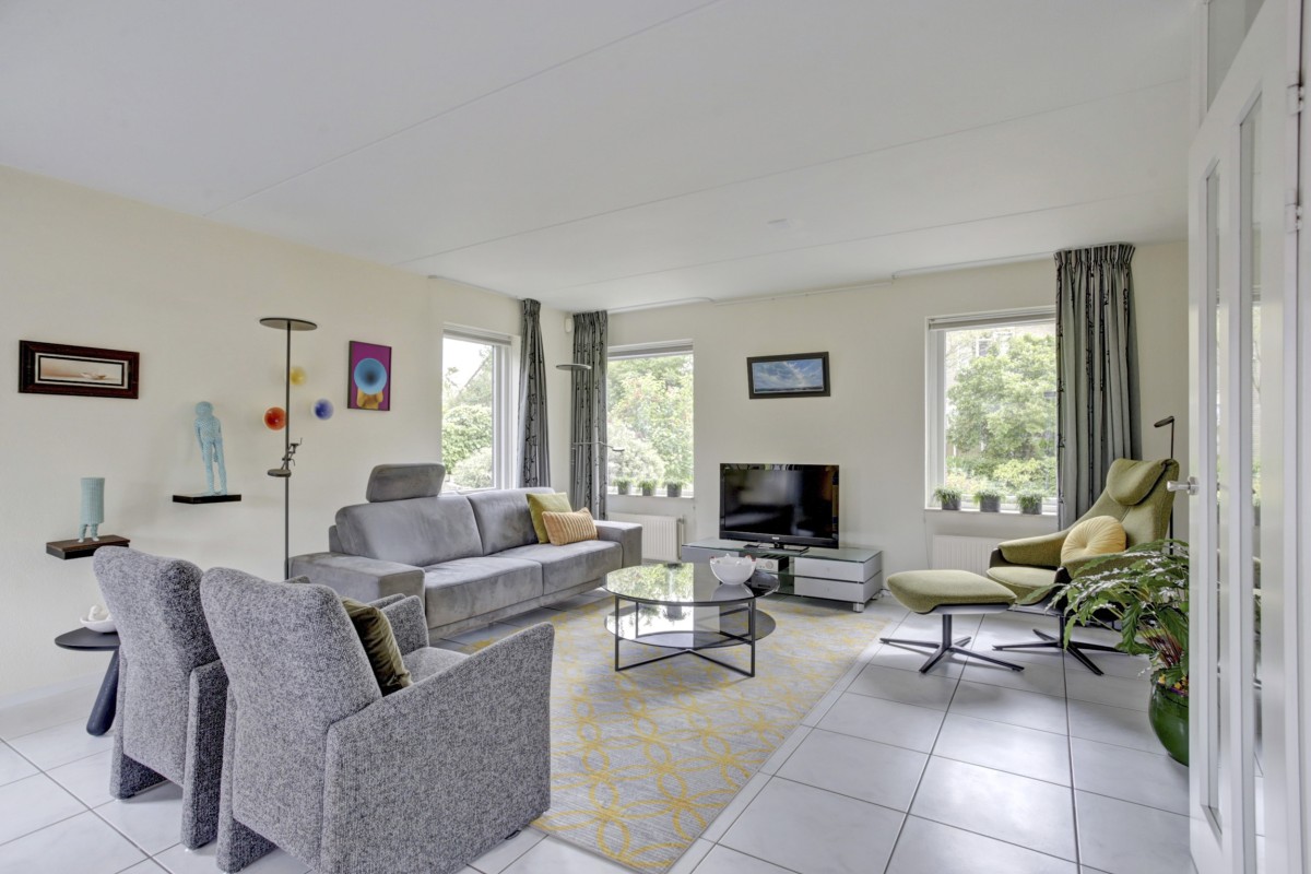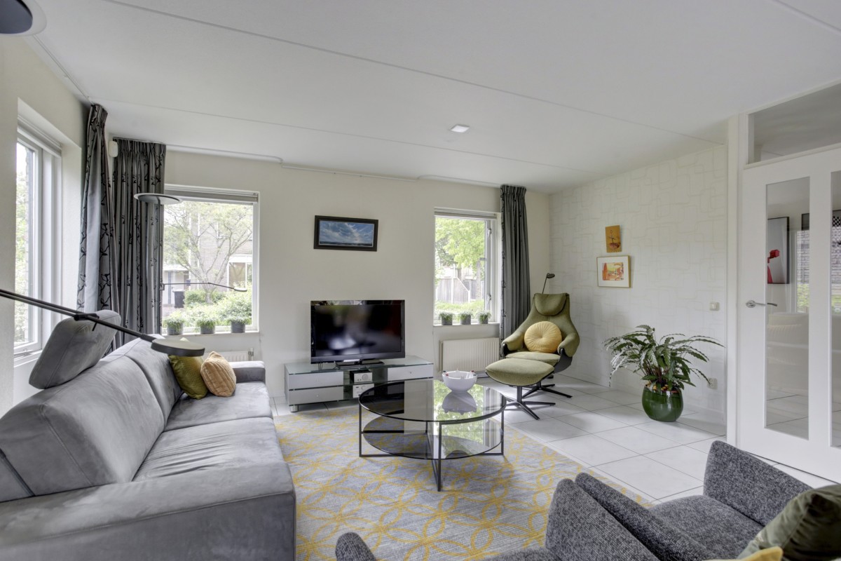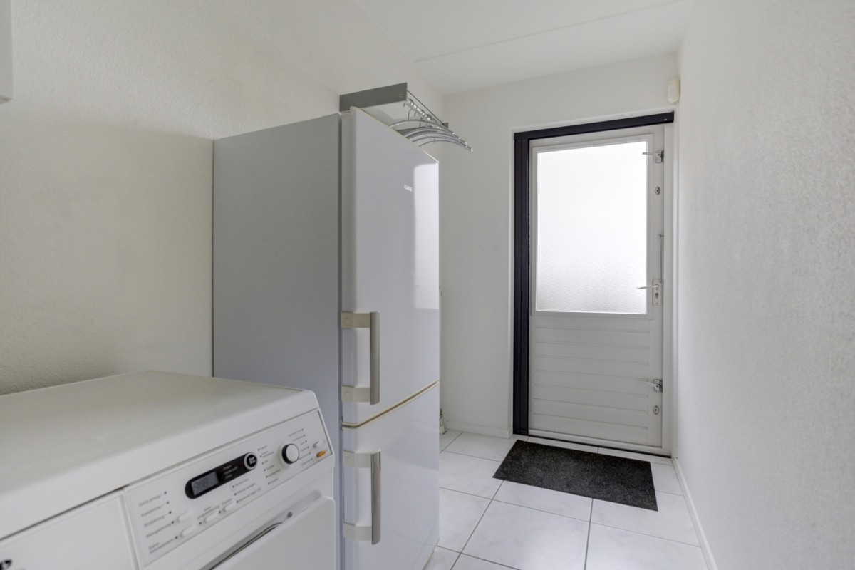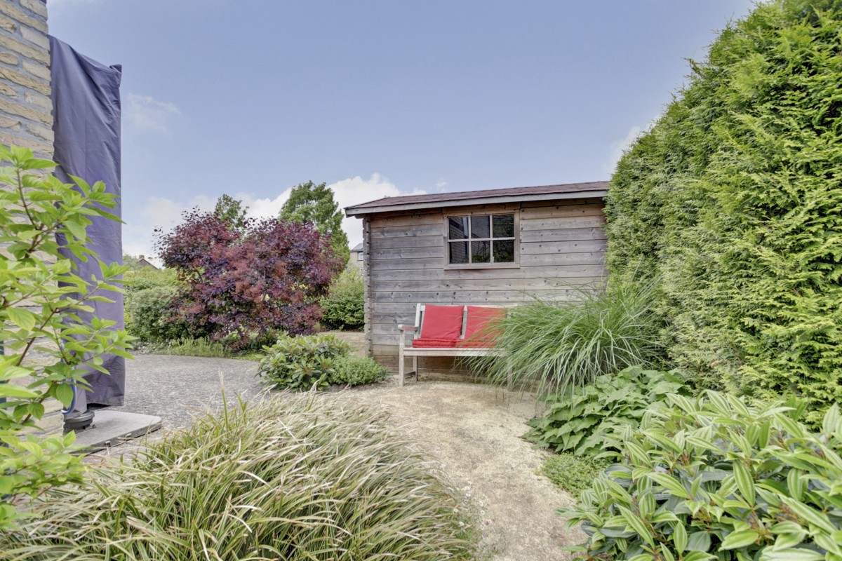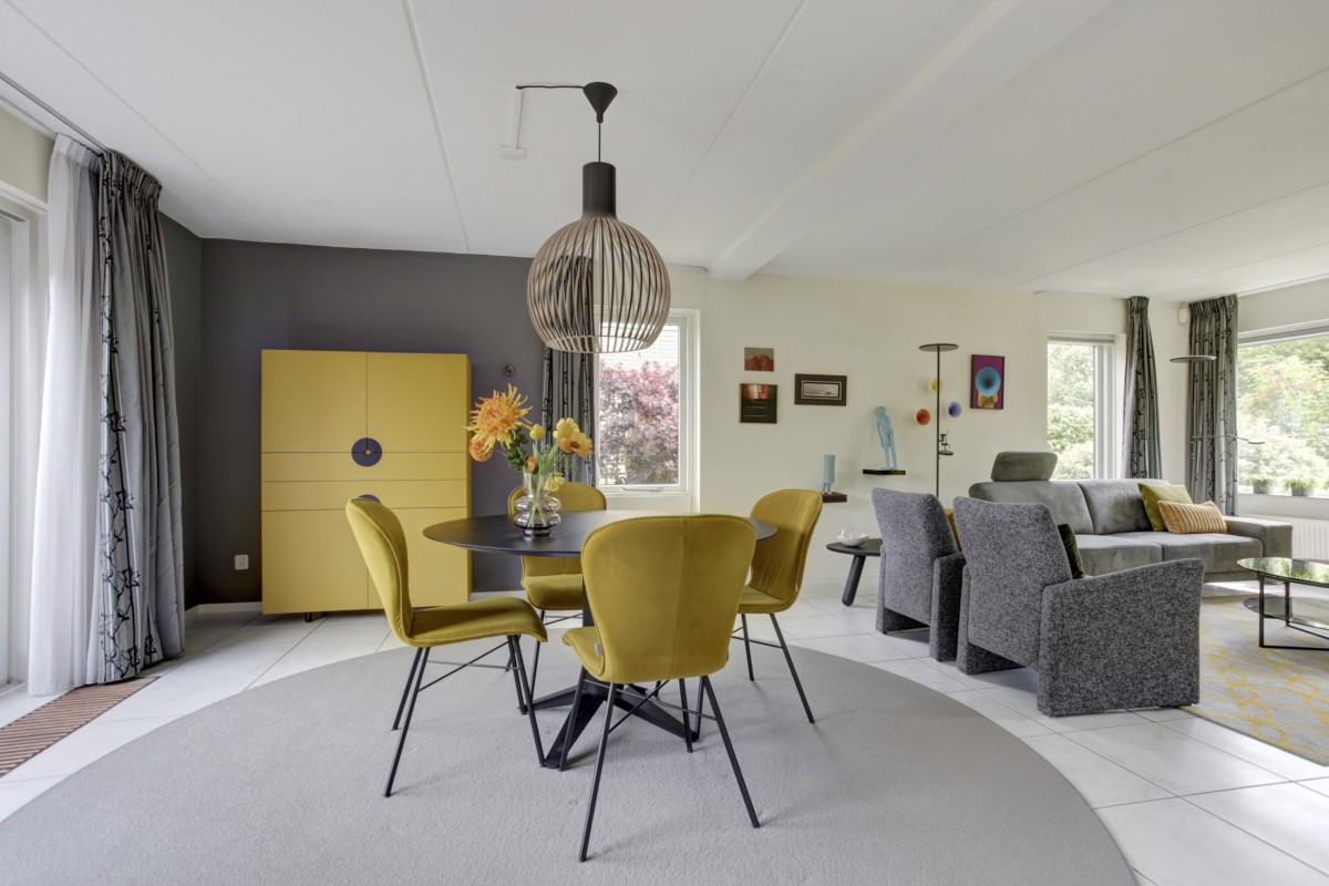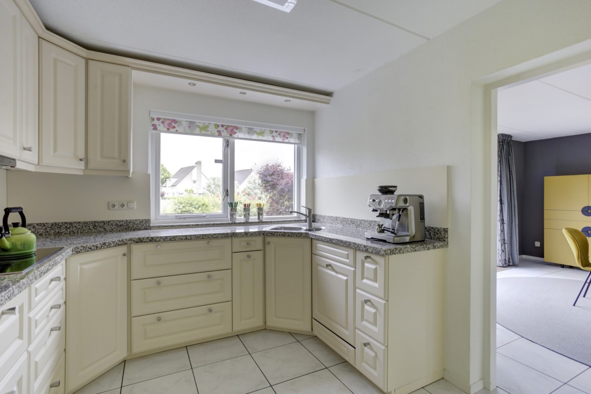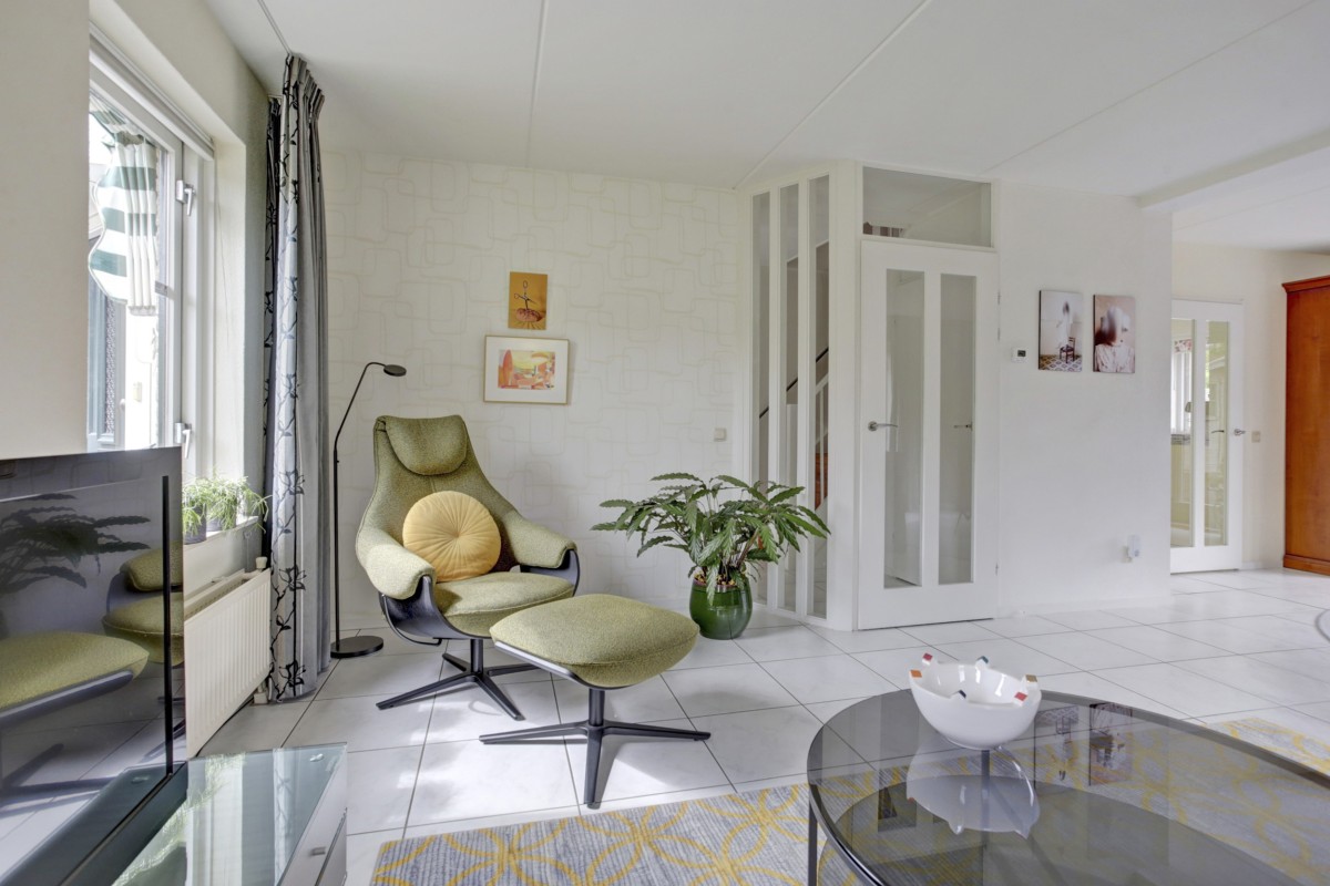 Begane grond: ruime oprit, overdekte entree, hal met meterkast en garderobe, licht betegelde toiletruimte met hangcloset en fonteintje. Loopdeur met fraai glas-kozijn naar de woonkamer met ruime eethoek voorzien van een schuifpui naar de tuin. De dichte keuken is aan de achterzijde van de woning gesitueerd en in een U-vorm opgesteld. De keuken beschikt over veel kastruimte en een groot werkblad alsmede ingebouwde koelkast, combi-oven, vaatwasser, inductiekookplaat met vlakscherm afzuiging. Vanuit de keuken is de bijkeuken bereikbaar waar de wasmachine en droger opgesteld staan en welke binnendoor toegang biedt tot de inpandige garage voorzien van een elektrisch bedienbare sectionaaldeur. Vanuit de bijkeuken biedt een loopdeur eveneens toegang tot de achtertuin welke prachtig aangelegd is in verschillende niveaus richting het rustgevende terras aan de tocht grenzend aan het perceel. De tuin biedt een achterom langs de woning een vrijstaand tuinhuis en bovenal veel rust en privacy!