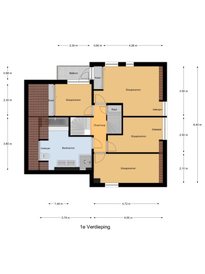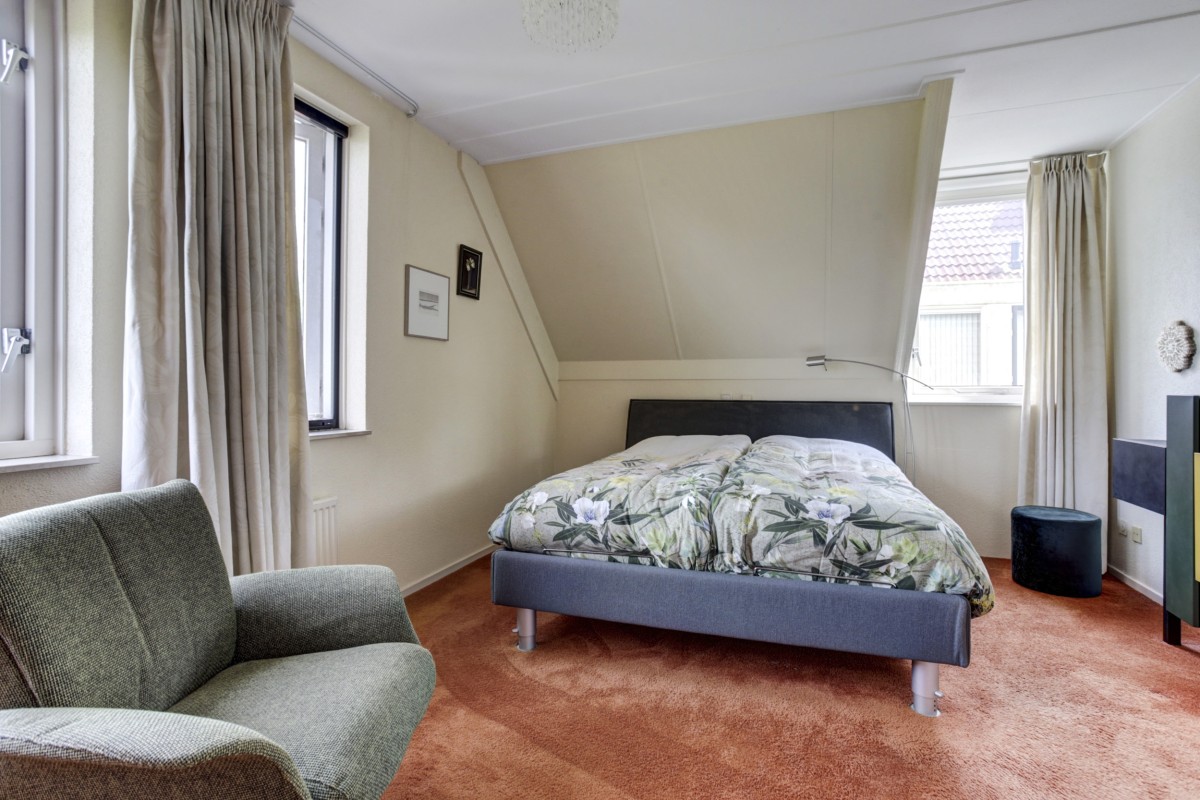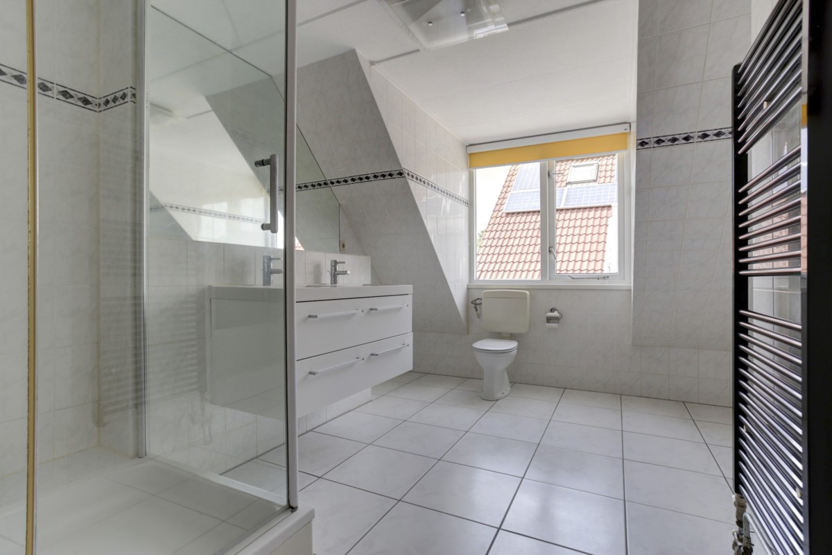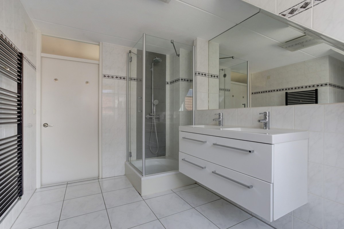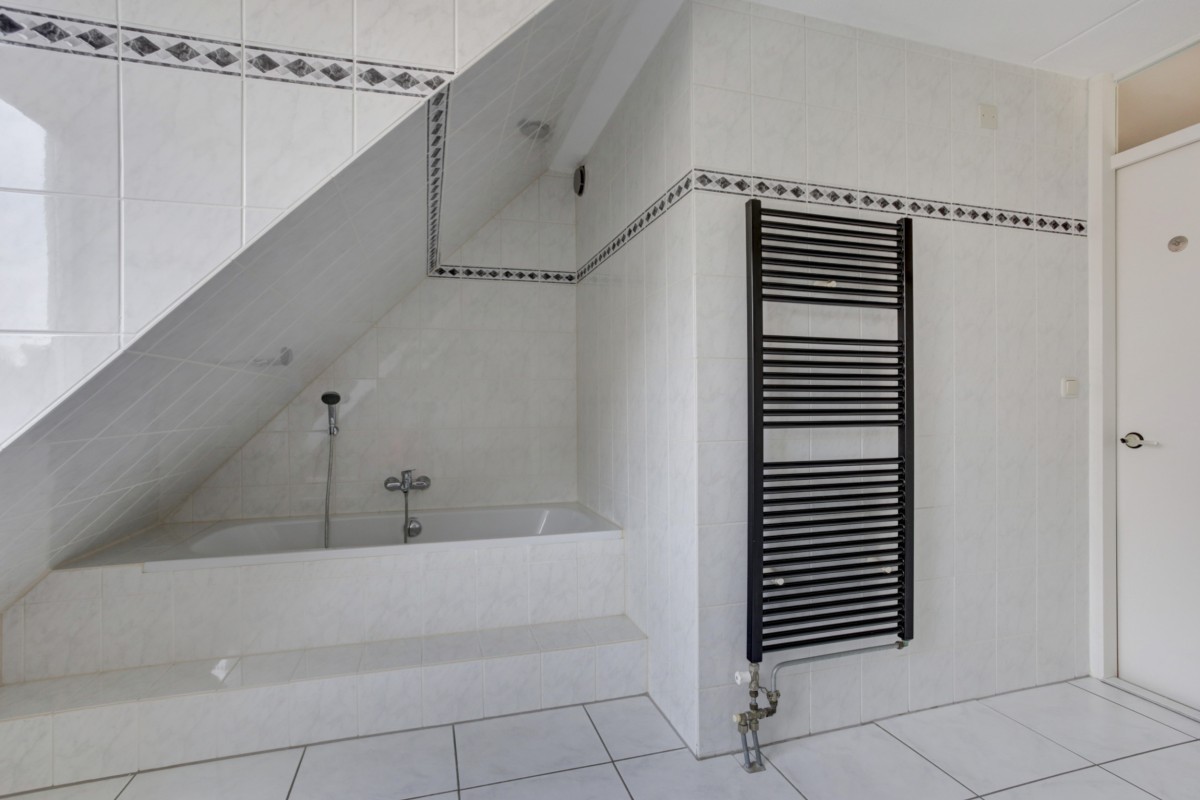 Eerste verdieping: overloop met bergkast en aansluitend 4 slaapkamers en de badkamer. De slaapkamer aan de achterzijde geeft toegang tot het balkon. Deze verdieping is voorzien van vloerbedekking. De badkamer is mede door de dakkapel heerlijk licht en omvat een douche met cabine, ligbad, 2e toilet en wastafelmeubel met dubbele wastafel.