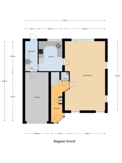 * Inpandige garage met elektrisch bedienbare sectionaaldeur