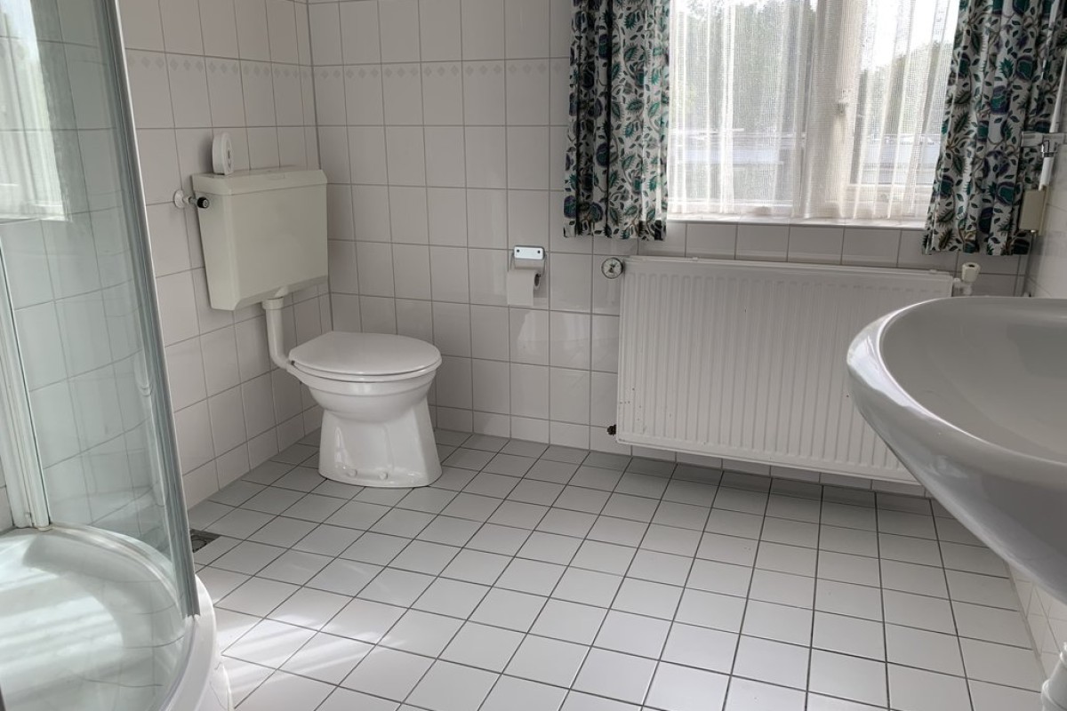 overloop, 3 slaapkamers waarvan 2 slaapkamers zijn voorzien van een vast kast, badkamer in lichte kleurstelling v.v. 2e toilet, douche en wastafel. Middels vaste trap naar………….