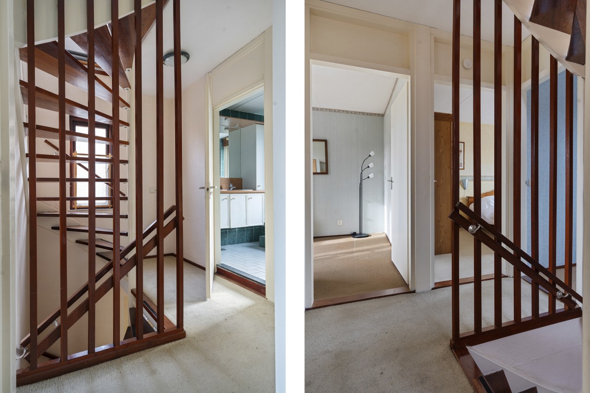 Overloop met toegang tot de slaapkamers en de badkamer. Daarnaast vindt u hier een handige opbergkast.