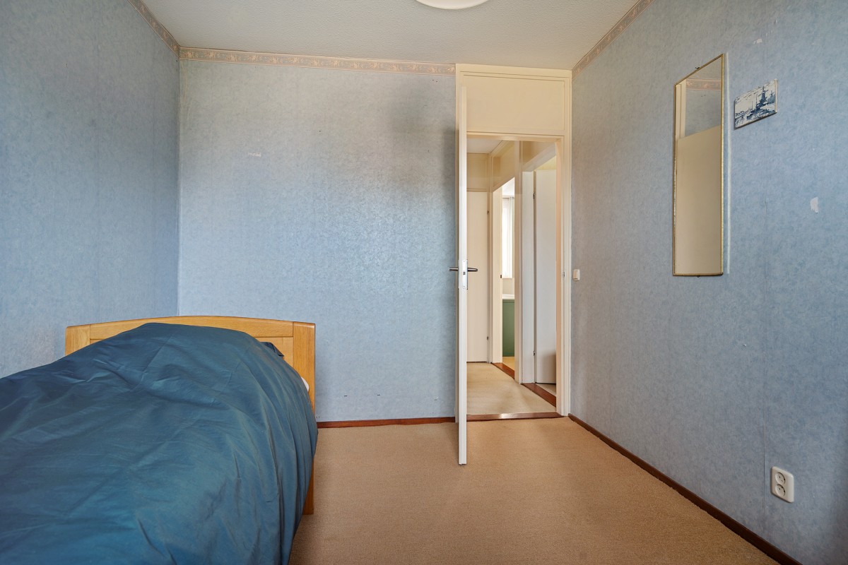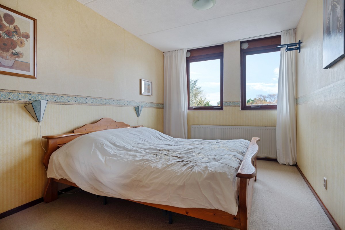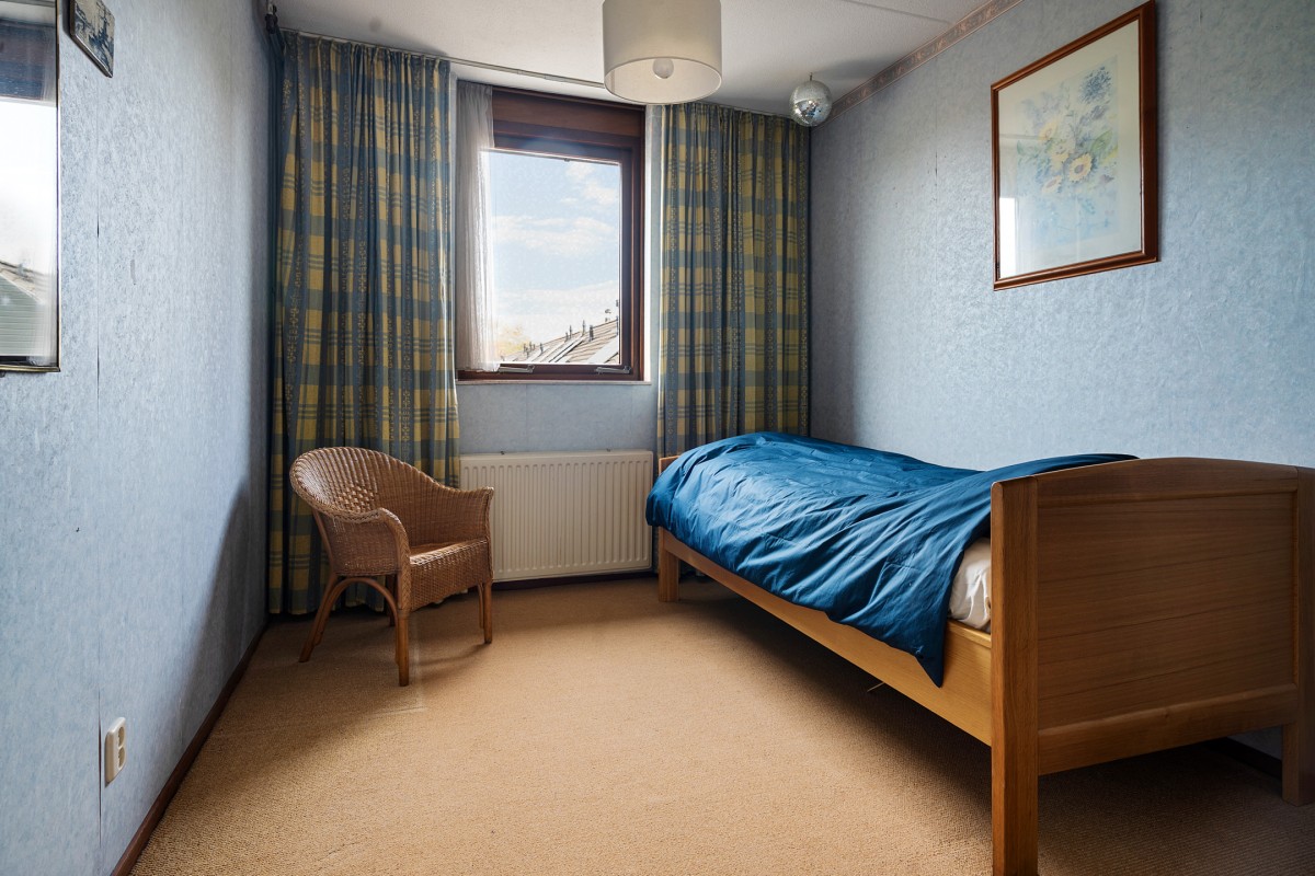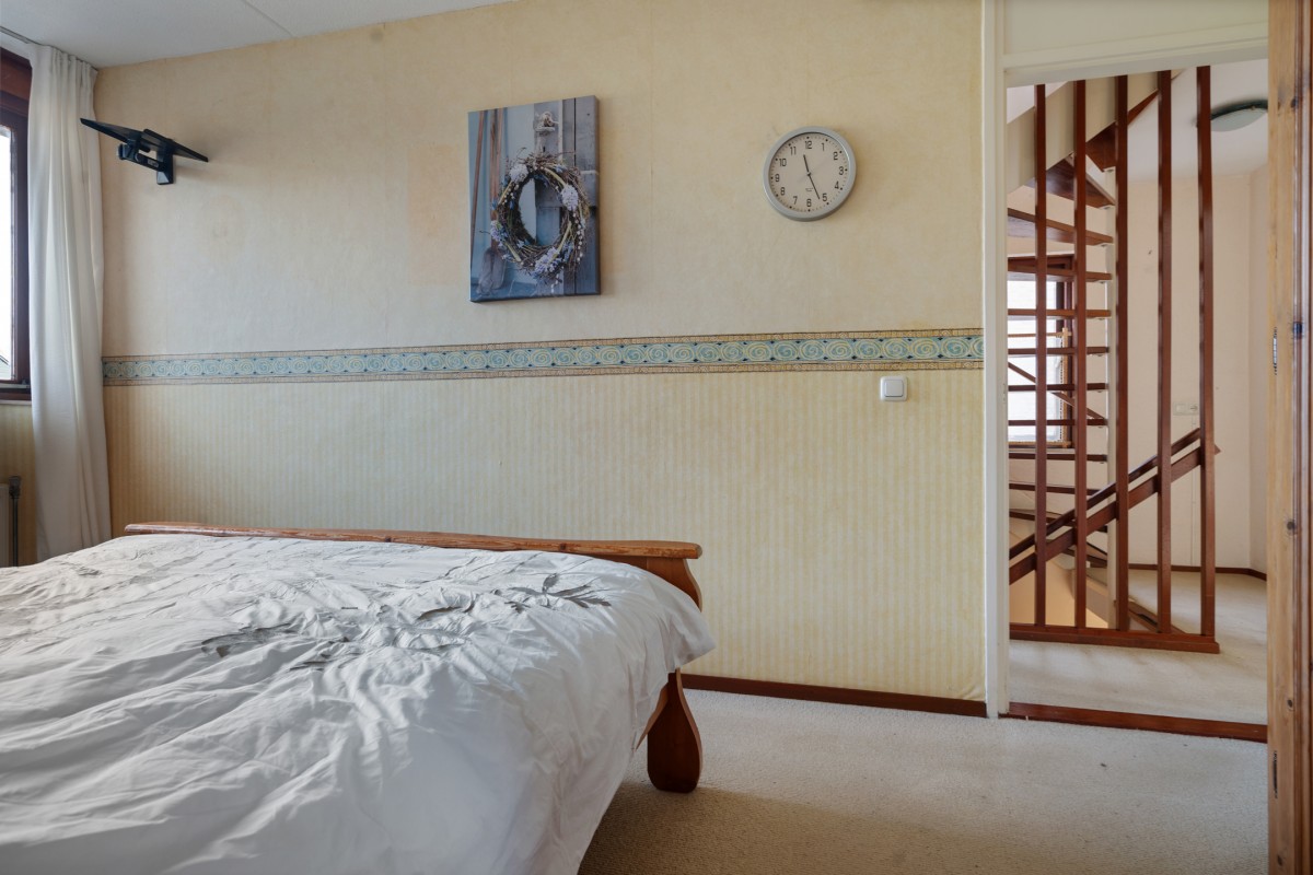 De overloop biedt toegang tot de cv-ketel (2022) en de wasmachineaansluiting. Hier is ook de toegang tot de vierde slaapkamer, die is voorzien van een dakraam voor natuurlijk licht. De gehele verdieping is afgewerkt met knieschotten die zorgen voor veel praktische opbergruimte.