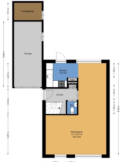 Is ook bereikbaar via een buitendeur in de achtertuin. Deze is ideaal voor het stallen van een auto, fietsen, motor of kan dienen als extra bergruimte.
