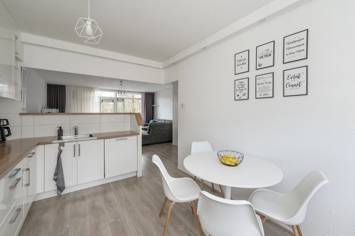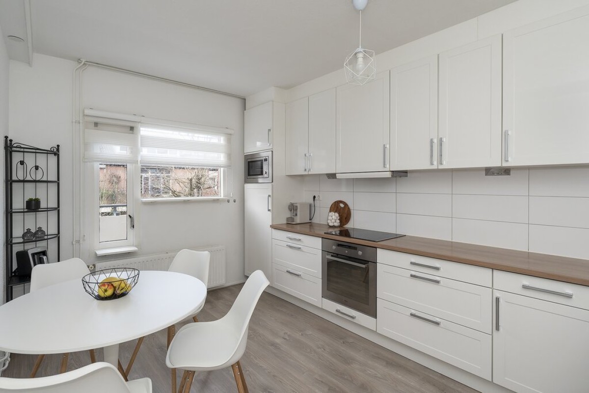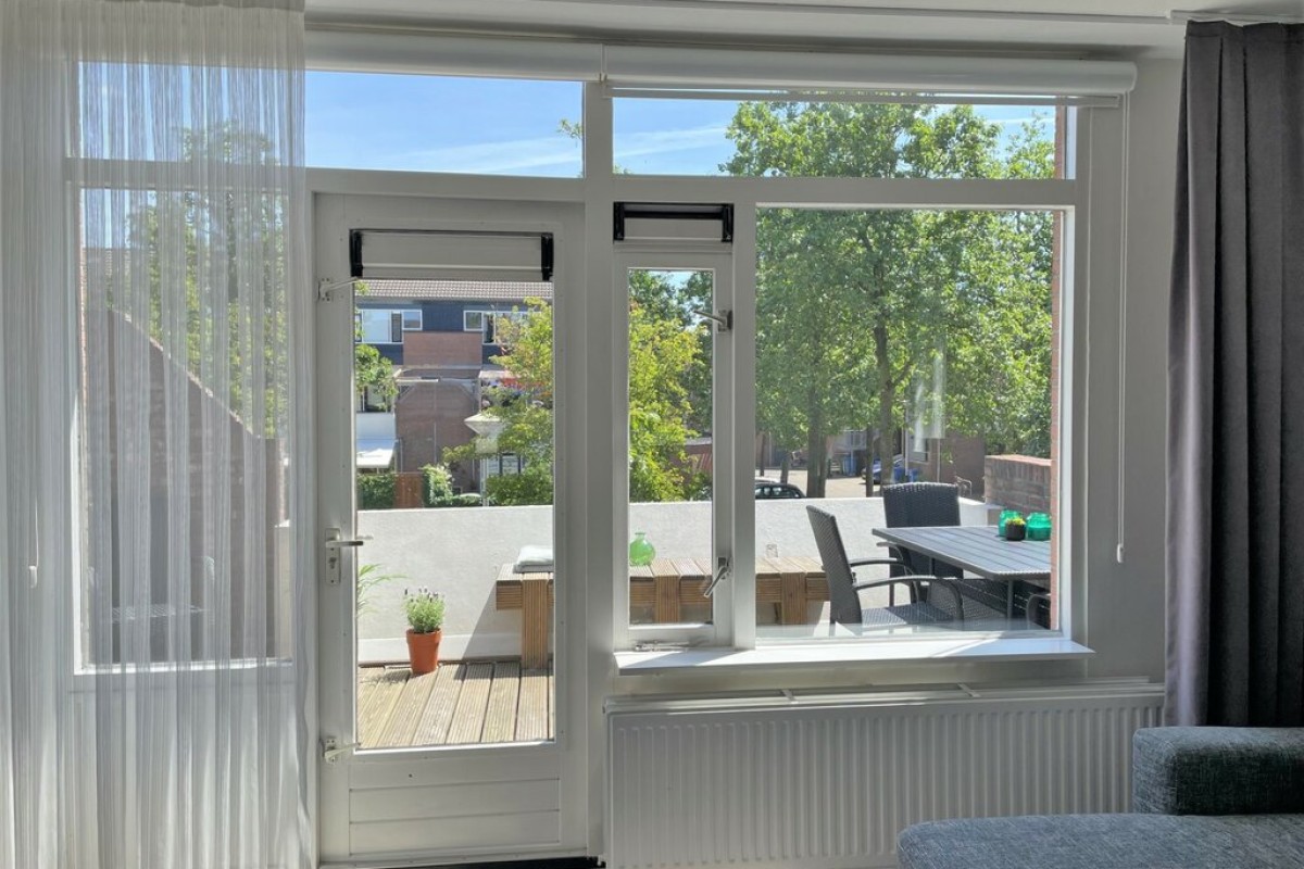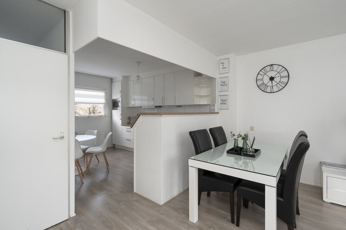 Doordat het appartement op de hoek van het complex is gelegen is er een extra zijraam in de woonkamer, met de overige grote raampartijen zorgt dit ervoor dat de woonkamer lekker veel lichtinval heeft. Op het aangrenzende dakterras van circa 12 m2 is het zomers heerlijk toeven en heb je een mooi ruim uitzicht over de buurt.