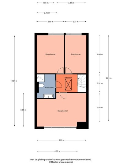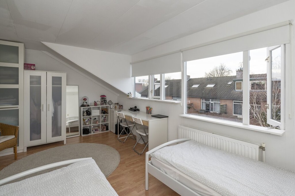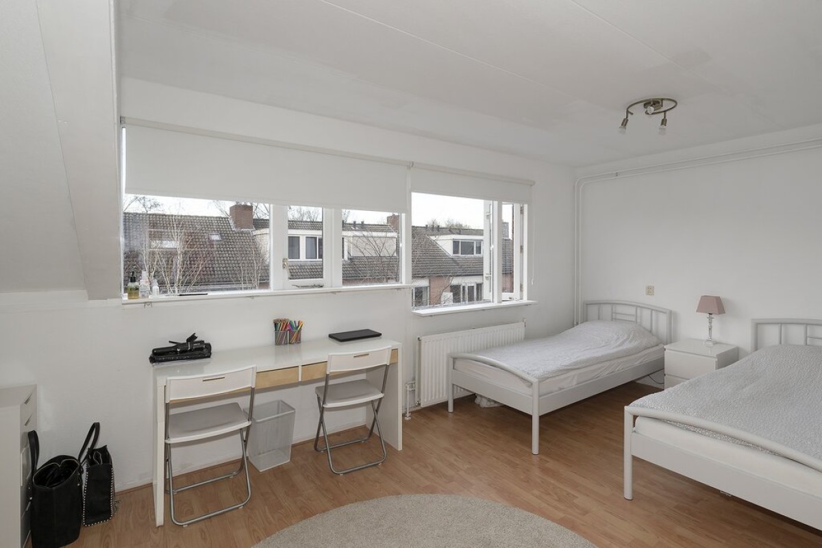 Tweede verdieping: overloop, geheel vernieuwde en uitgebouwde badkamer voorzien van een wastafelmeubel, hangend toilet, douchehoek en wasmachine aansluiting, een grote slaapkamer over de volle breedte aan de voorzijde en twee kamers aan de achterzijde.