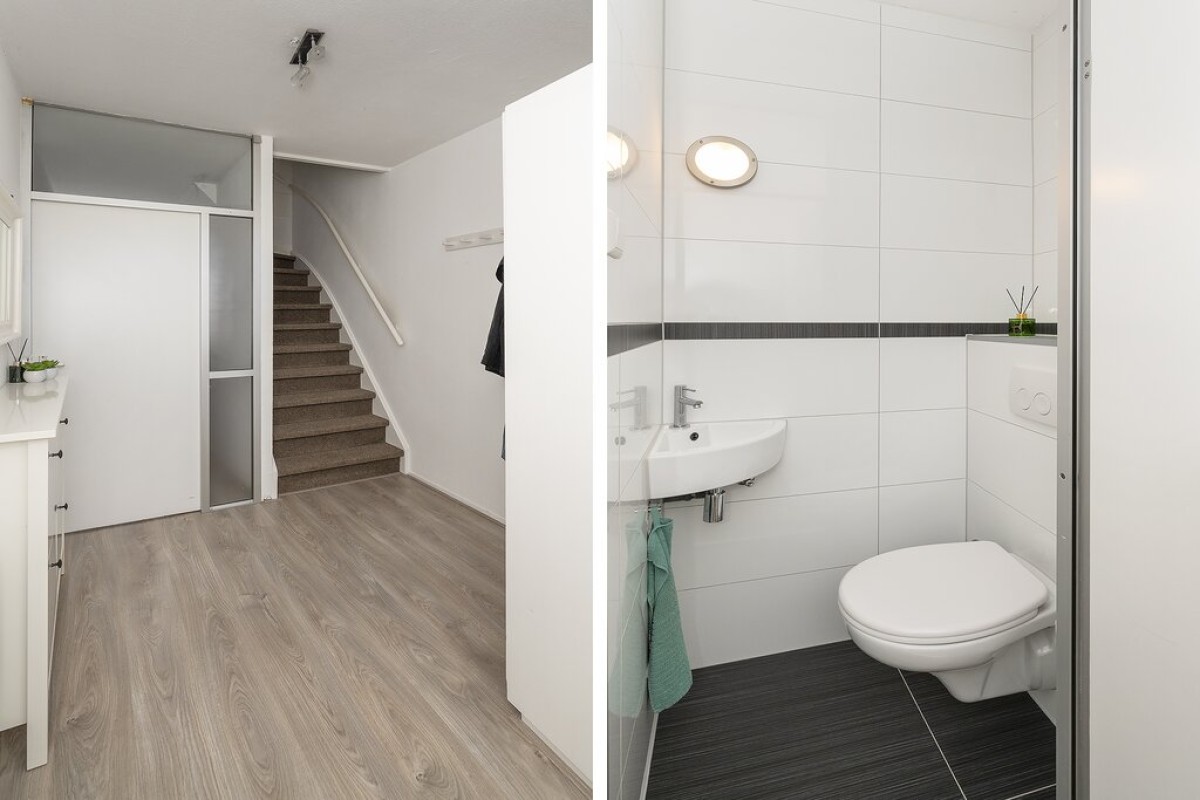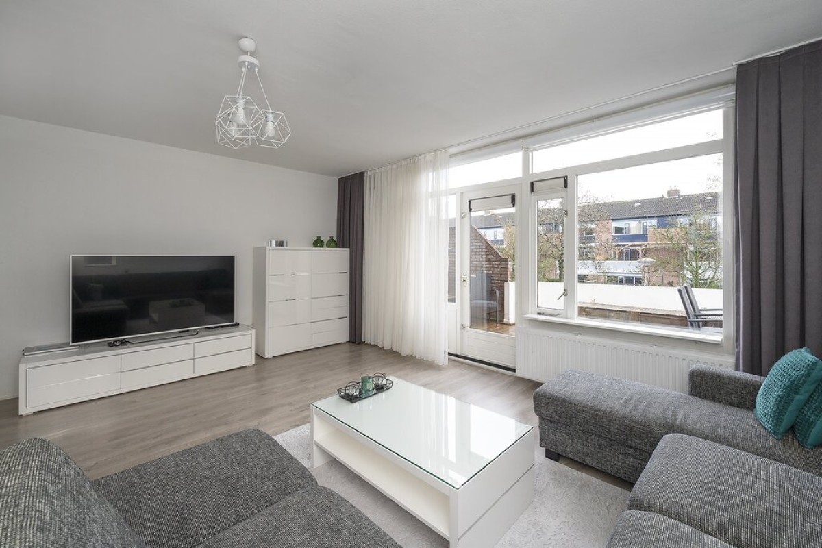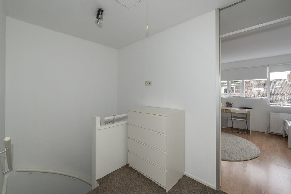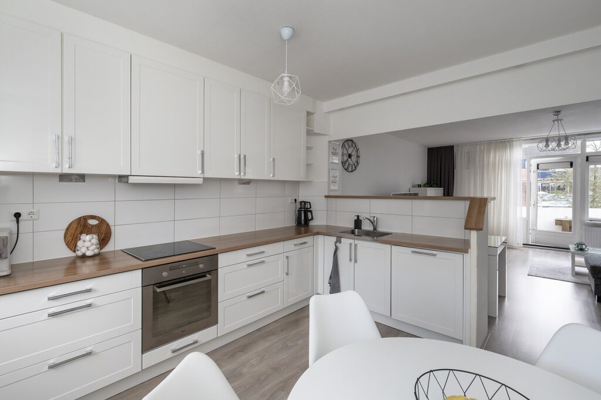 Eerste verdieping: hal/entree met trapopgang, meterkast, keurige toiletruimte voorzien van een toilet en fonteintje, ruime lichte woonkamer met zitgedeelte en aangrenzend het dakterras, trapkast, ruime open keuken voorzien van een moderne keukenopstelling met inbouwapparatuur (inductiekookplaat, afzuigkap, magnetron, vaatwasser, koelkast en eetgedeelte.