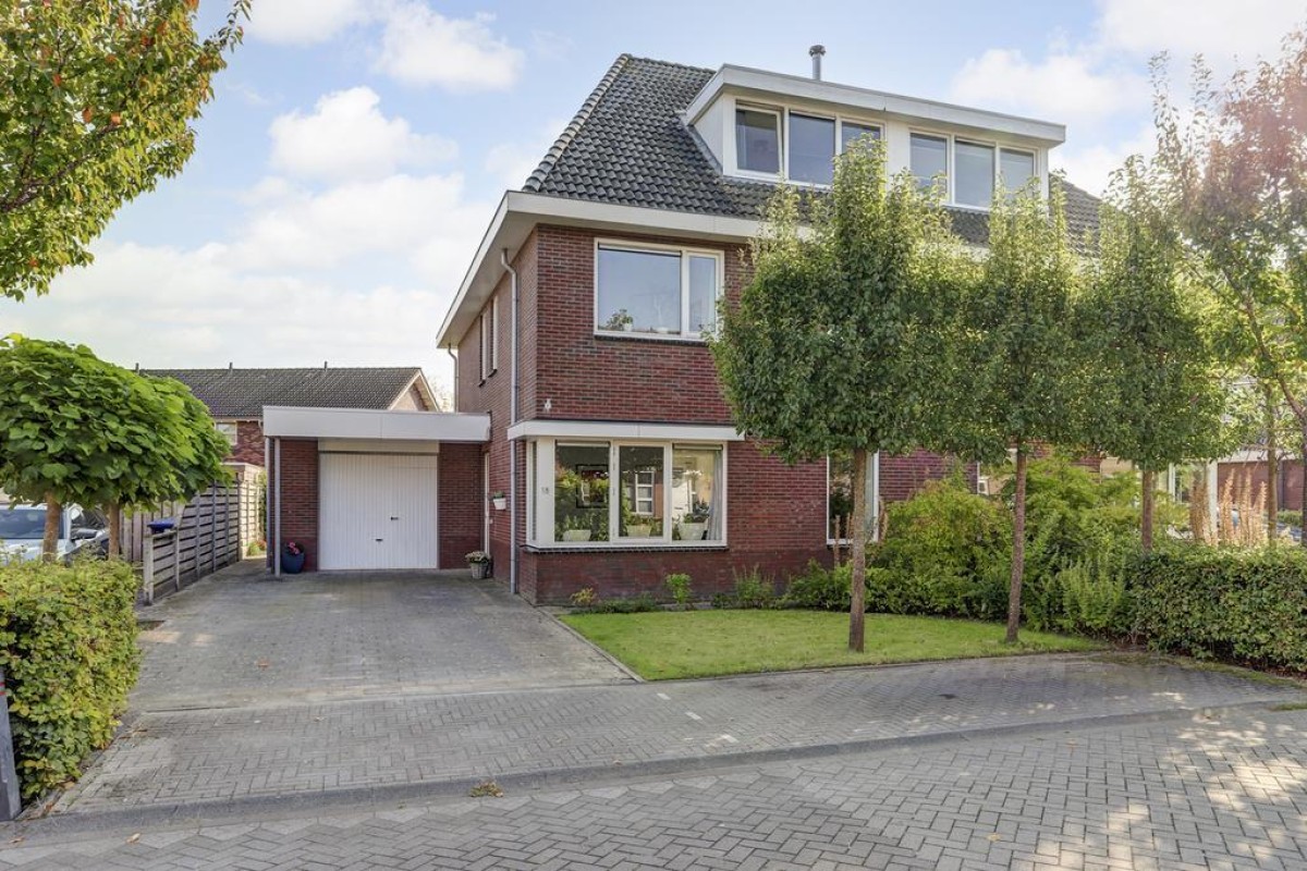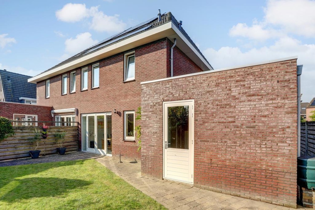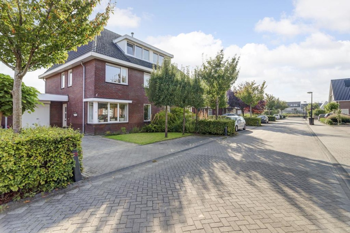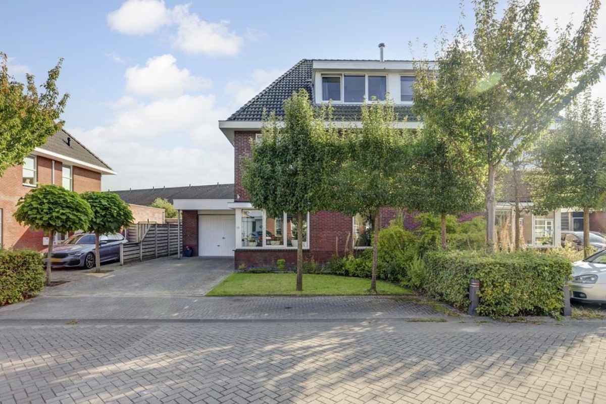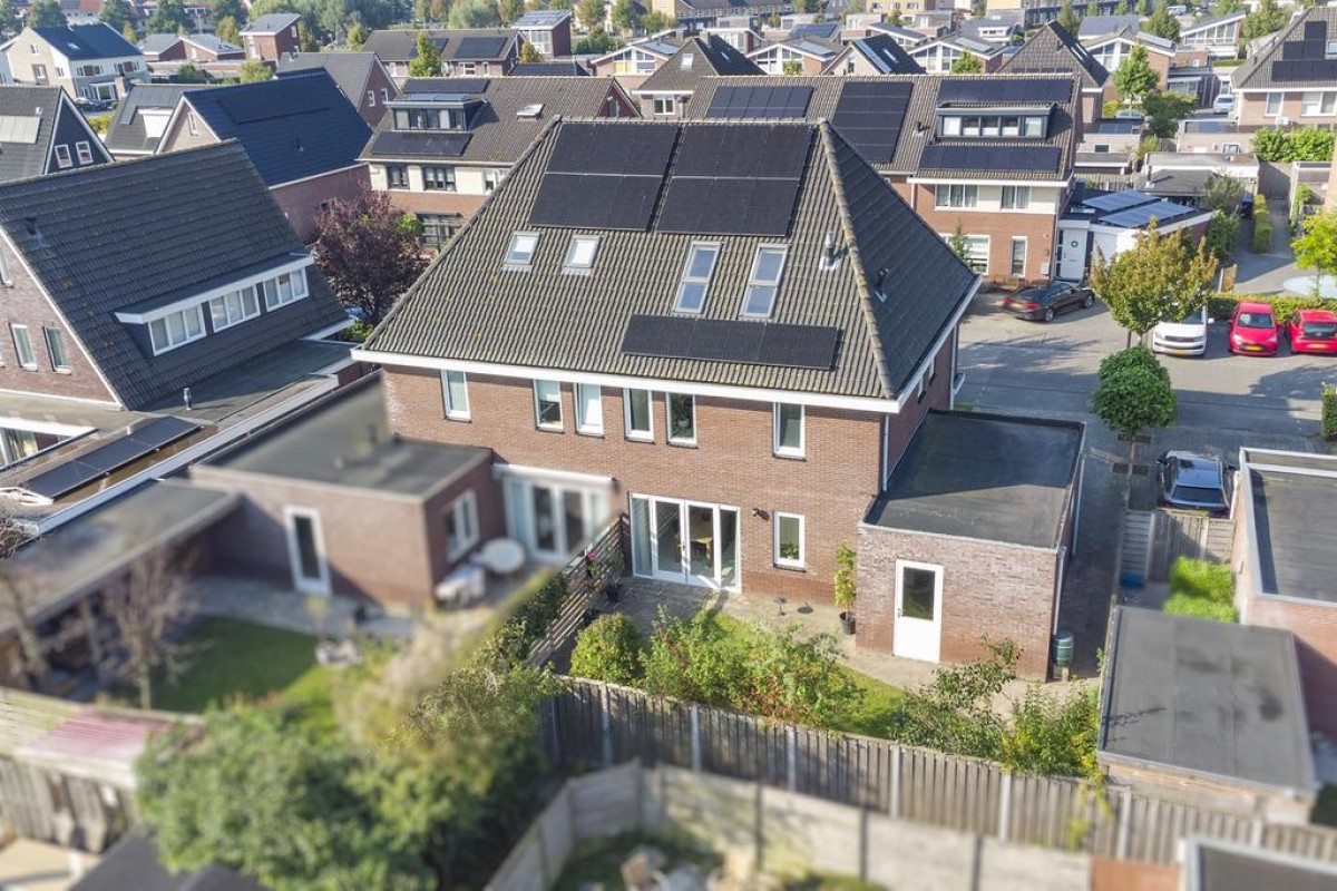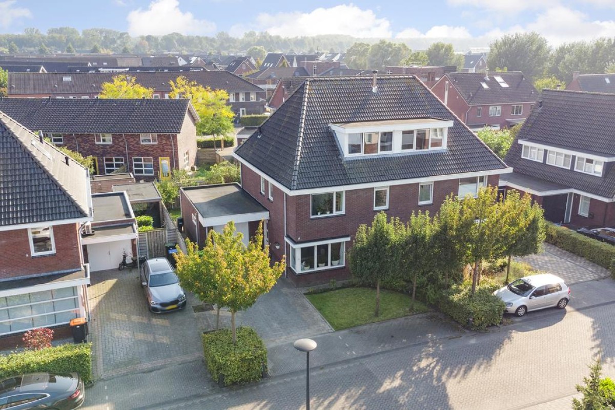 In de jonge woonwijk "De Gilden" is deze zeer ruime en lichte 2-onder-1-kapwoning gelegen. De woning beschikt over een royale straat gerichte living voorzien van een plavuizenvloer met vloerverwarming, een moderne open keuken, 4 riante slaapkamers, een ruime inloopkast, een kantoor/werkruimte, een ruime badkamer, zonnepanelen en een aangebouwde stenen garage. De woning is gelegen op een mooi perceel en biedt aan 4 auto's de ruimte om te parkeren op eigen perceel alsmede voldoende openbare parkeergelegenheid. Voorzieningen zoals winkels, scholen en gezondheidscentrum zijn op korte afstand.