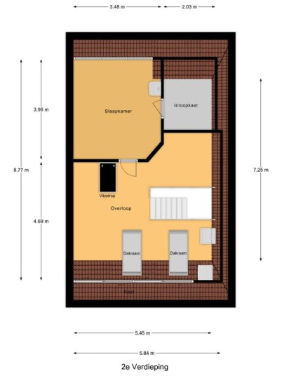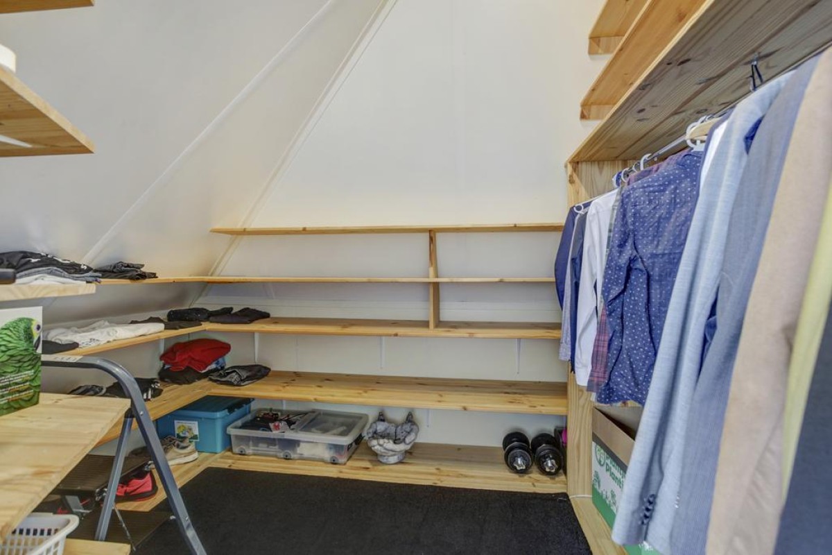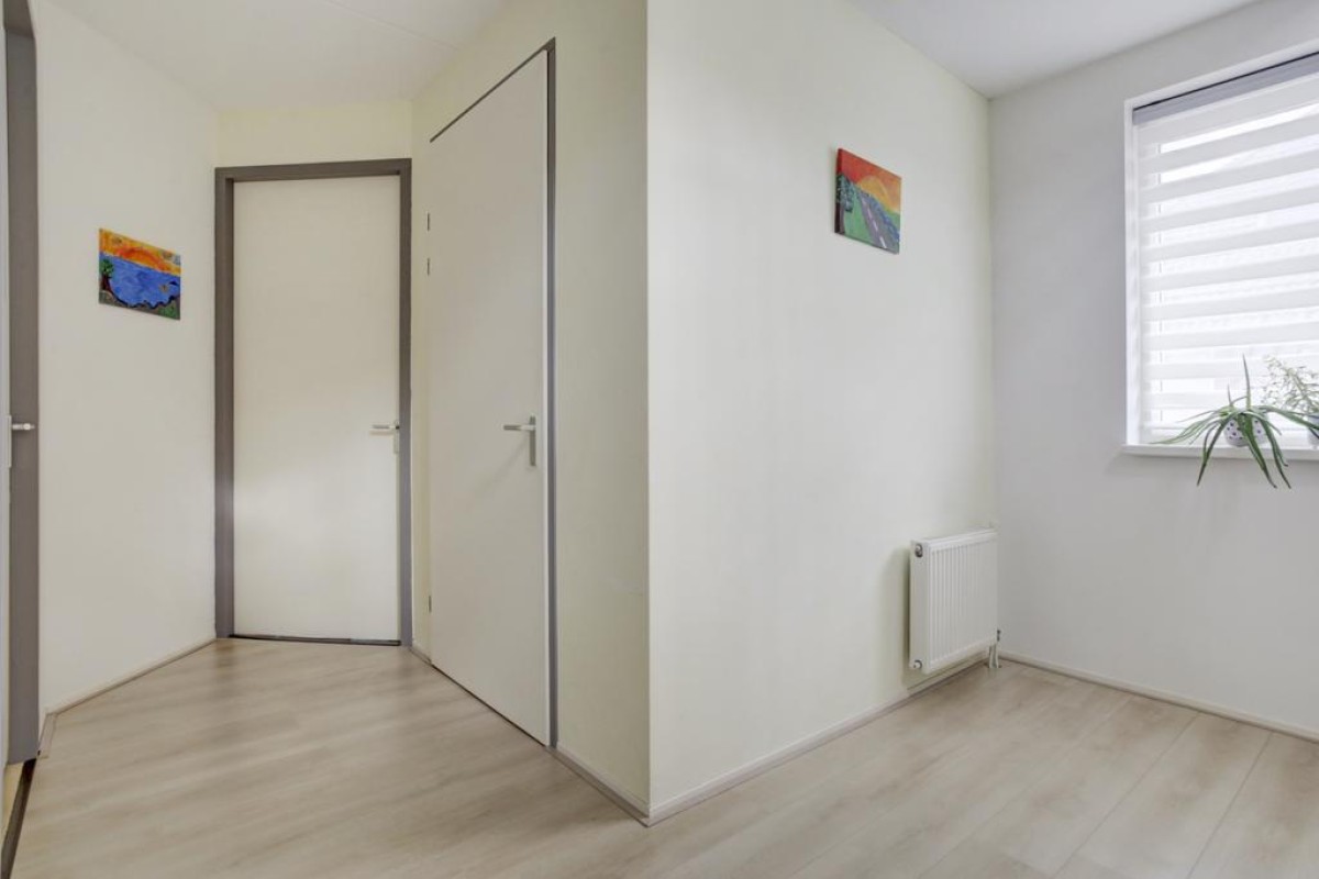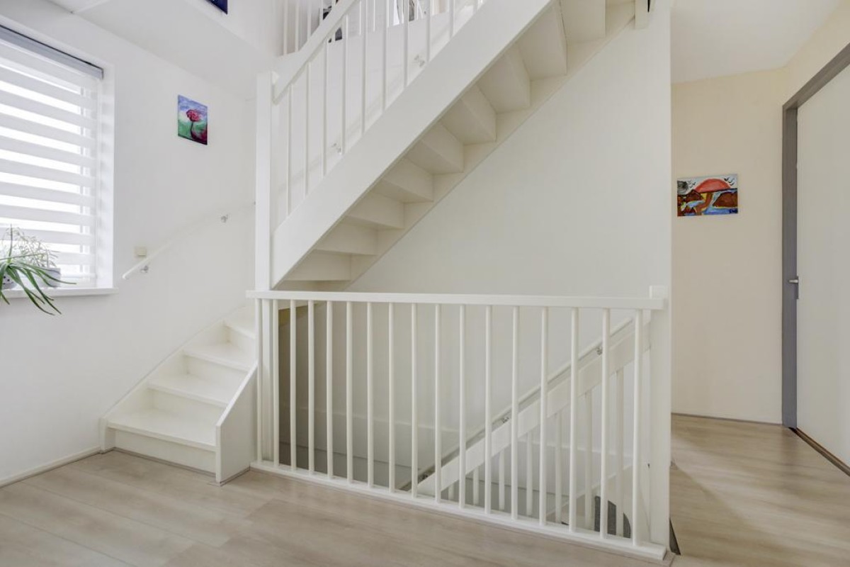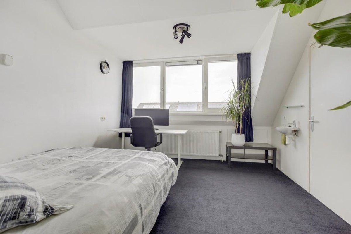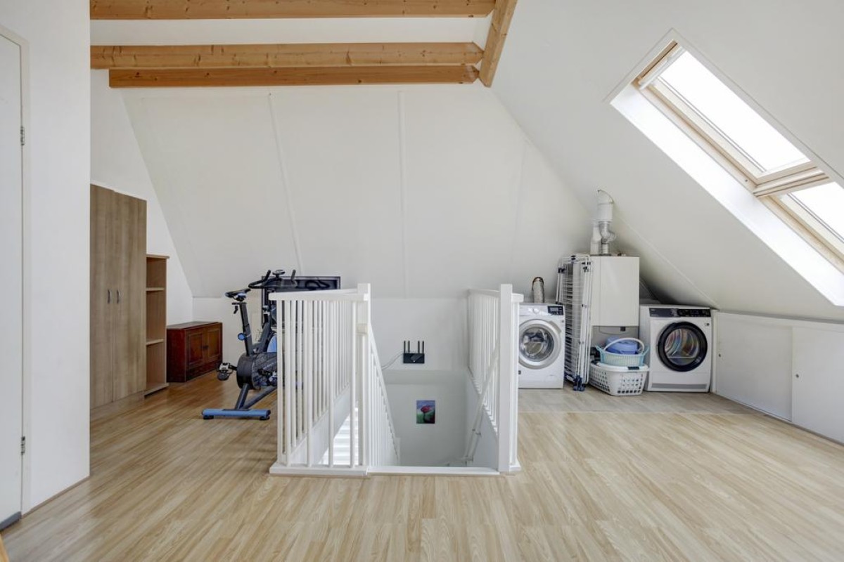 Tweede verdieping: middels een vaste trap is de royale zolderverdieping te bereiken. De zolder is een volwaardige verdieping met een ruime overloop voorzien van een laminaatvloer en erg licht is door de twee grote dubbele Velux dakramen. Tevens bevindt zich hier de opstelplaats van de c.v.-ketel (Remeha Quinta) en mechanische ventilatie (2024) alsmede de aansluitingen van de wasapparatuur. Middels een losse steektrap is er nog toegang tot de praktische bergzolder. Aan de voorzijde bevindt zich een ruime slaapkamer met een grote dakkapel welke is voorzien van een comfortabele tapijtvloer, knieschotten en een ruime inloopkast.