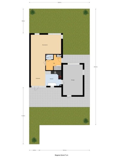 * Achterom naar de tuin langs de garage aanwezig