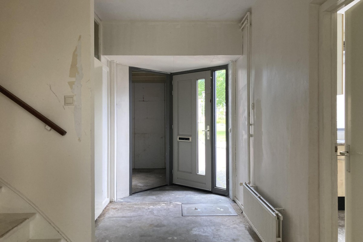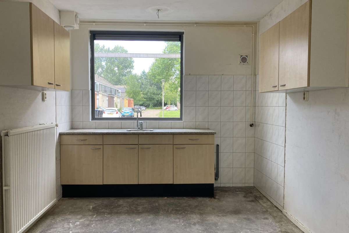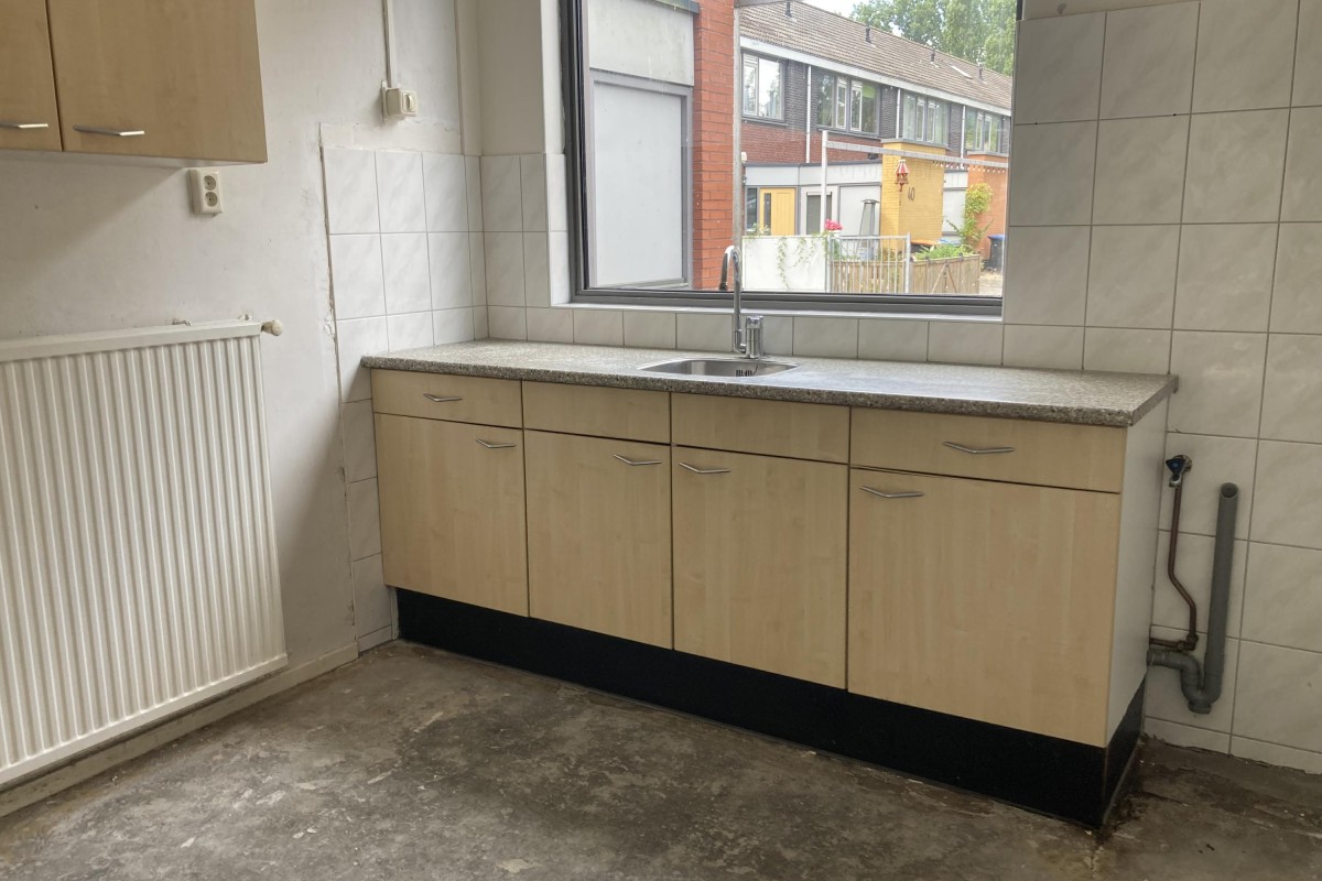 Begane grond: Hal/entree met meterkast, toiletruimte met toilet en fonteintje, trapkast lichte tuingerichte woonkamer voorzien van een deur naar de tuin en een een straat gerichte open keuken. Welke is voorzien van een recht keukenblok en aan beide zijden praktische bovenkasten.