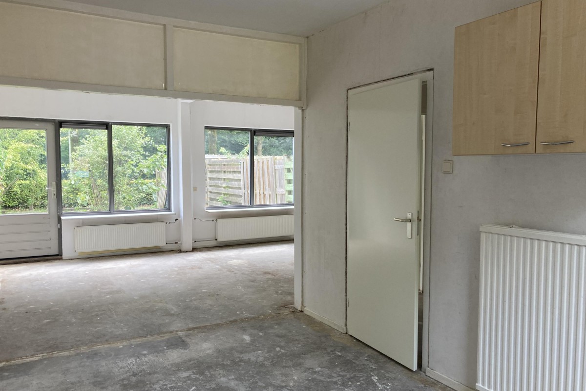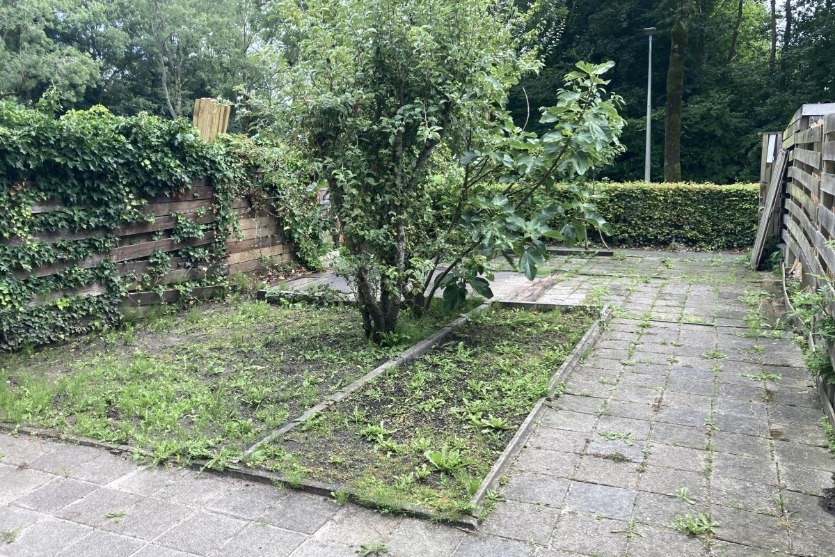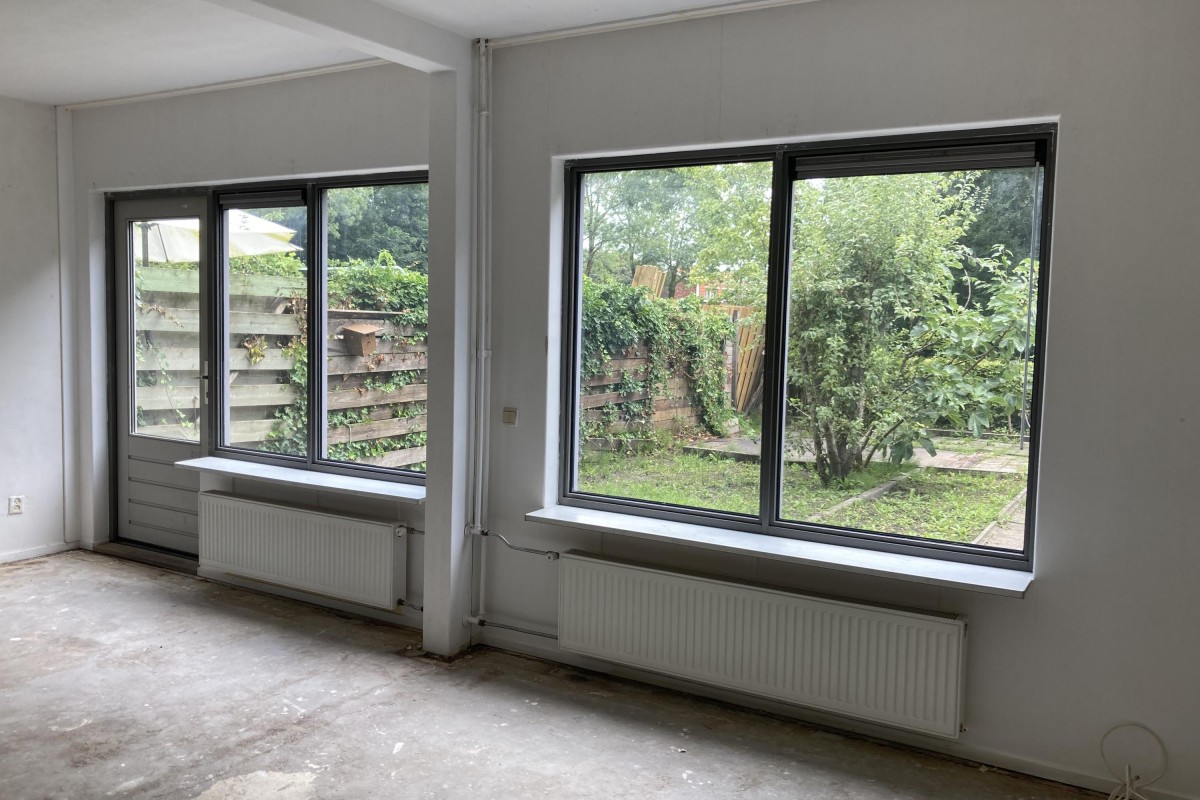 Lees verderVanuit de woonkamer is er toegang tot de diepe tuin met een terras, buitenkraan en een elektrisch bedienbaar zonnescherm.