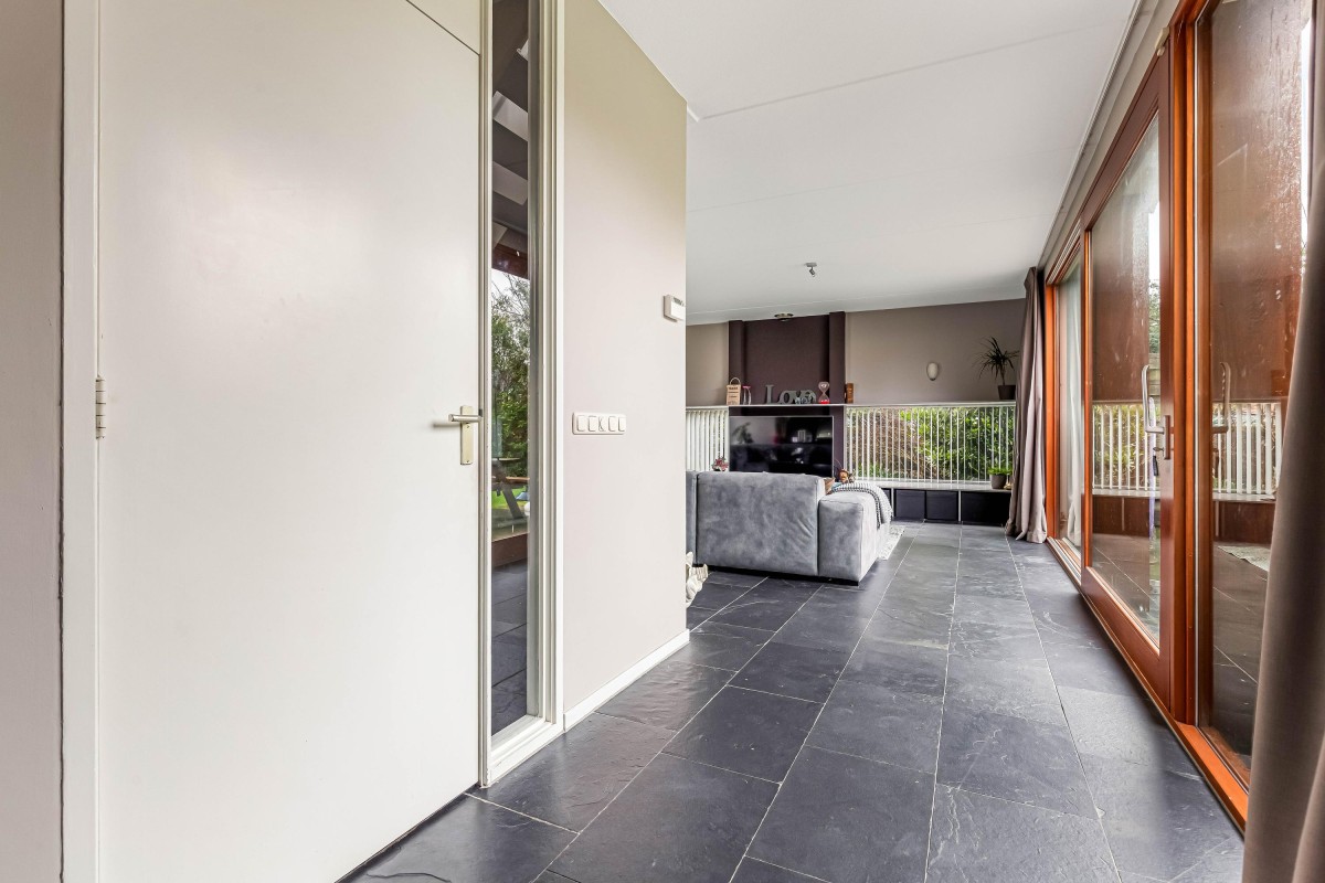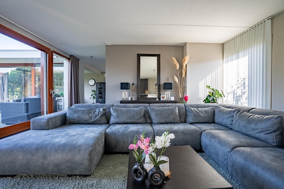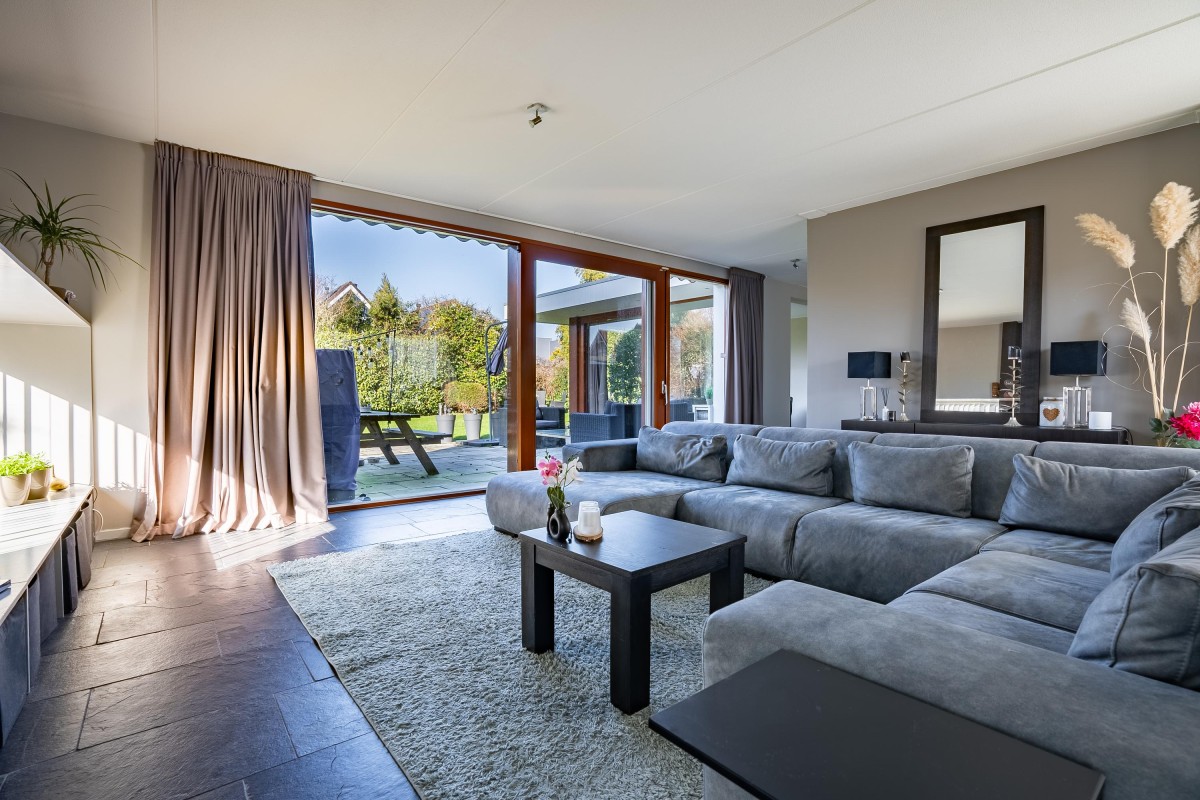 Lees verderVanuit de hal loopt u door naar de lichte en sfeervolle woonkamer, die dankzij de vele raampartijen volop natuurlijk licht biedt en een prachtig uitzicht op de groene tuin. De woonkamer is de perfecte plek om te ontspannen en te genieten van gezellige avonden met familie en vrienden.