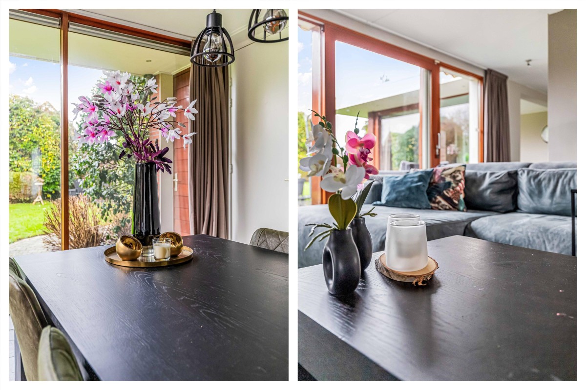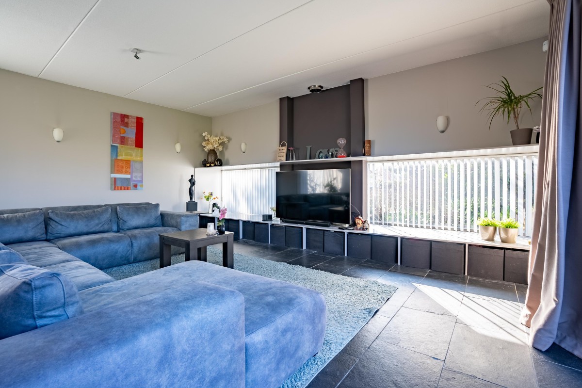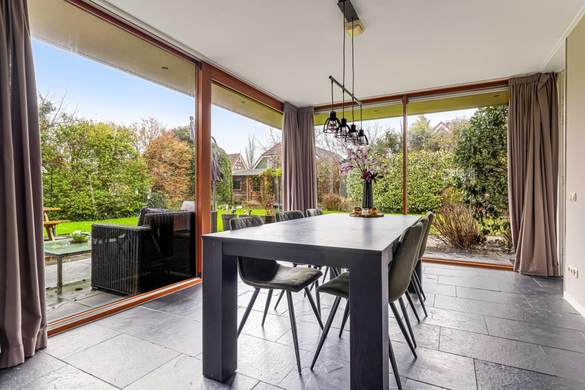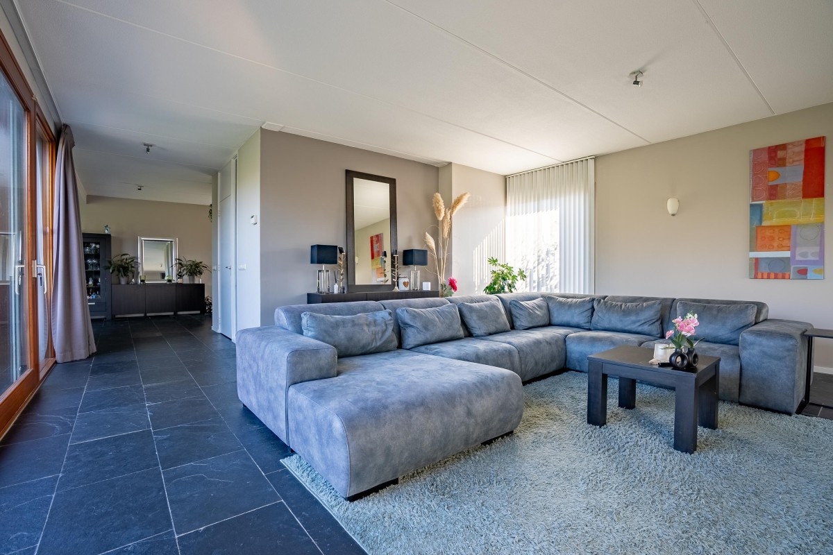 Lees verderVanuit de hal loopt u door naar de lichte en sfeervolle woonkamer, die dankzij de vele raampartijen volop natuurlijk licht biedt en een prachtig uitzicht op de groene tuin. De woonkamer is de perfecte plek om te ontspannen en te genieten van gezellige avonden met familie en vrienden.