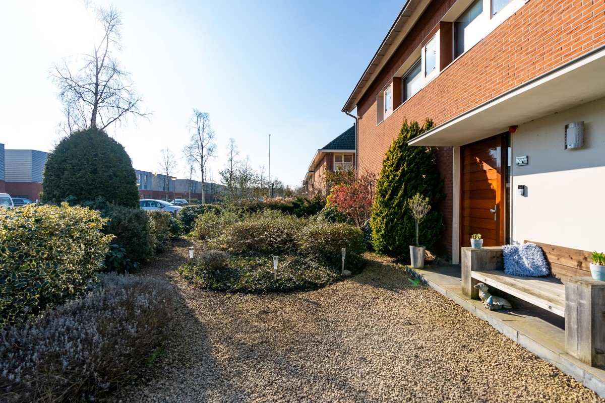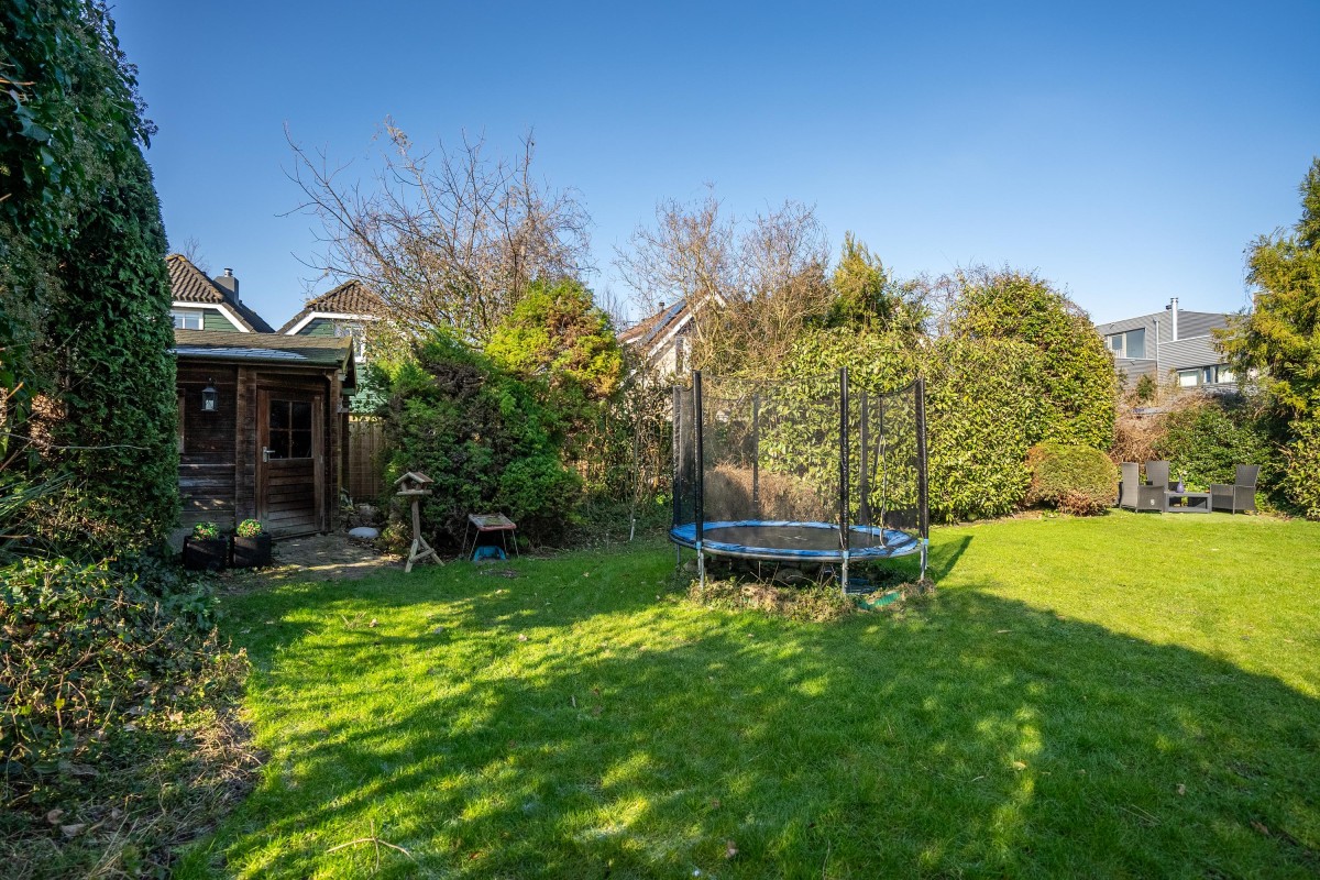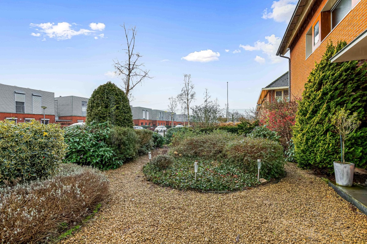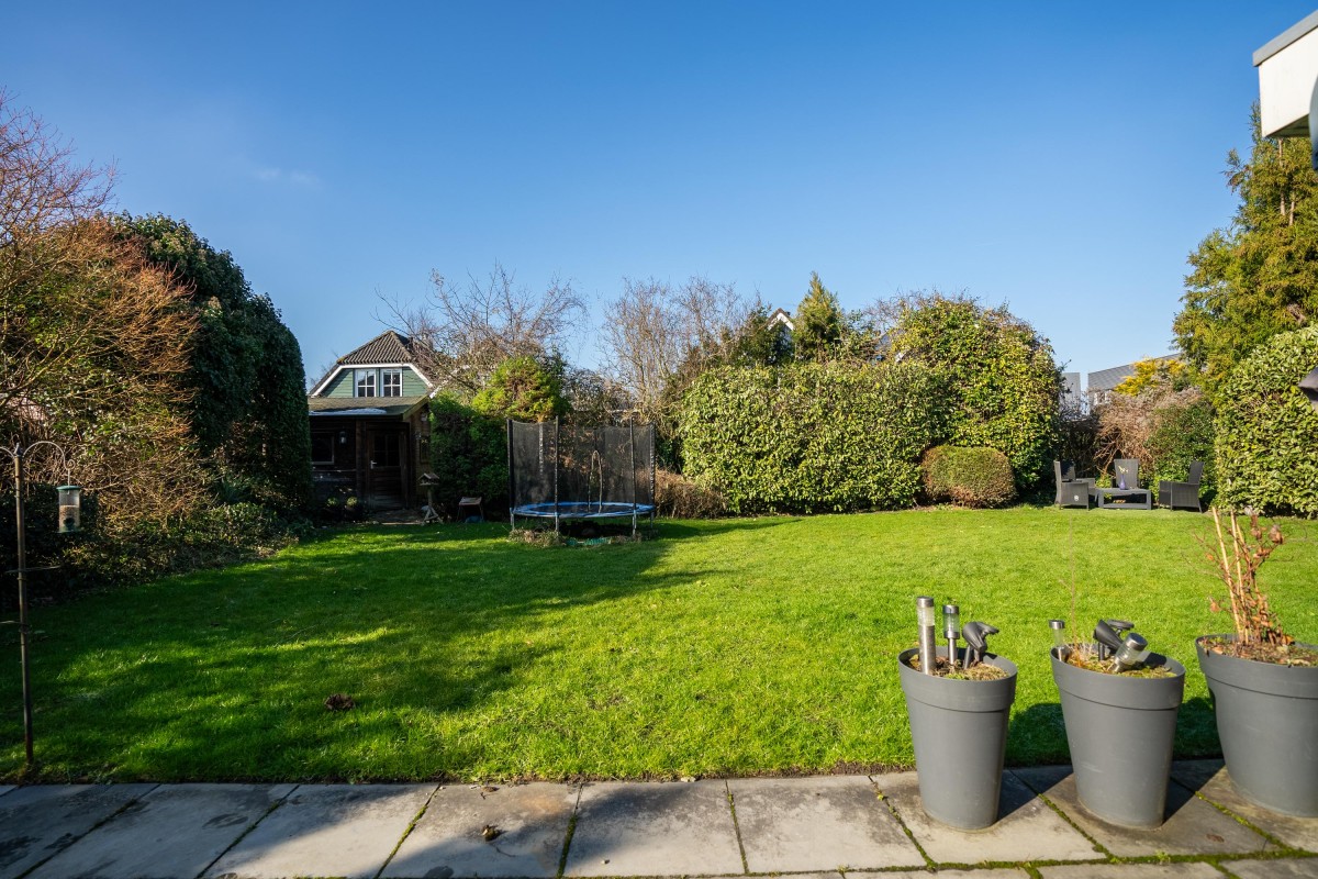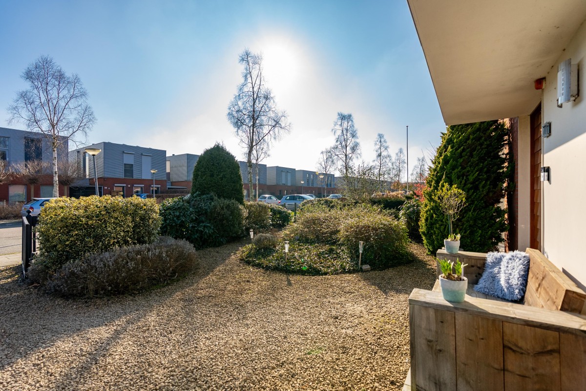 De tuin is zowel vanuit de bijkeuken als de woonkamer bereikbaar. Het terras bij de woning is volledig onderheid. De achtertuin ligt op het noordwesten, wat zorgt voor een ideale zonligging: er is altijd wel een zonnige plek of schaduw te vinden gedurende de dag.