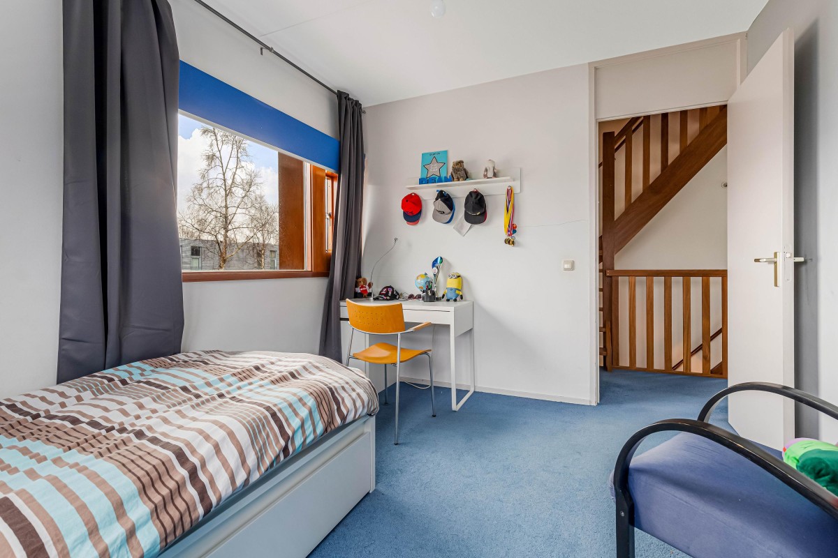 De gehele eerste verdieping is voorzien van vloerbedekking en gestuukte wanden.