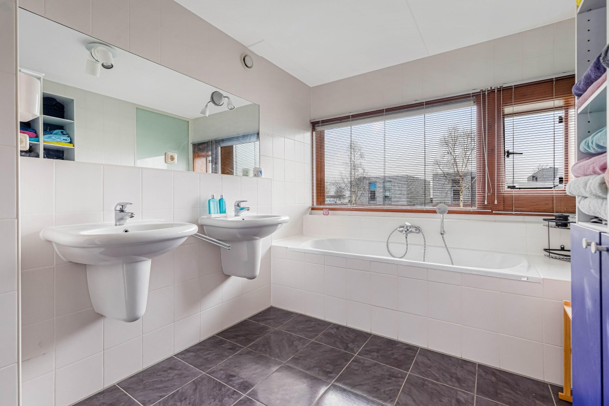 Op de eerste verdieping vindt u drie ruime slaapkamers, waarvan twee dezelfde afmeting hebben. De badkamer is uitgerust met een dubbele wastafel, inloopdouche en ligbad. Daarnaast is er een apart toilet.