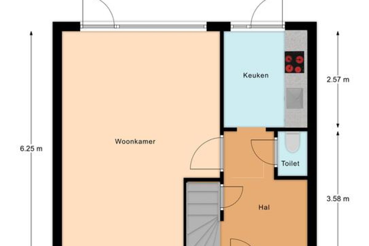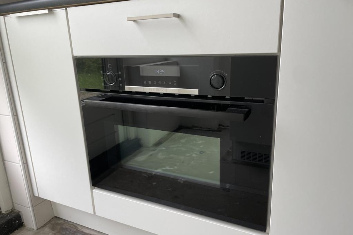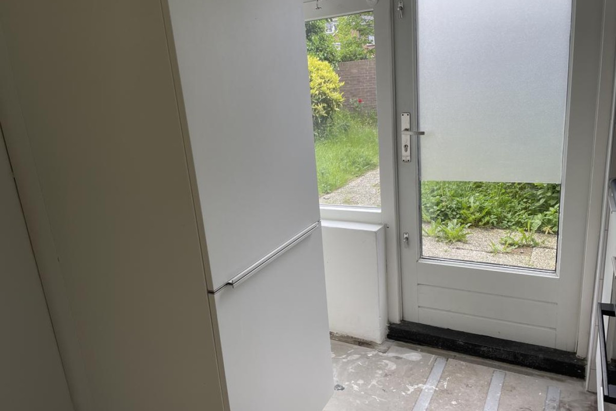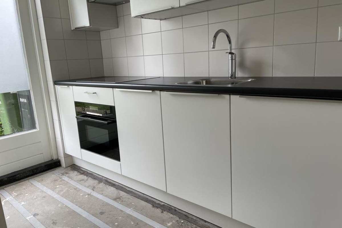 Begane grond: entree, ruime hal, meterkast, hangend toilet met fonteintje, trapopgang met trapkast, doorgang naar de ruime woonkamer welke ruim is bemeten. De dichte keuken is in een rechte opstelling geplaatst (Bribus ) en is voorzien van de nodige inbouwapparatuur o.a.Bosch combimagnetron, kookplaat, vaatwasser, koelvriescombinatie.