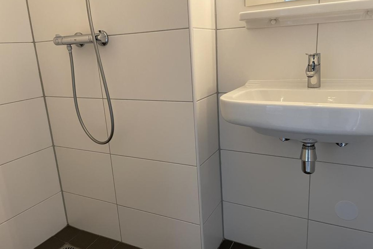 Lees verder1e verdieping: overloop, in totaal vier slaapkamers, de ouderslaapkamer is aan de achterzijde. Badkamer is v.v. douchecabine en wastafel.