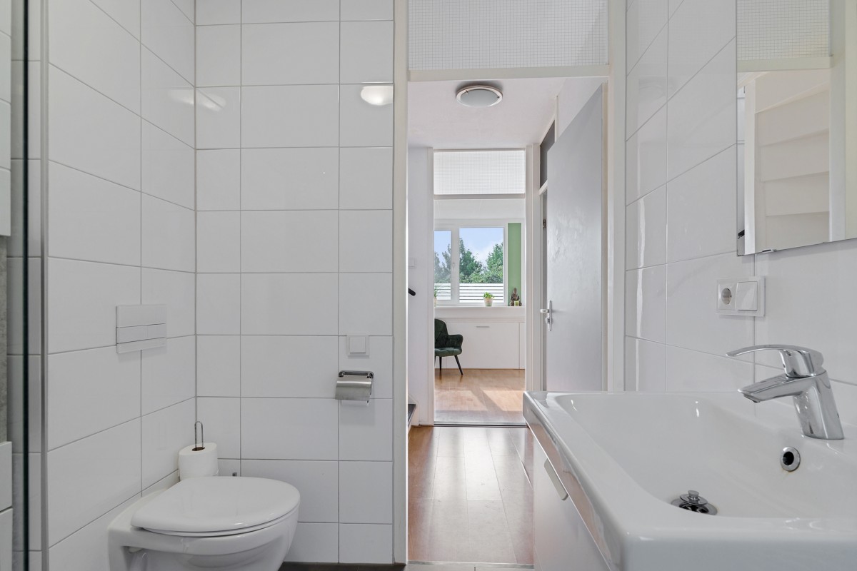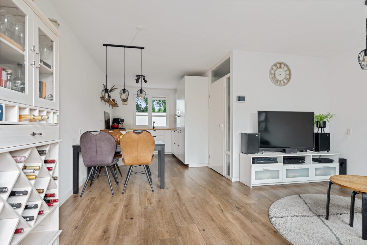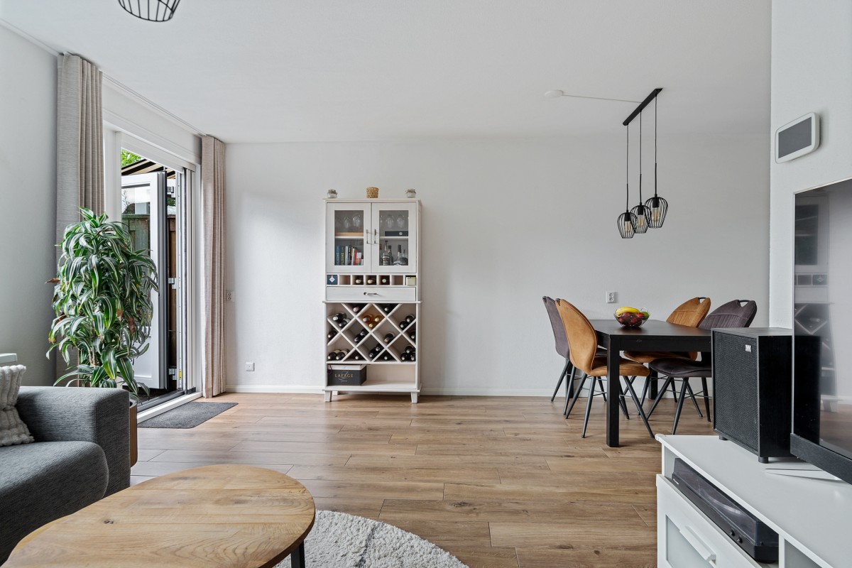 Bij binnenkomst in de tuingerichte woonkamer valt direct het overvloedige daglicht op dat via het grote raam naar binnen stroomt. Er is voldoende ruimte voor een heerlijke zithoek en een eettafel. Via een deur bereikt u de achtergelegen verzorgde tuin.