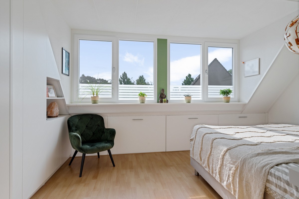 De slaapkamer aan de achterzijde is voorzien van een dakkapel (2021), wat zorgt voor extra ruimte, licht en comfort. Tevens is er een elektrisch bedienbaar rolluik, voor optimale verduistering en privacy. Ideaal voor wie onregelmatige diensten draait.