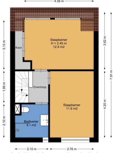 In totaal zijn er twee slaapkamers op de eerste verdieping.