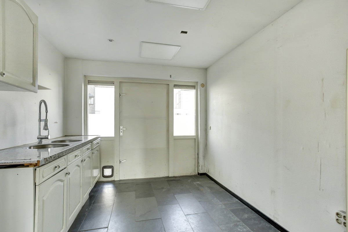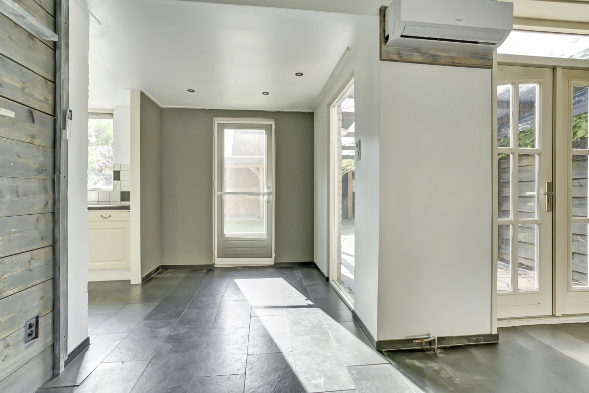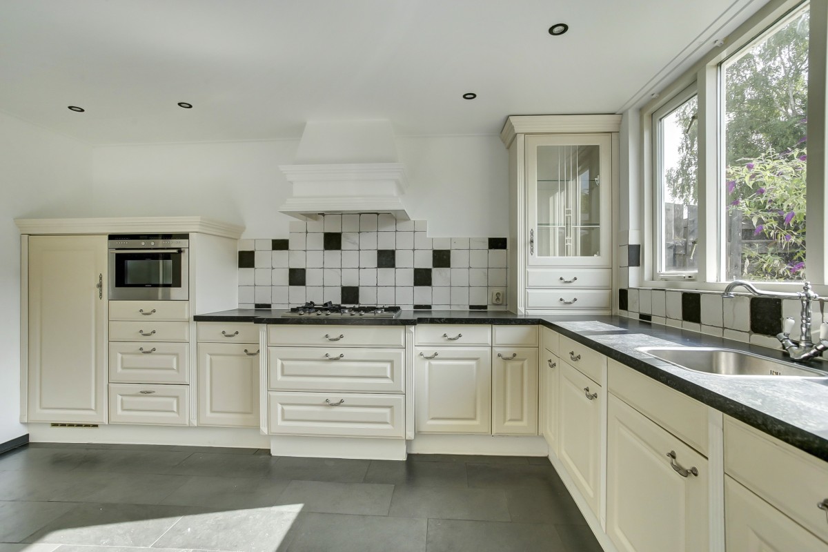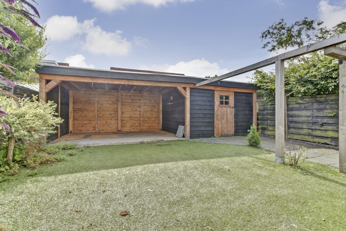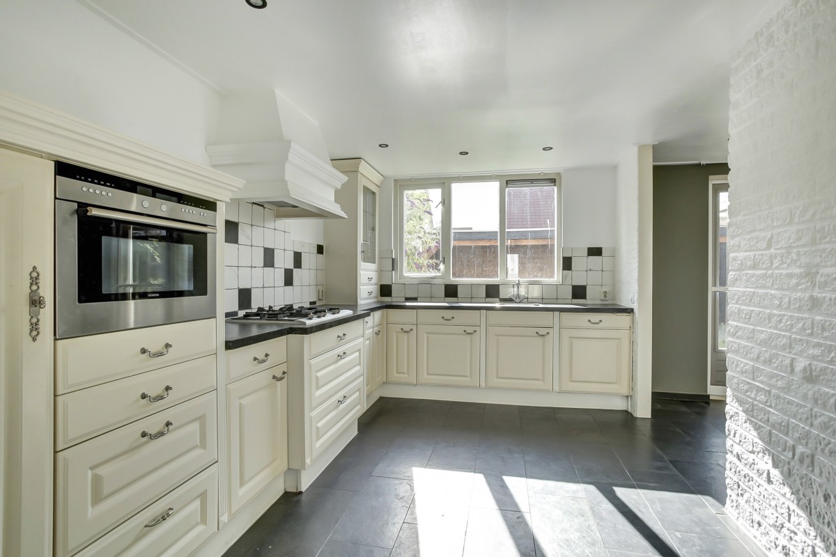 Lees verderDe woonkeuken beschikt over een hoek opgestelde keuken voorzien van een ingebouwde koelkast, vaatwasser, combimagnetron en 5-pits gaskookplaat en schouw met afzuiging. Aangrenzend is een ruime bijkeuken gesitueerd waar een keukenblok en de opstelplaats voor de wasmachine aanwezig zijn. De tuin is op het zuidoosten gelegen en voorzien van een aangebouwde overkapping, achterom langs de woning en een vrijstaande houten berging met overkapping achterin de tuin..