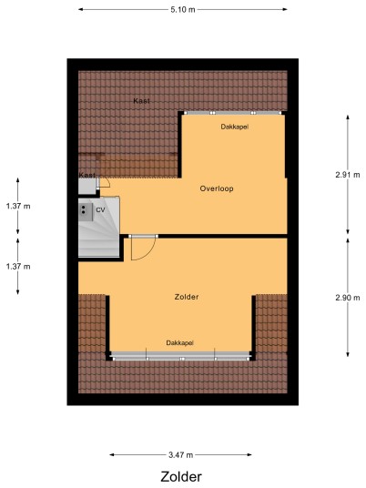 Tweede verdieping: middels een vaste trap is de grote overloop met dakkapel bereikbaar. Hier is de c.v.-ketel (Remeha HR) opgesteld. Aan de voorzijde is een 5e slaapkamer met dakkapel gerealiseerd. Deze verdieping biedt tevens veel bergruimte.