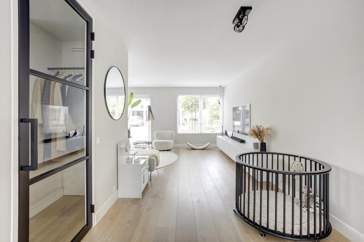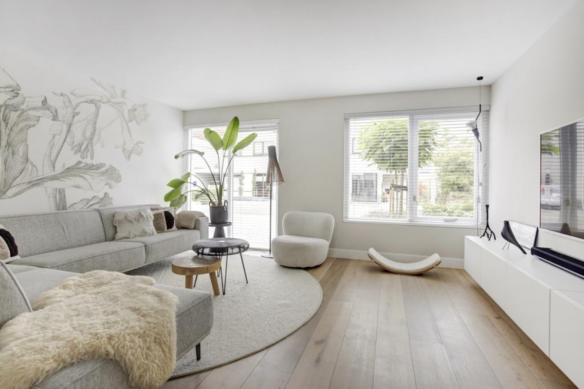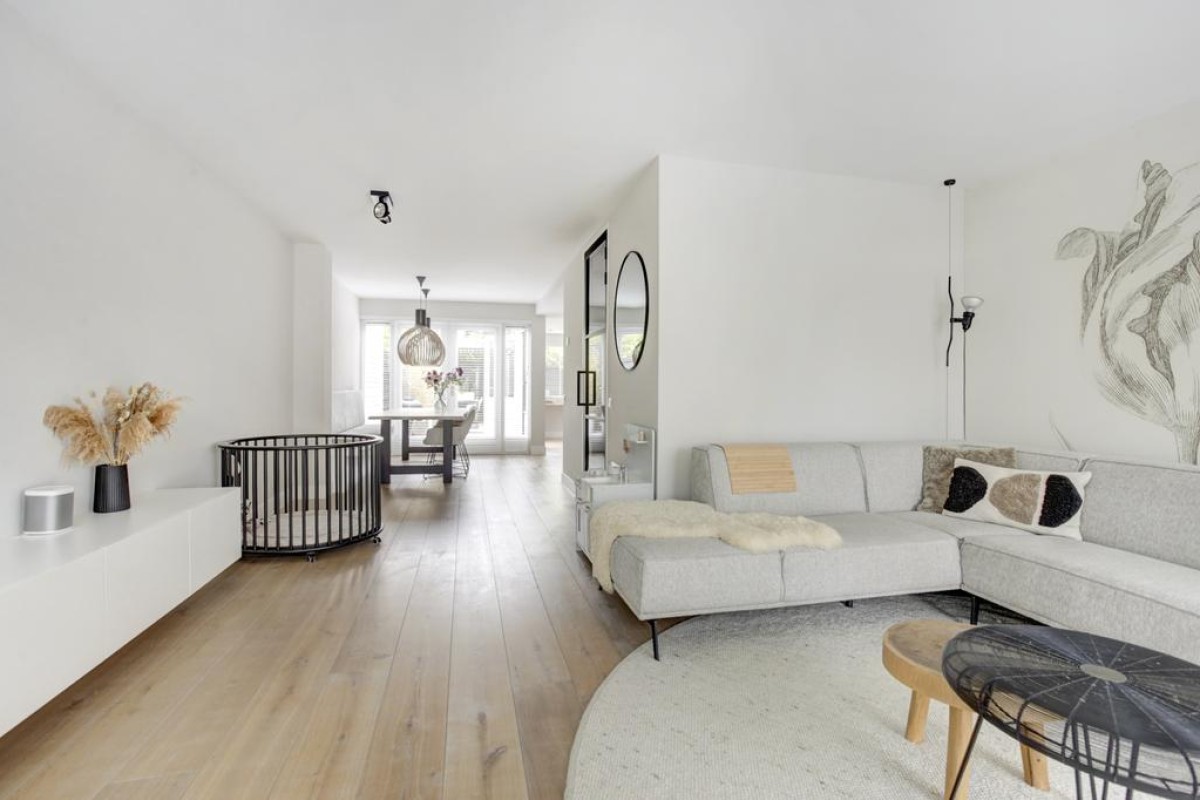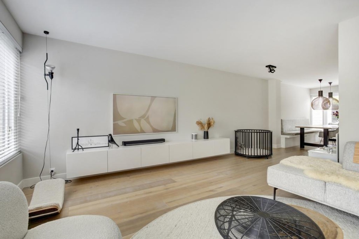 * Woonkamer, hal en keuken voorzien een eikenhouten vloer met vloerverwarming