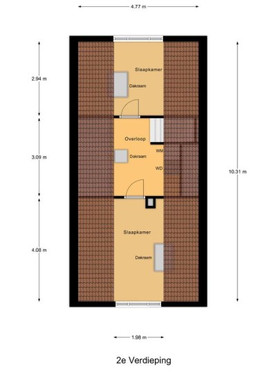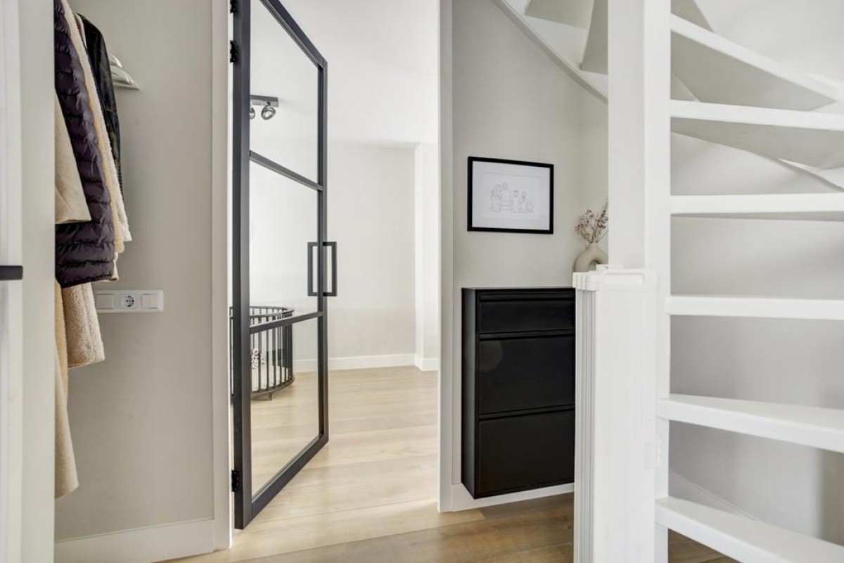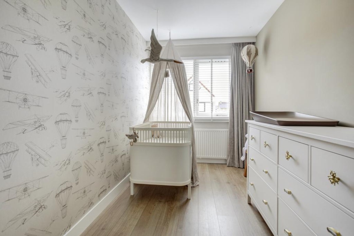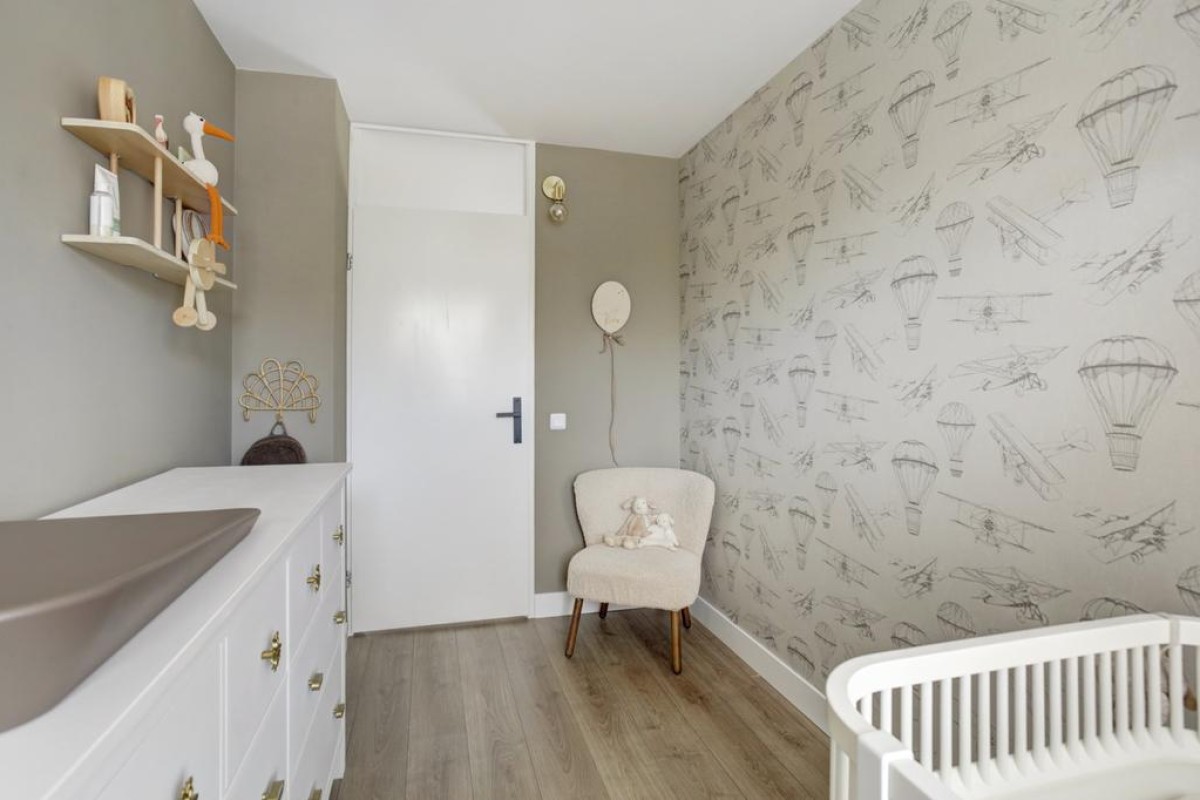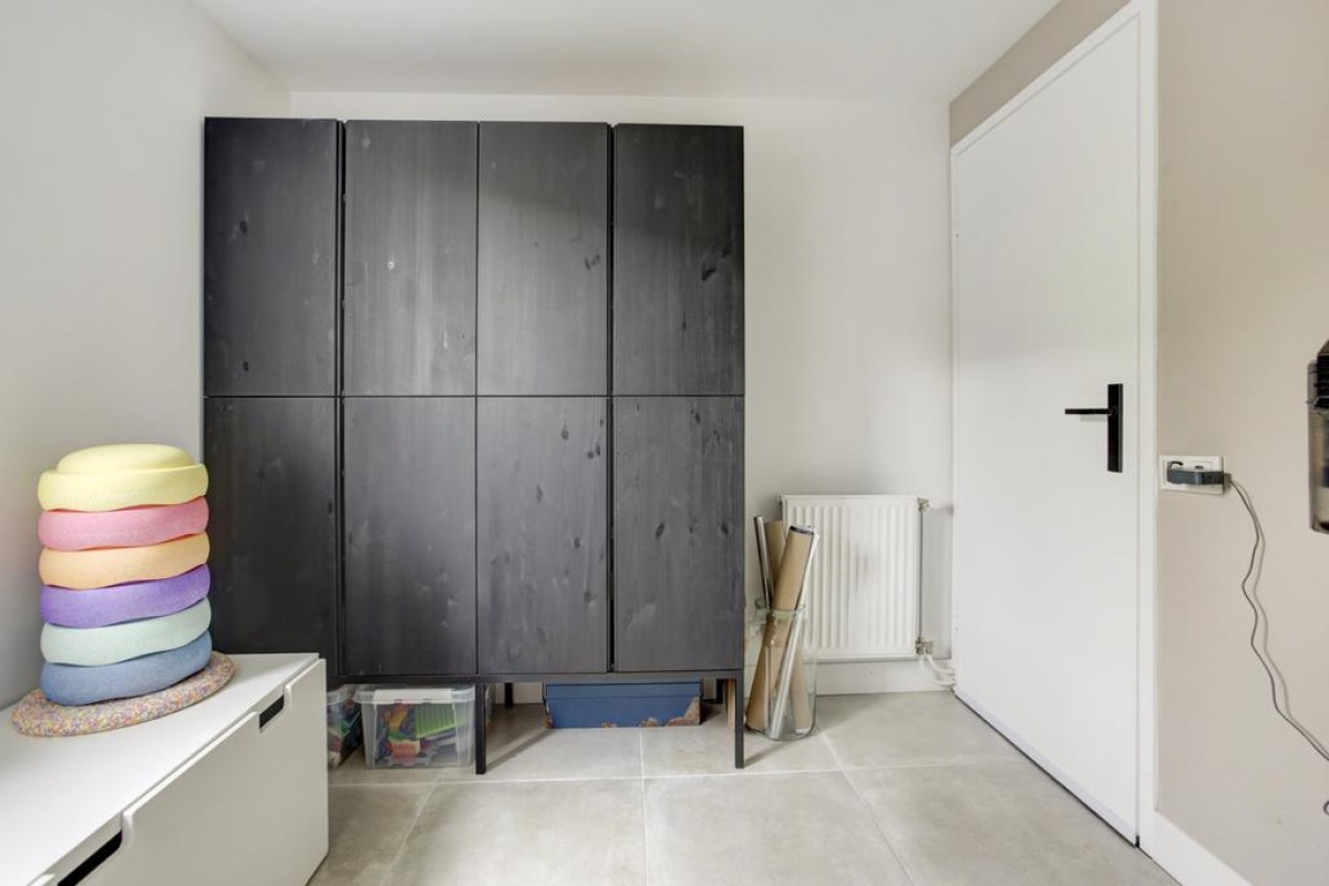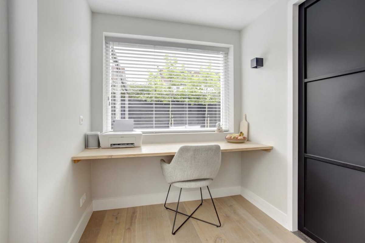 Tweede verdieping: middels een vaste trap is de royale zolderverdieping bereikbaar, waar mede door de aanwezigheid van een dakvenster een lichte voorzolder met opstelplaats van de wasapparatuur is. Zowel aan de voorzijde van de woning alsmede aan de achterzijde zijn nog een 4e en 5e slaapkamer welke recent (2023 en 2022) van een nieuw Velux dakraam zijn voorzien en in een van de kamers is in een kast de c.v.-ketel opgesteld. Achter de knieschotten is veel bergruimte beschikbaar en de gehele etage is afgewerkt met een lichte laminaatvloer.