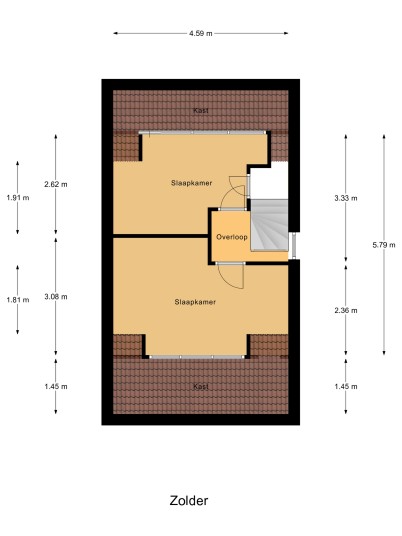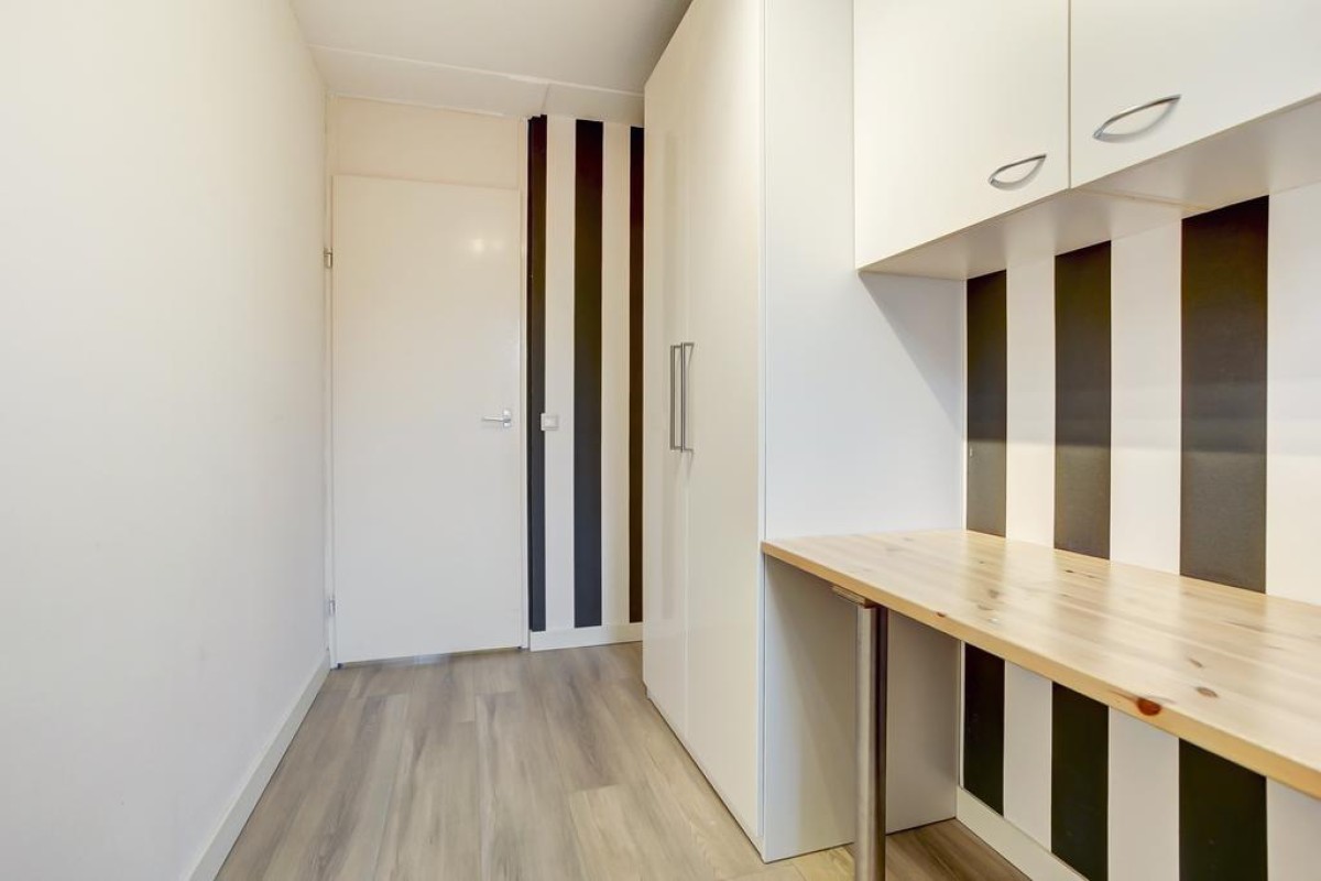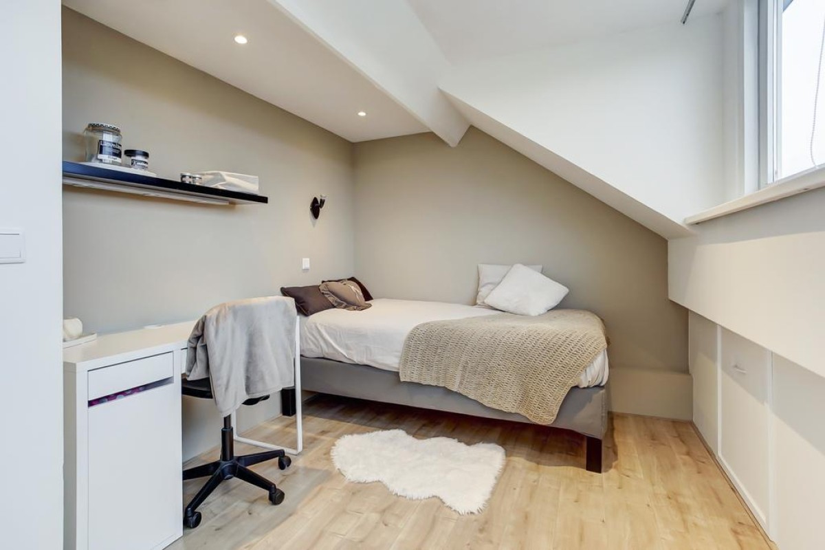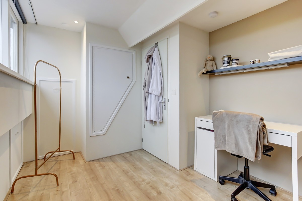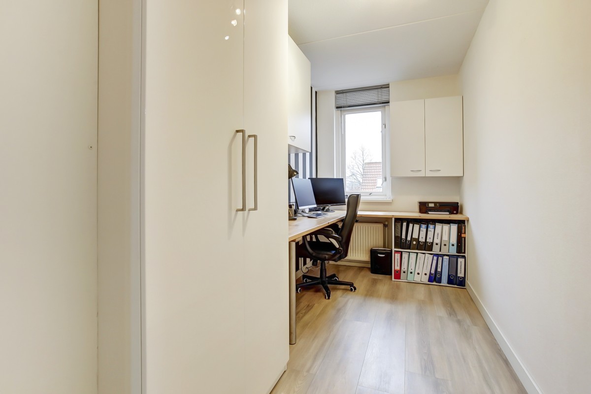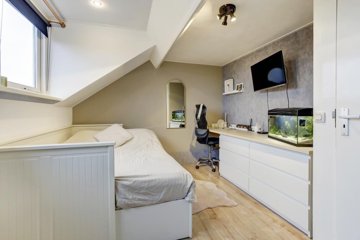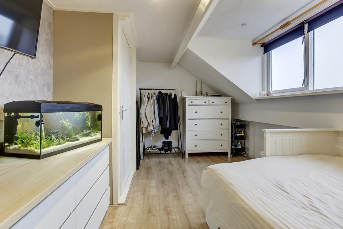 Tweede verdieping: middels een vaste trap is de royale zolderverdieping bereikbaar, waar mede door de aanwezigheid van een gevelraam een lichte voorzolder is met toegang tot een bergzolder. Zowel aan de voorzijde van de woning alsmede aan de achterzijde zijn nog een 4e en 5e slaapkamer gerealiseerd welke beide zijn voorzien van een dakkapel en in een van de kamers is in een kast de c.v.-ketel opgesteld. Achter de knieschotten is praktische bergruimte beschikbaar en de gehele etage is afgewerkt met een lichte laminaatvloer.
