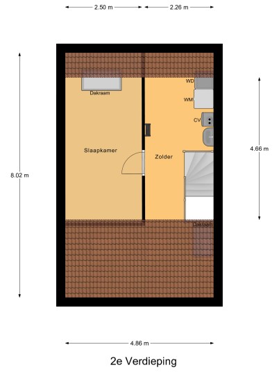 Tweede verdieping: middels een vaste trap naar een ruime voorzolder met opstelplaats van de wasmachine, mechanische ventilatie unit en c.v.-ketel (Intergas HRE) en een wastafel. Tevens is op deze verdieping een 3e slaapkamer gerealiseerd welke is voorzien van een dakraam.