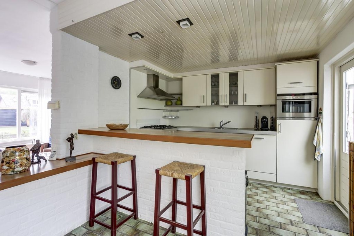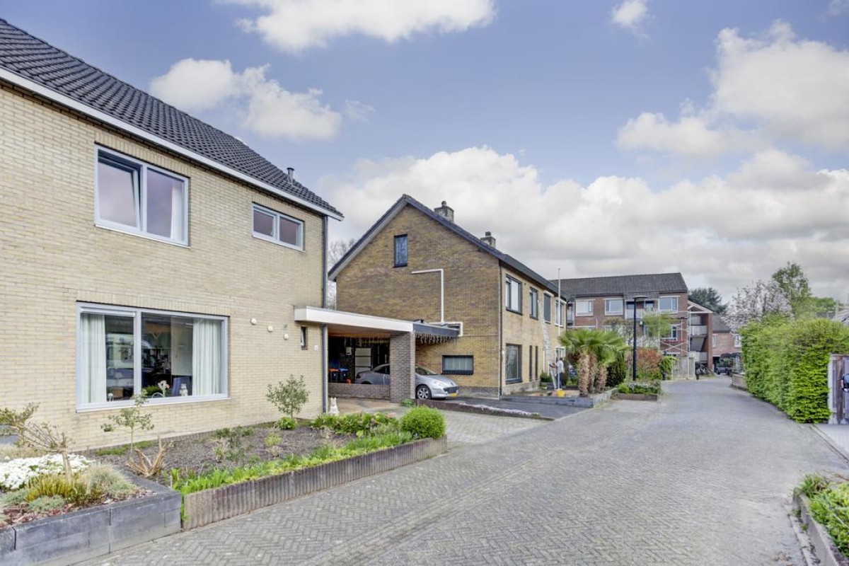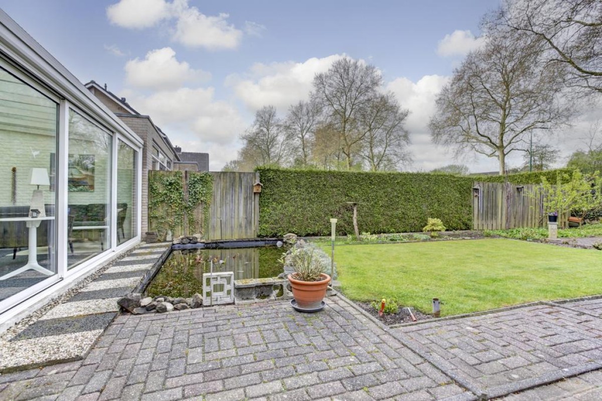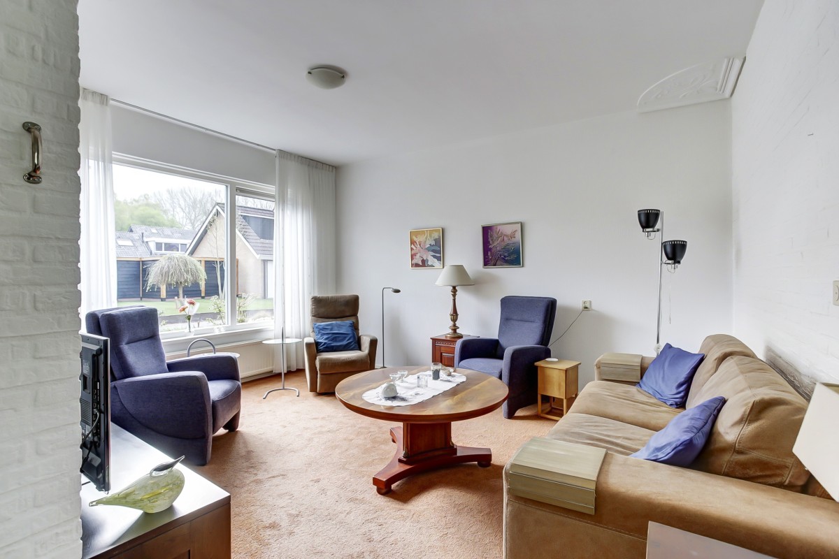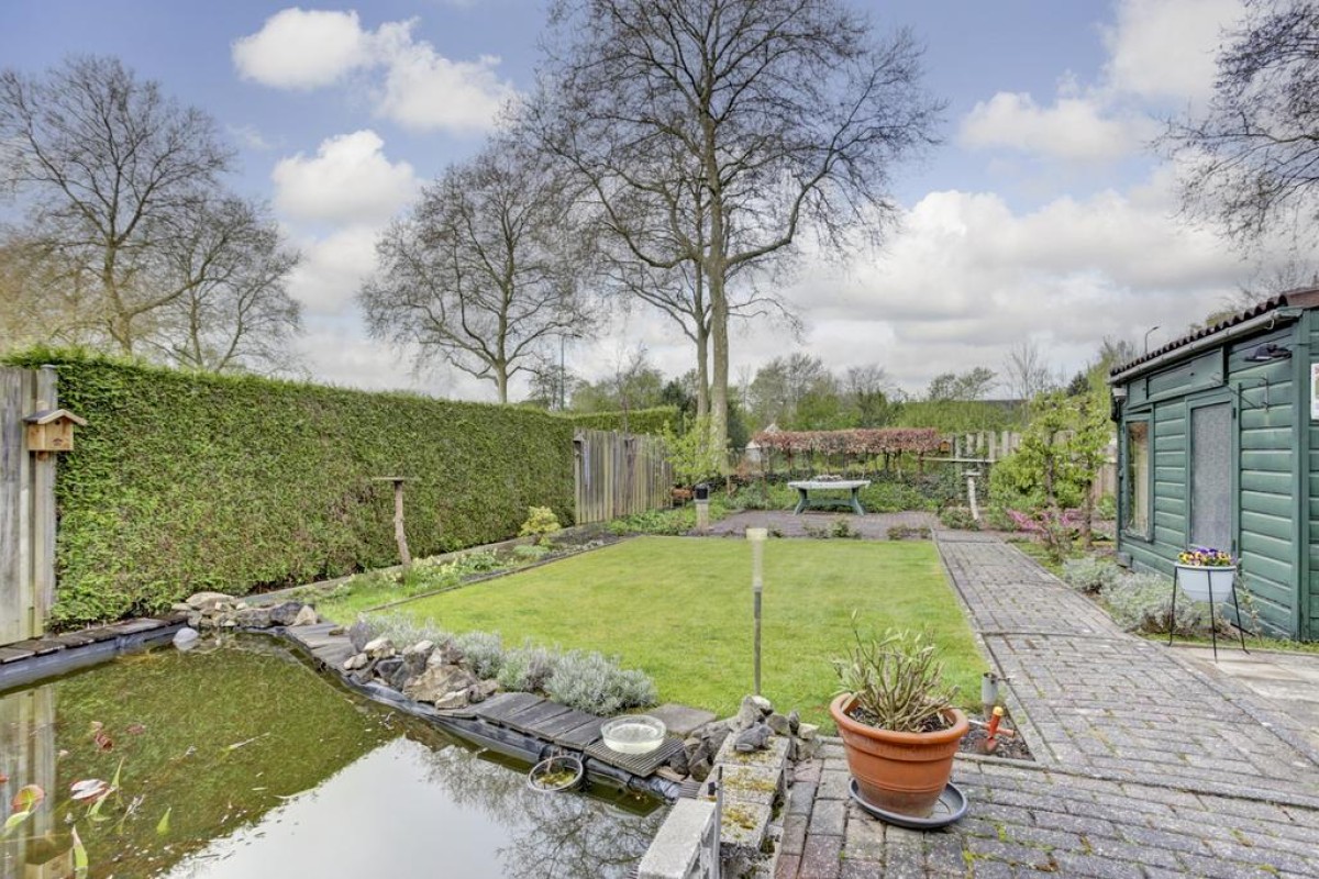 Begane grond: overdekt entree, hal met garderobe, meterkast en toiletruimte voorzien van toilet en fonteintje. De grote verdiepte woonkamer is straatgericht gelegen. De tuingerichte eethoek geeft zicht over de woonkamer, serre en aangrenzende keuken welke voorzien is van een ingebouwde koelkast, vaatwasser, combimagnetron, gaskookplaat en afzuigkap. Vanuit de keuken is de aangebouwde serre bereikbaar wat een heerlijke lichte zitkamer is om de zomerdagen "buiten" eerder te starten en te verlengen. De grote aangebouwde stenen garage is voorzien van een loopdeur naar de tuin en een loopdeur en kanteldeur naar de oprit. De achtertuin is op het westen gesitueerd, verzorgd aangelegd en voorzien van een groot terras en vrijstaand tuinhuis.