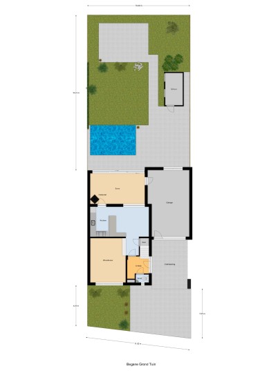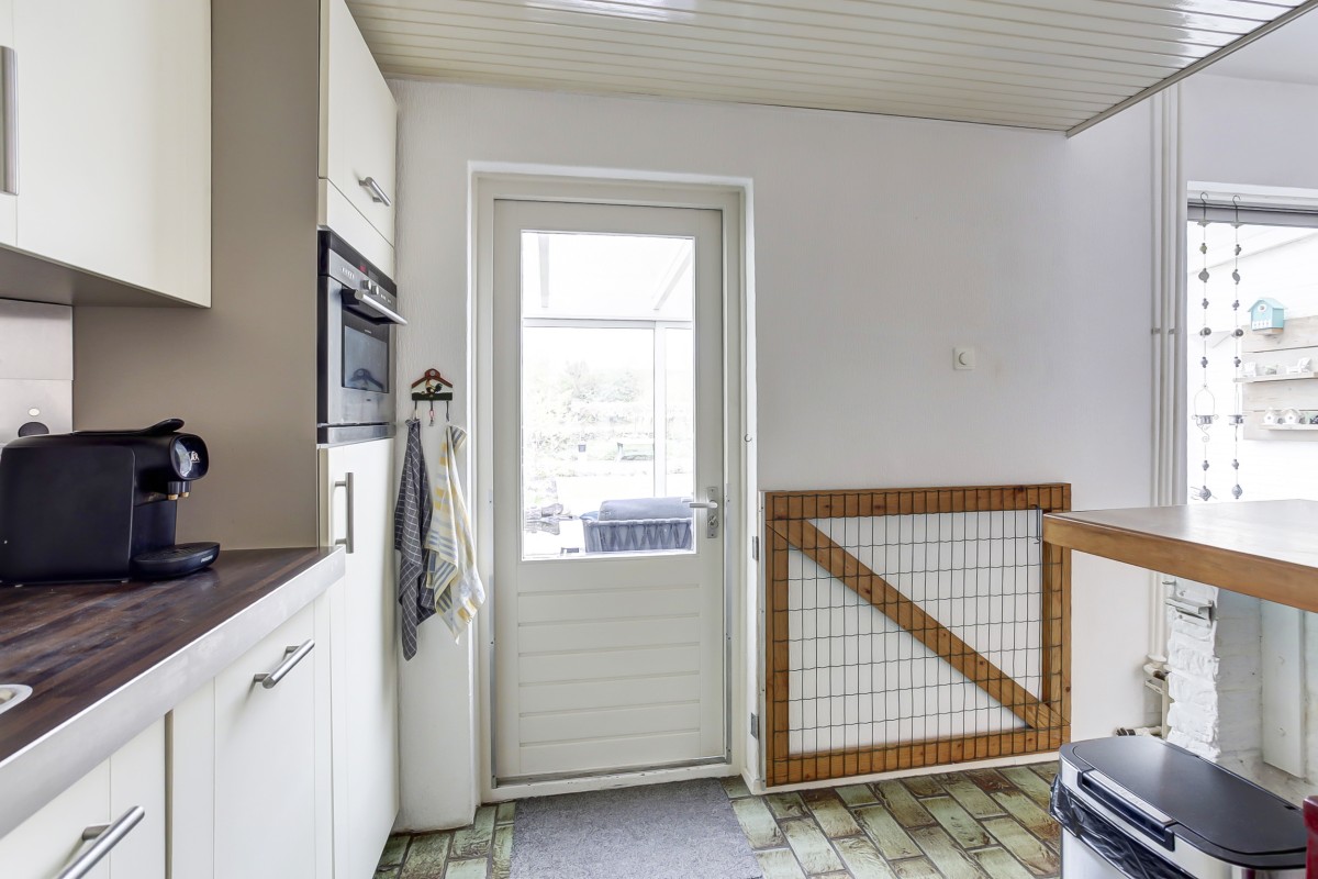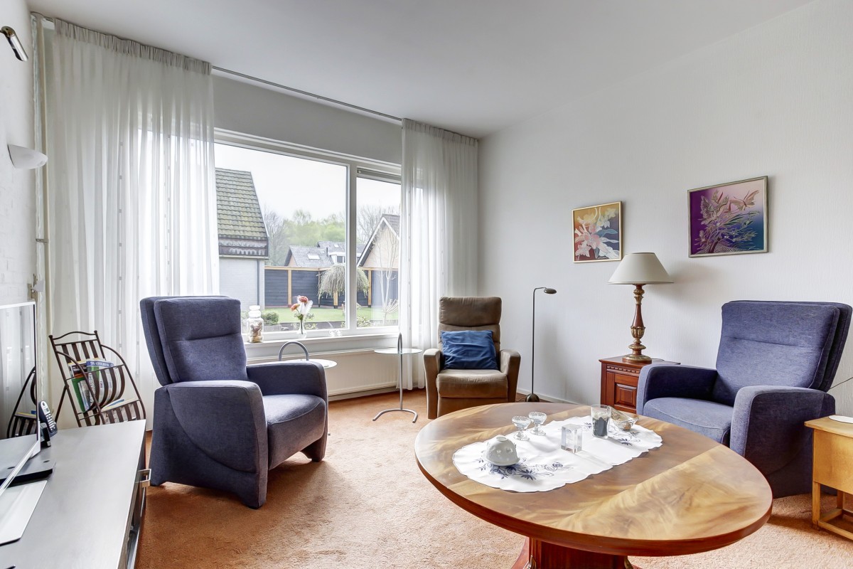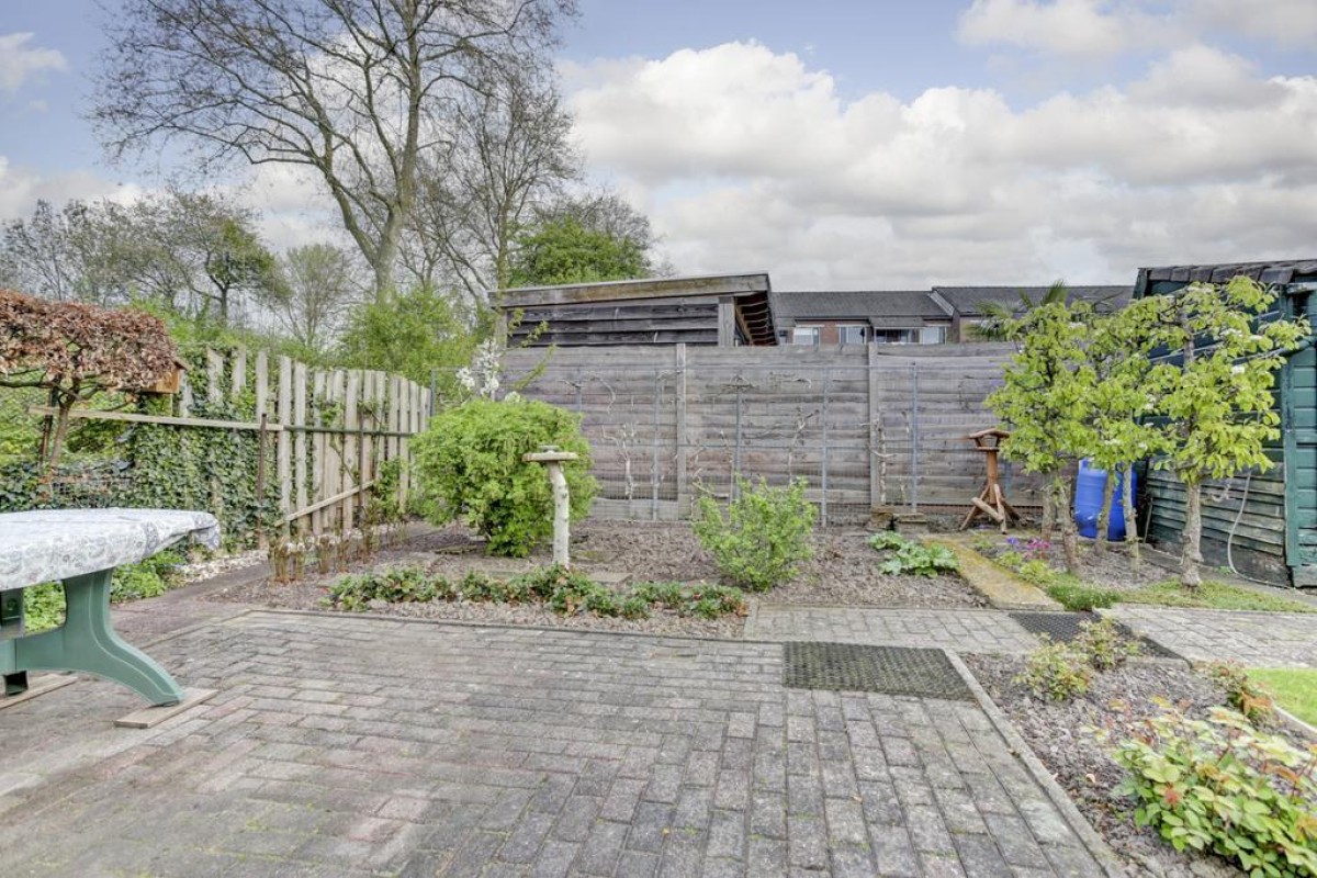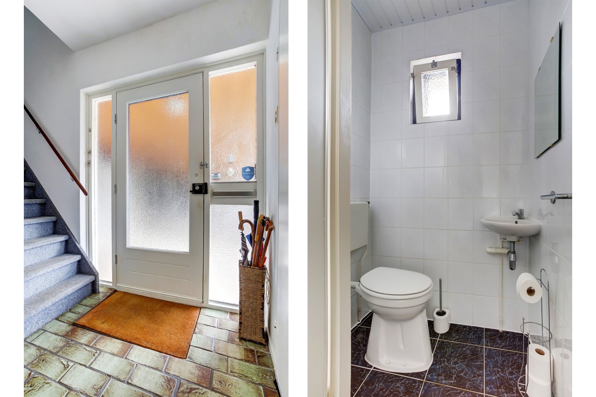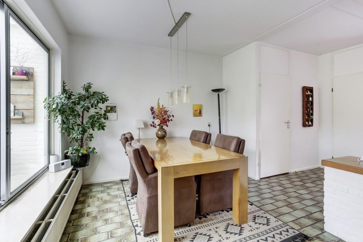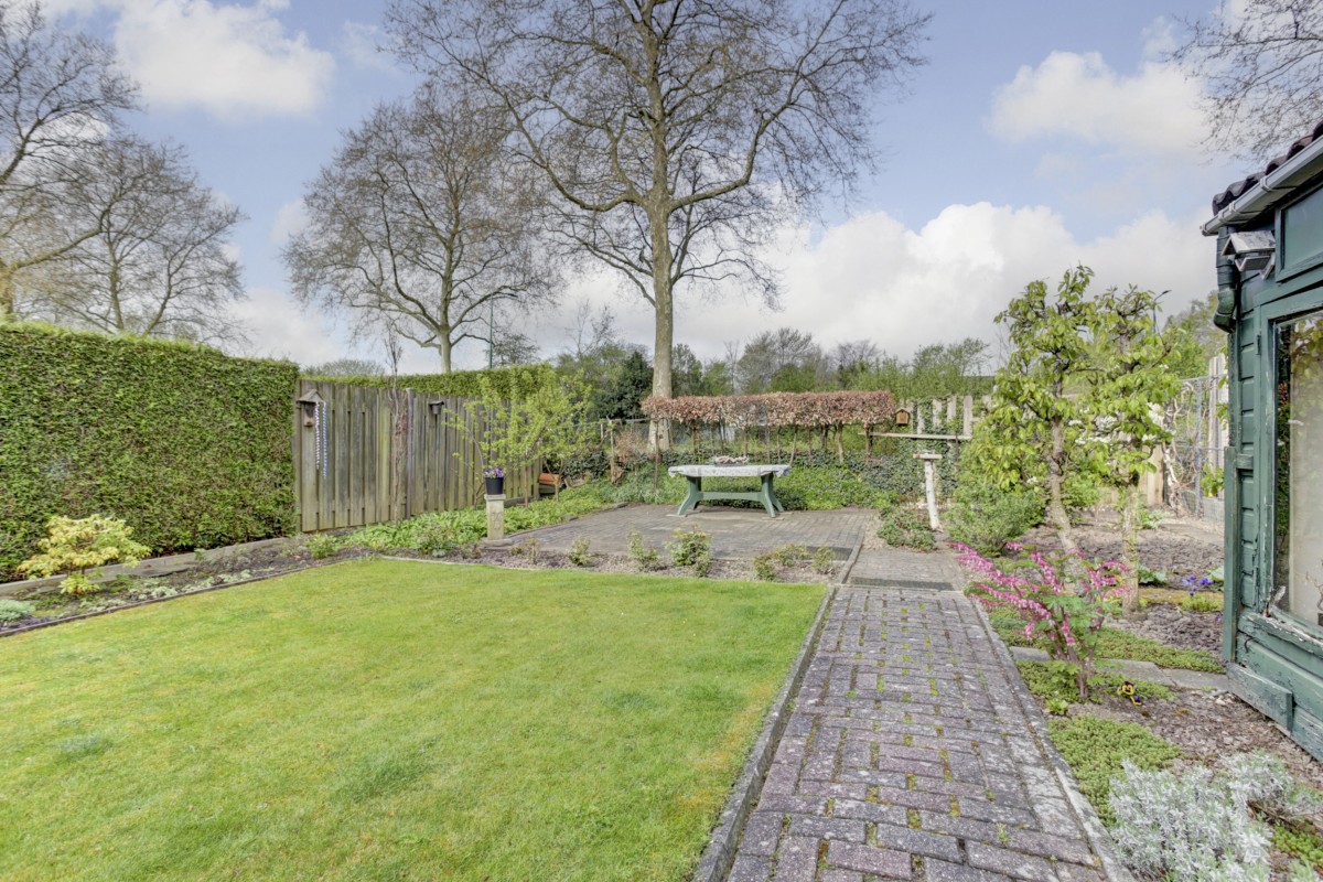 Begane grond: overdekt entree, hal met garderobe, meterkast en toiletruimte voorzien van toilet en fonteintje. De grote verdiepte woonkamer is straatgericht gelegen. De tuingerichte eethoek geeft zicht over de woonkamer, serre en aangrenzende keuken welke voorzien is van een ingebouwde koelkast, vaatwasser, combimagnetron, gaskookplaat en afzuigkap. Vanuit de keuken is de aangebouwde serre bereikbaar wat een heerlijke lichte zitkamer is om de zomerdagen "buiten" eerder te starten en te verlengen. De grote aangebouwde stenen garage is voorzien van een loopdeur naar de tuin en een loopdeur en kanteldeur naar de oprit. De achtertuin is op het westen gesitueerd, verzorgd aangelegd en voorzien van een groot terras en vrijstaand tuinhuis.