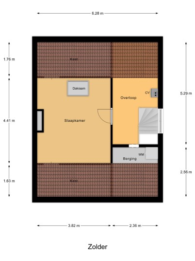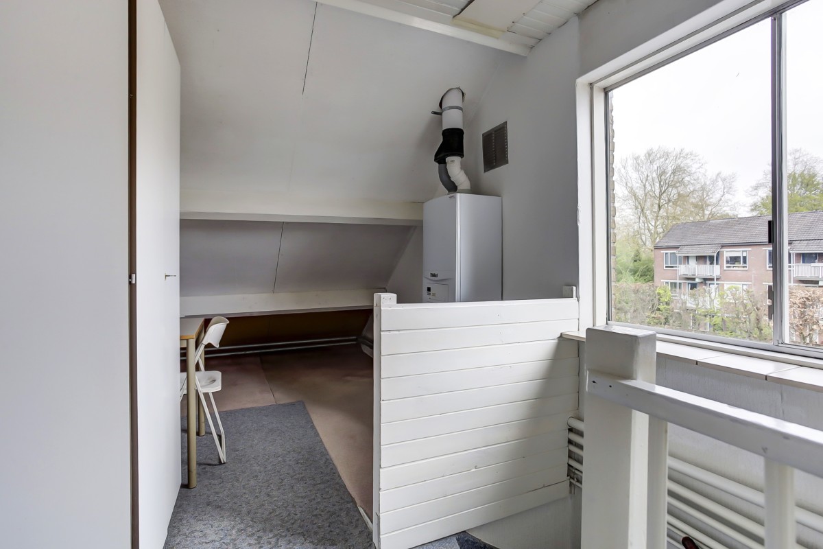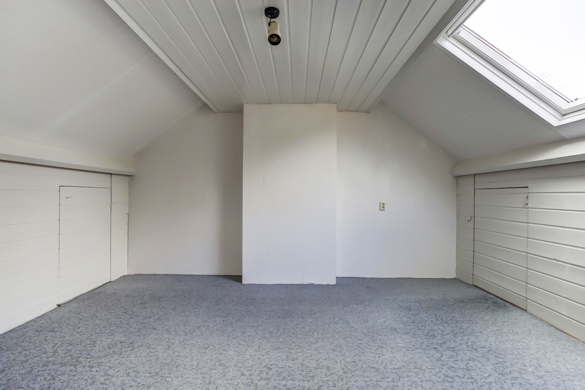 Tweede verdieping: middels een vaste trap is de ruime zolderverdieping te bereiken. De voorzolder is voorzien van een gevelraam, bergruimte en een stookruimte waar de opstelling van de c.v.-ketel is gerealiseerd (VaillantHR 2014). Hier bevindt zich ook de aansluiting voor de wasmachine en droger. Aansluitend bevindt zich op deze verdieping een mooie 4e slaapkamer met Velux dakraam. Tevens is er veel bergruimte achter de knieschotten. Deze verdieping is eveneens voorzien van vloerbedekking.