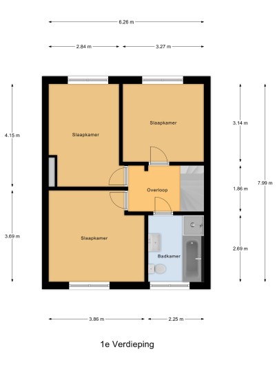 Eerste verdieping: overloop met toegang tot 3 slaapkamers en de moderne badkamer. De slaapkamers zijn allemaal mooi ruim en praktisch in te richten. De nieuwe kozijnen zijn in 2022 geplaatst en voorzien van HR++ glas. De badkamer is voorzien van een 2e toilet, wastafelmeubel, ligbad en douchecabine. e overloop en slaapkamers beschikken over vloerbedekking.