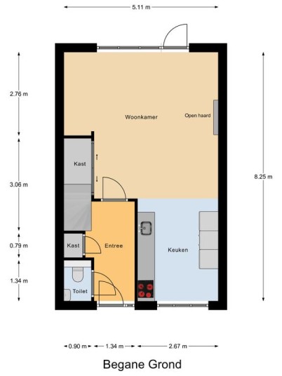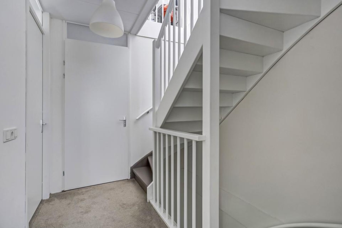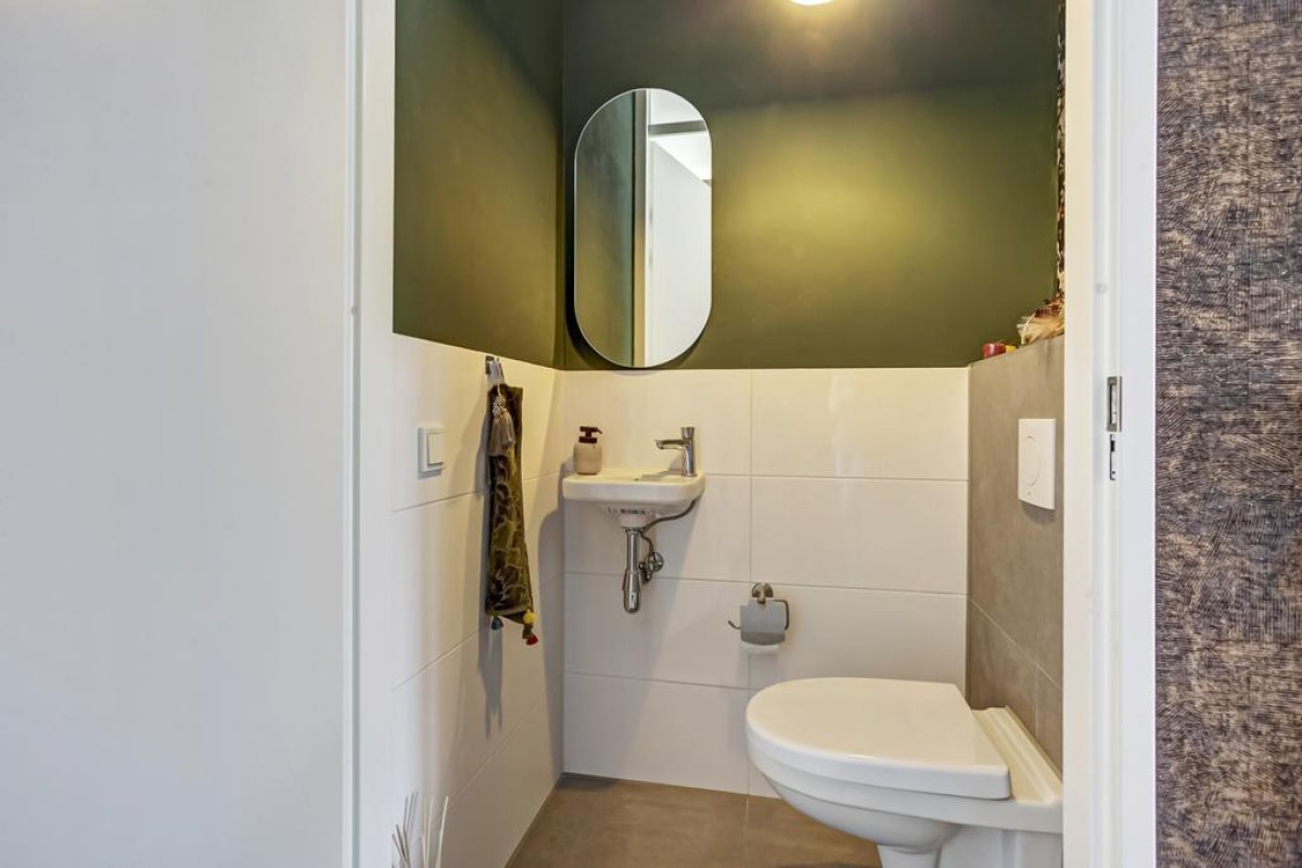 Begane grond: entree, hal met meterkast en toiletruimte met hangcloset en fonteintje, tuingerichte woonkamer met ruime eethoek.