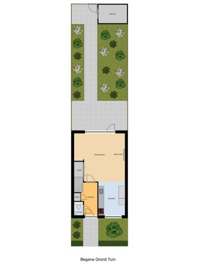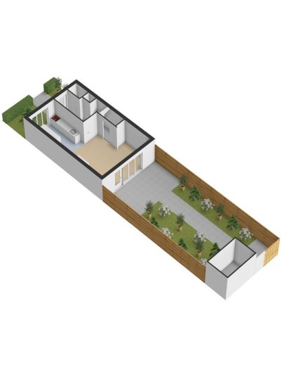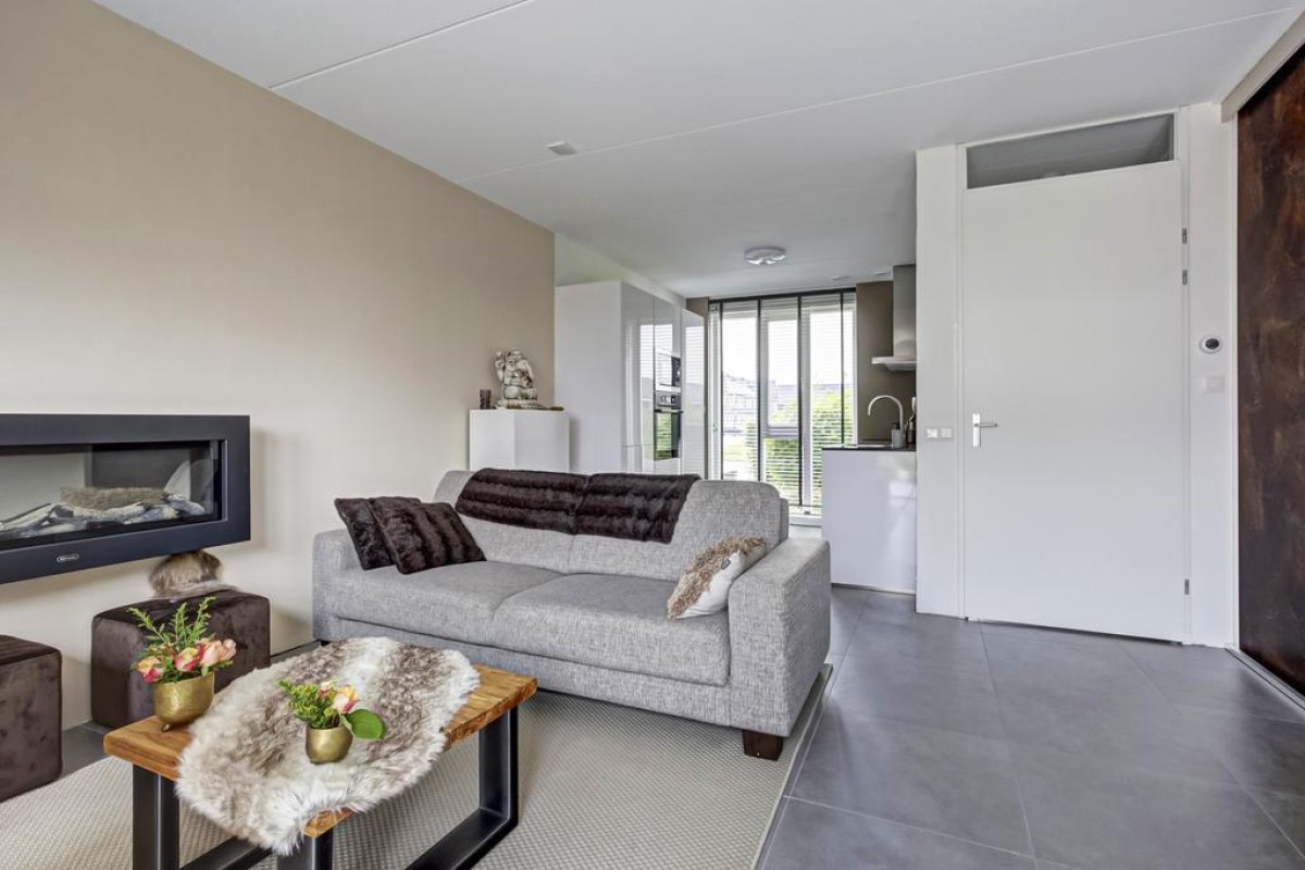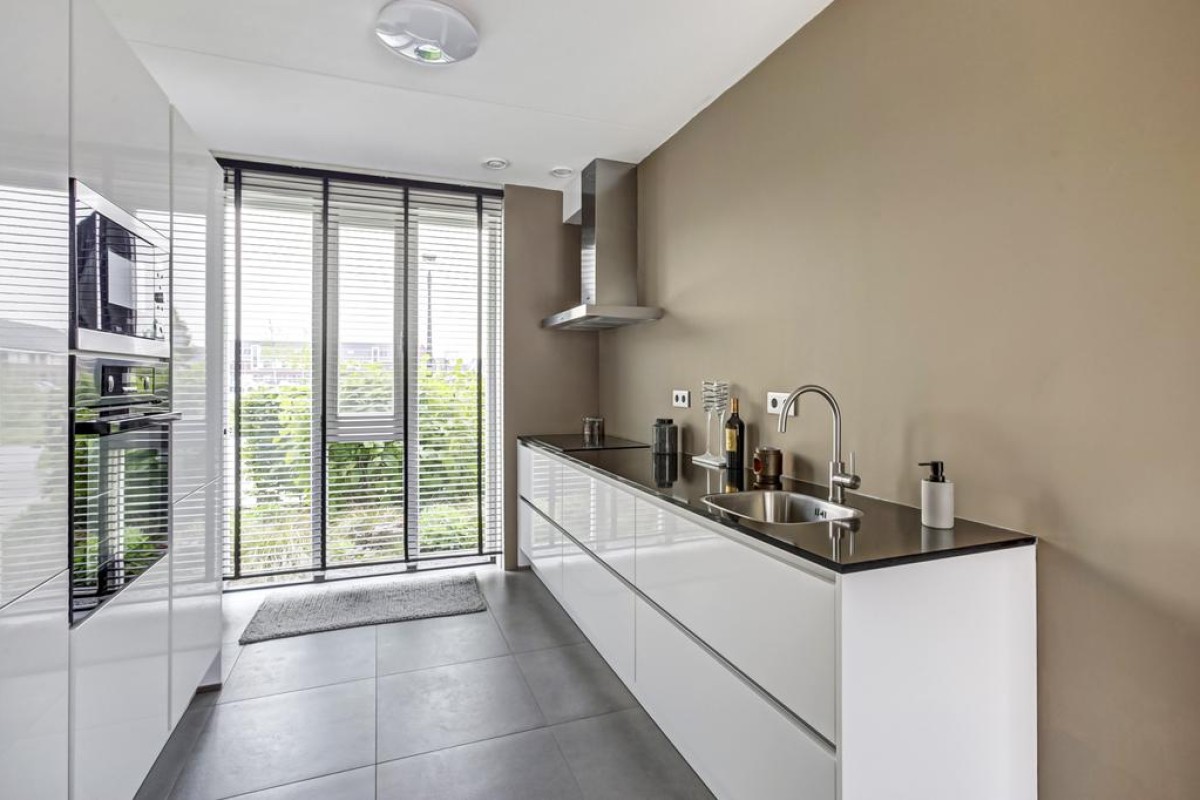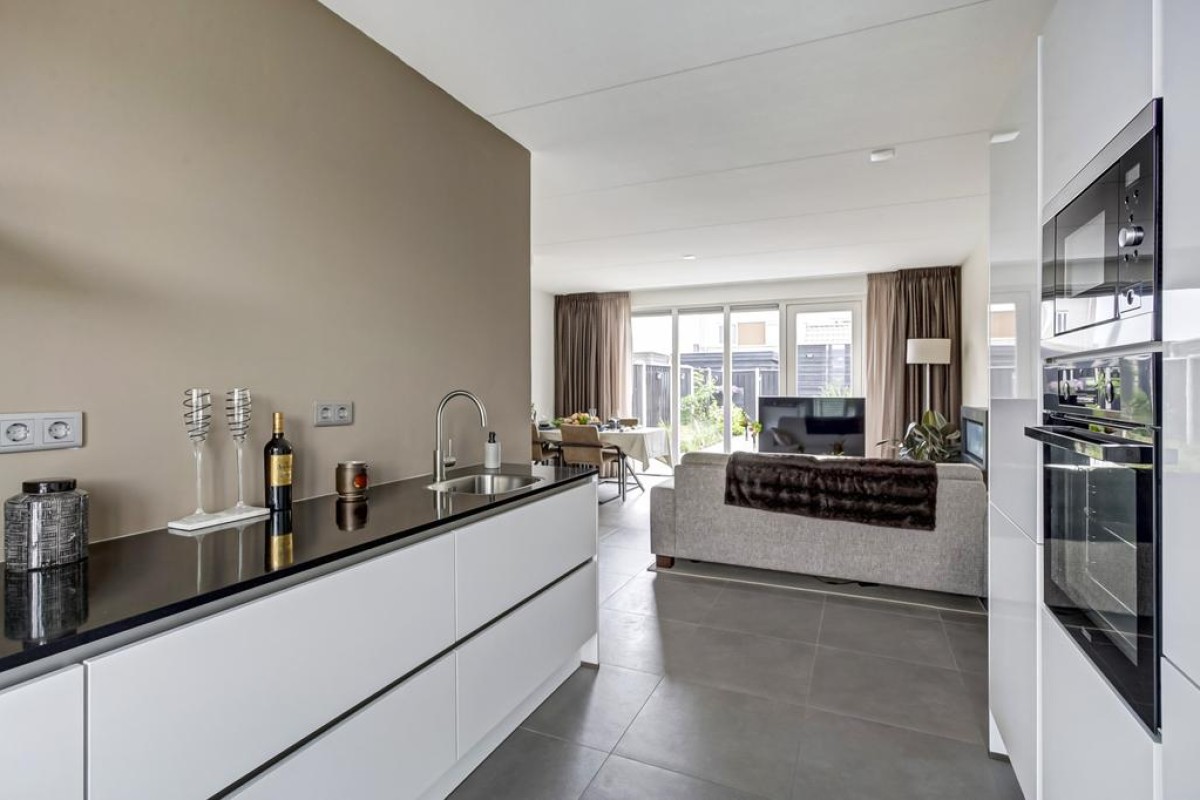 Lees verderDe moderne keuken is aan de voorzijde van de woning gesitueerd en voorzien van een ingebouwde koelkast, vrieskast, oven, magnetron, inductiekookplaat en afzuigkap. Na de zomer zal er een vaatwasser (inbouw) in de keuken worden ingebouwd. De woonkamer is tuingericht en heerlijk licht door de grote raampartijen. Vanuit de woonkamer is middels een loopdeur de achtertuin te betreden welke verzorgd en onderhoudsarm aangelegd is met o.a. een terras, een vrijstaande houten berging en een achterom met poort. De begane grondvloer is voorzien van een stenen vloer met vloerverwarming.