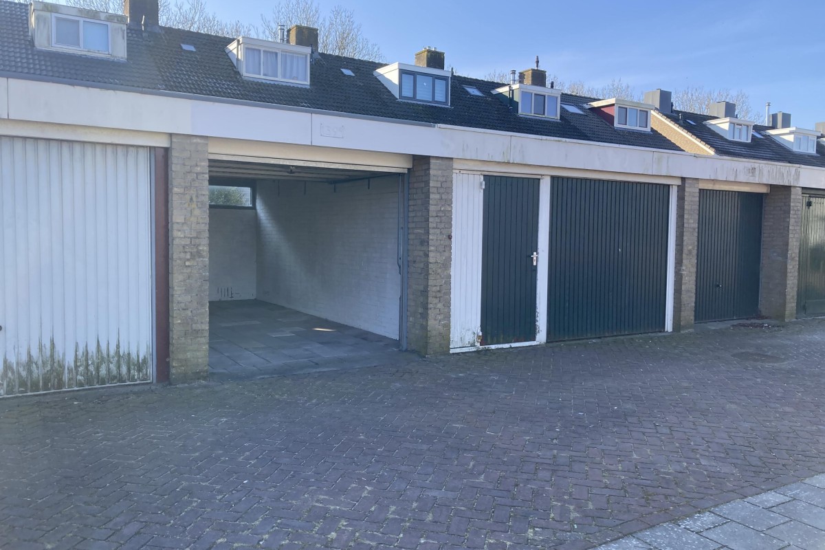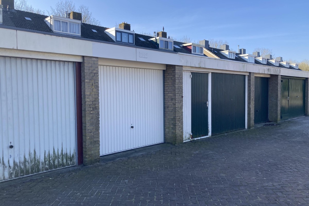 Op goede locatie gelegen garagebox (5,5m x 3m) met een prettige ruimte ervoor voorzien van een kanteldeur.