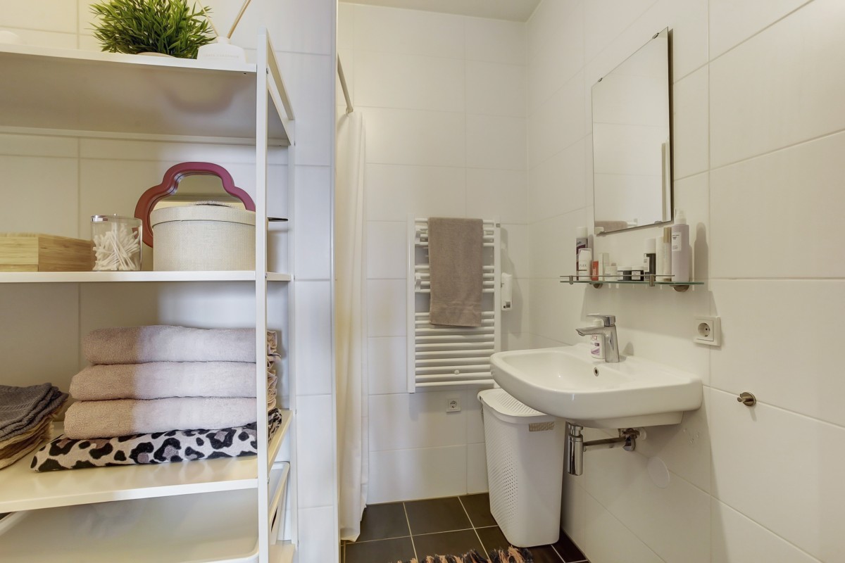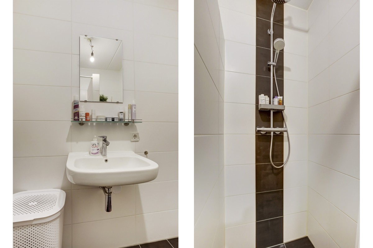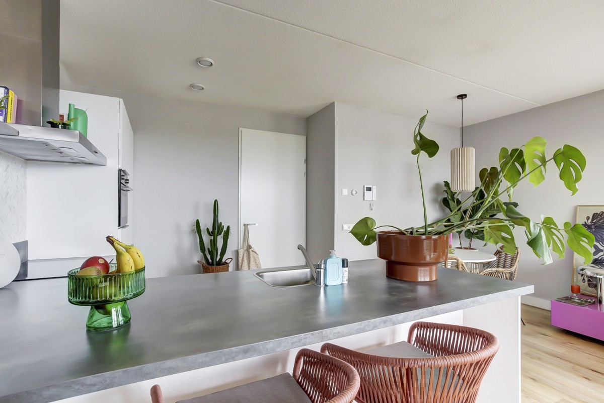 Lees verderDit modern afgewerkte en instap klare 2-kamer appartement van 52m² bestaat uit een entree met toegang tot de hal met garderobe, meterkast, toiletruimte met hangcloset en fonteintje, een praktische berging met de opstelplaats van c.v.-ketel, wasmachineaansluiting inclusief wasmachine en ventilatie-unit. Aangrenzend zijn de mooie slaapkamer en de badkamer gelegen. De woonkamer biedt een ruime zithoek, eethoek met moderne luxe keuken welke zijn voorzien van een parketvloer. De keuken is in een hoekopstelling met een ontbijtbar en is voorzien van een ingebouwde vaatwasser, koelkast, combimagnetron, inductie kookplaat en rvs afzuigkap. Aan de woonkamer is een zeer riant balkon gelegen op het zuidwesten met fraai uitzicht over "De Noord".