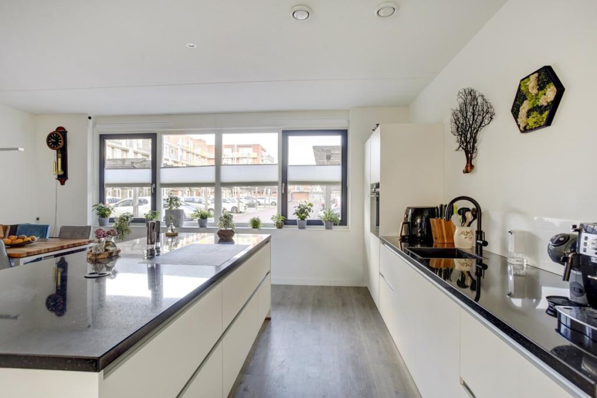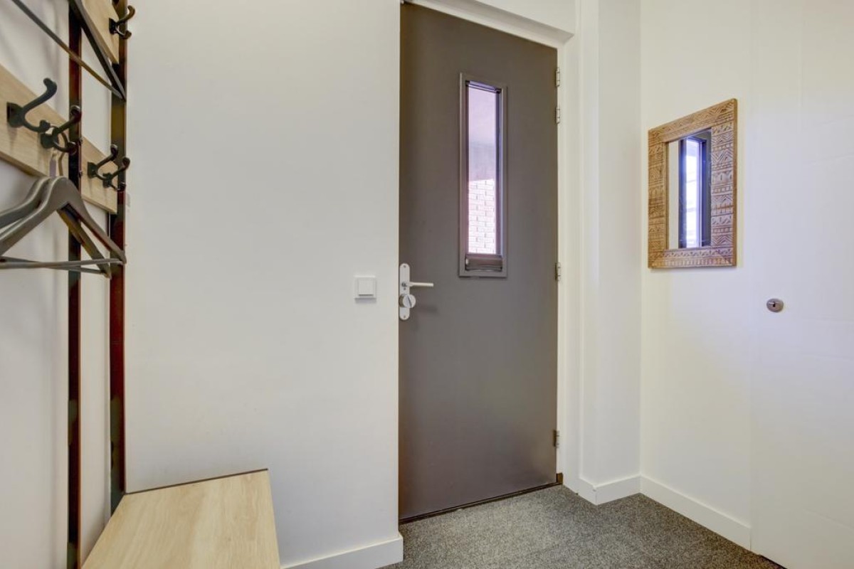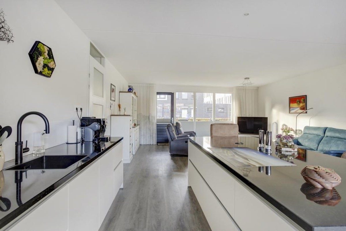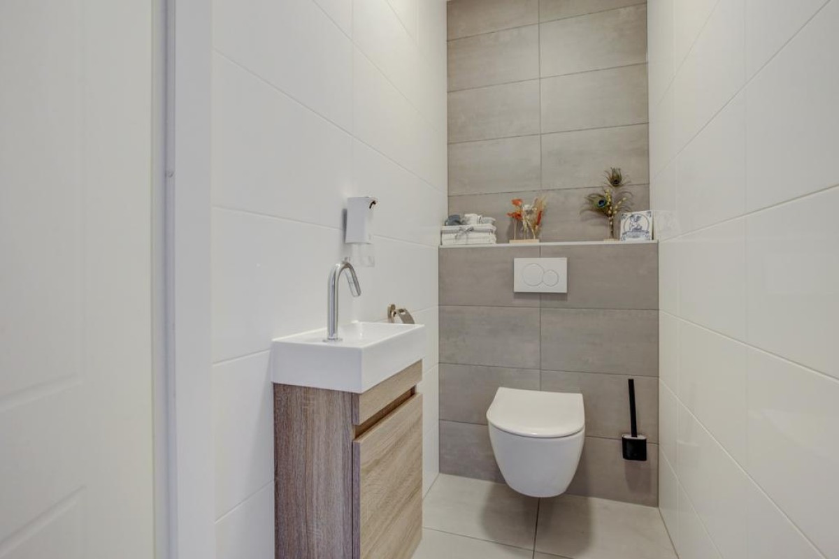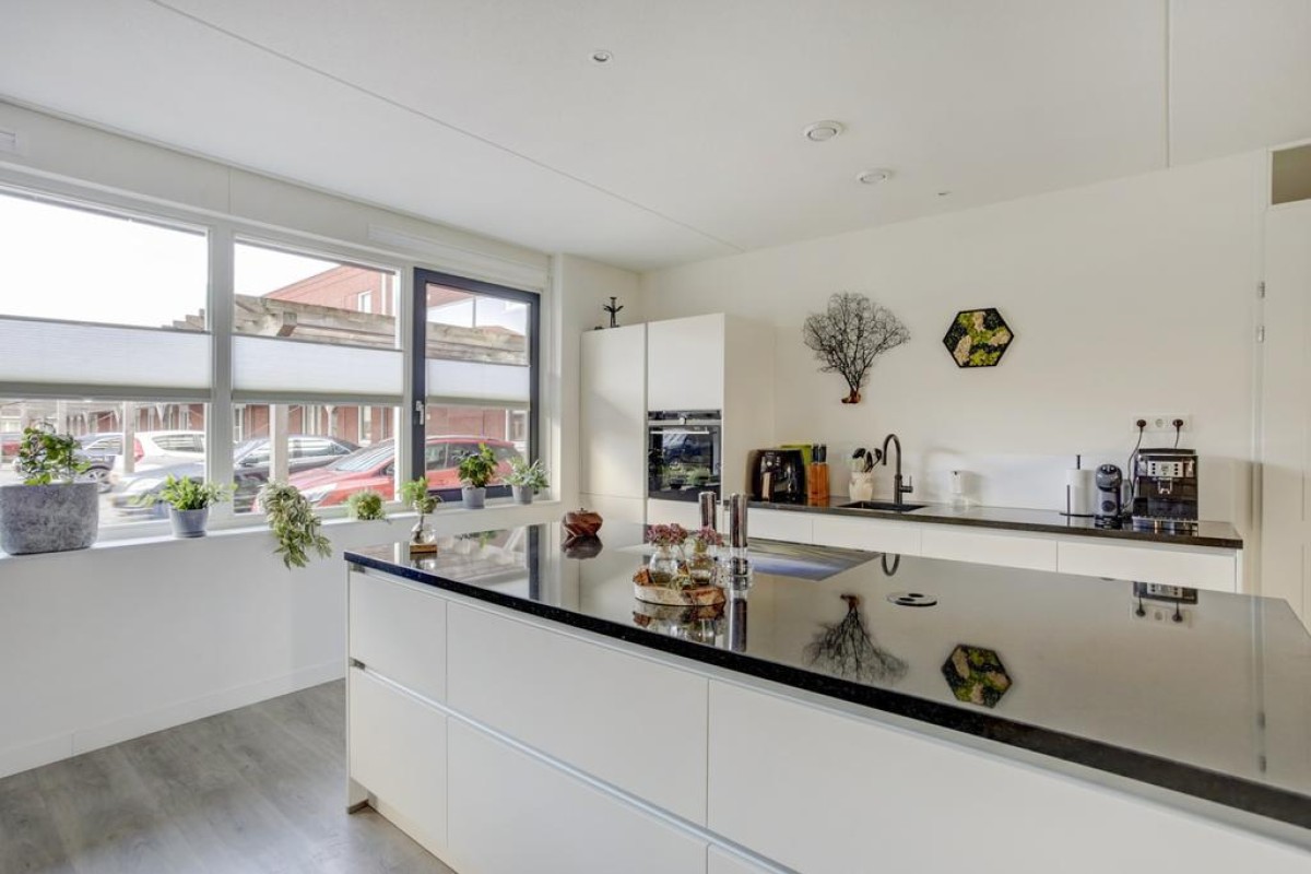 Aan de hal is tevens de meterkast en de luxe toiletruimte met hangcloset en fonteintje gesitueerd. De inpandige berging biedt een opstelling van de c.v.-ketel (Intergas HR 2020) en de mechanische ventilatie. De wasmachine en droger zijn in een aparte wasruimte gesitueerd. De badkamer is luxe uitgevoerd en biedt een breed meubel met wastafel en een ruime inloopdouche met glazen scherm. De slaapkamers hebben alle drie een mooie maatvoering en een vaste kast op maat gemaakt en ingebouwd. De woonkamer beschikt over uitzicht op de tuin, waarbij de keuken met eethoek uitzicht op het binnenterrein geeft. De zeer riante luxe keuken is voorzien is van een kookeiland met inductiekookplaat en down-draft-afzuiging (Bora) alsmede veel grote kortlades. Het granieten blad geeft veel afzetruimte en is tevens op het tweede deel van de keuken geplaatst. De keuken is verder voorzien van een ingebouwde stoomoven, koelkast, vrieskast en een vaatwasser. Een loopdeur biedt toegang tot het overdekte zonneterras welke op het zuiden gesitueerd is. De privé tuin is prachtig aangelegd en geeft uitzicht en een poort naar het brede openbaar gebied. Aan de tuin grenst een aangebouwde stenen berging.