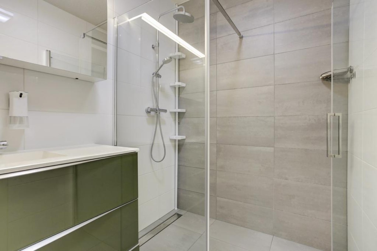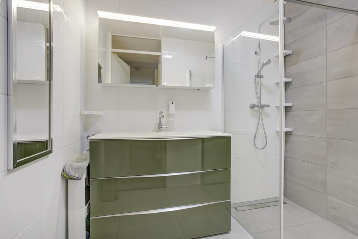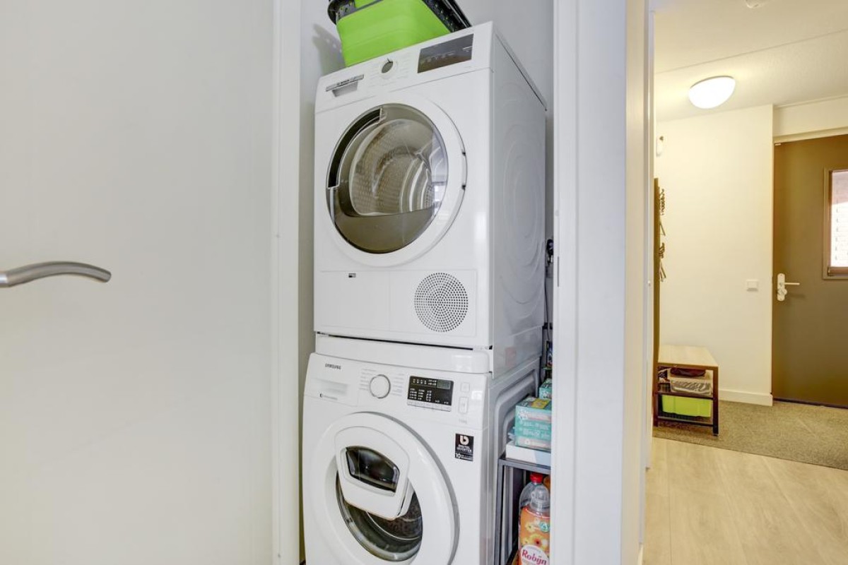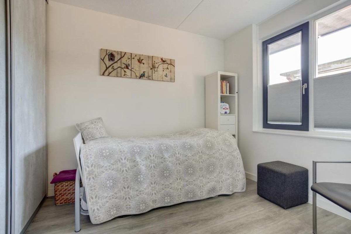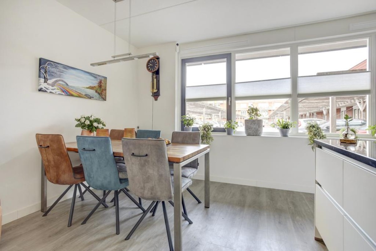 Aan de hal is tevens de meterkast en de luxe toiletruimte met hangcloset en fonteintje gesitueerd. De inpandige berging biedt een opstelling van de c.v.-ketel (Intergas HR 2020) en de mechanische ventilatie. De wasmachine en droger zijn in een aparte wasruimte gesitueerd. De badkamer is luxe uitgevoerd en biedt een breed meubel met wastafel en een ruime inloopdouche met glazen scherm. De slaapkamers hebben alle drie een mooie maatvoering en een vaste kast op maat gemaakt en ingebouwd. De woonkamer beschikt over uitzicht op de tuin, waarbij de keuken met eethoek uitzicht op het binnenterrein geeft. De zeer riante luxe keuken is voorzien is van een kookeiland met inductiekookplaat en down-draft-afzuiging (Bora) alsmede veel grote kortlades. Het granieten blad geeft veel afzetruimte en is tevens op het tweede deel van de keuken geplaatst. De keuken is verder voorzien van een ingebouwde stoomoven, koelkast, vrieskast en een vaatwasser. Een loopdeur biedt toegang tot het overdekte zonneterras welke op het zuiden gesitueerd is. De privé tuin is prachtig aangelegd en geeft uitzicht en een poort naar het brede openbaar gebied. Aan de tuin grenst een aangebouwde stenen berging.