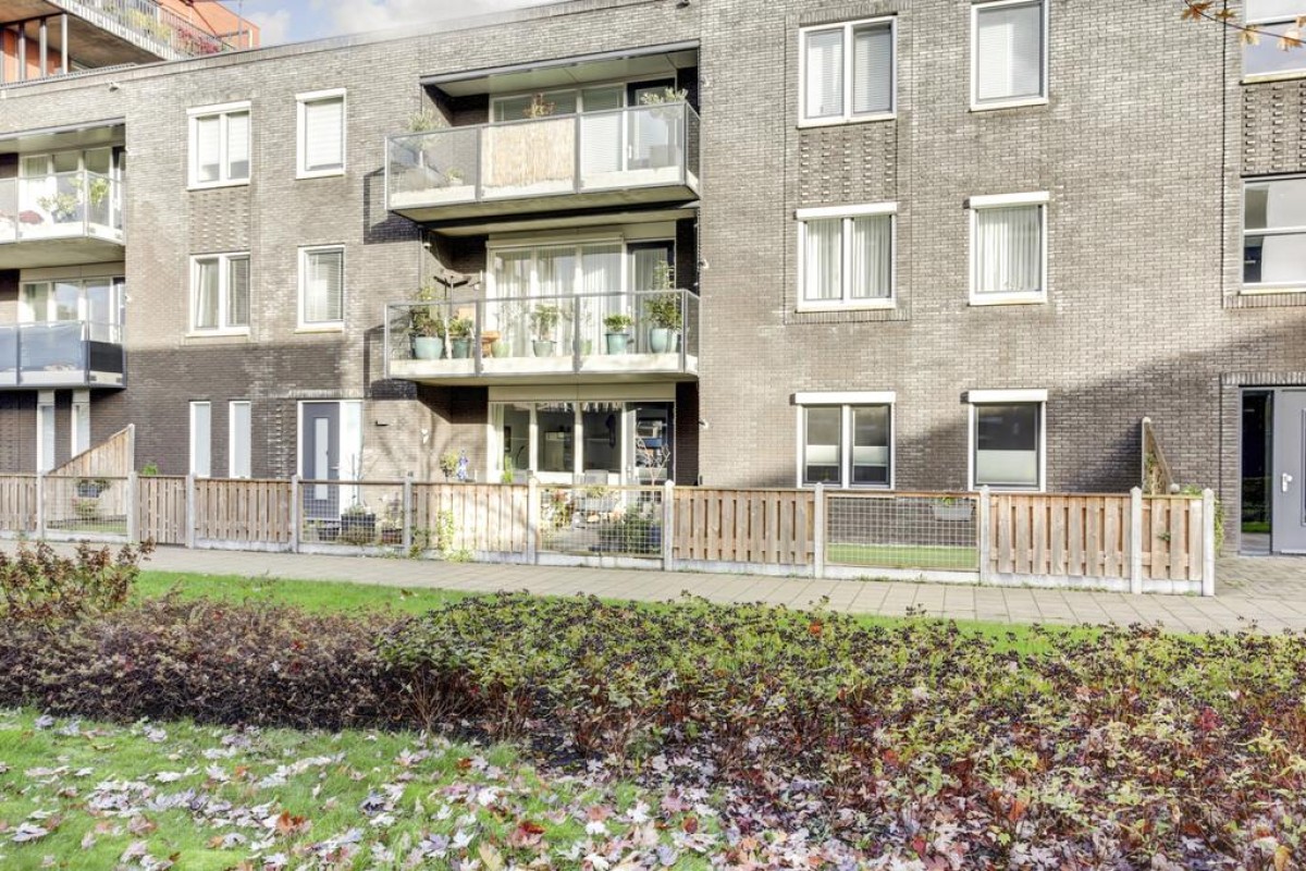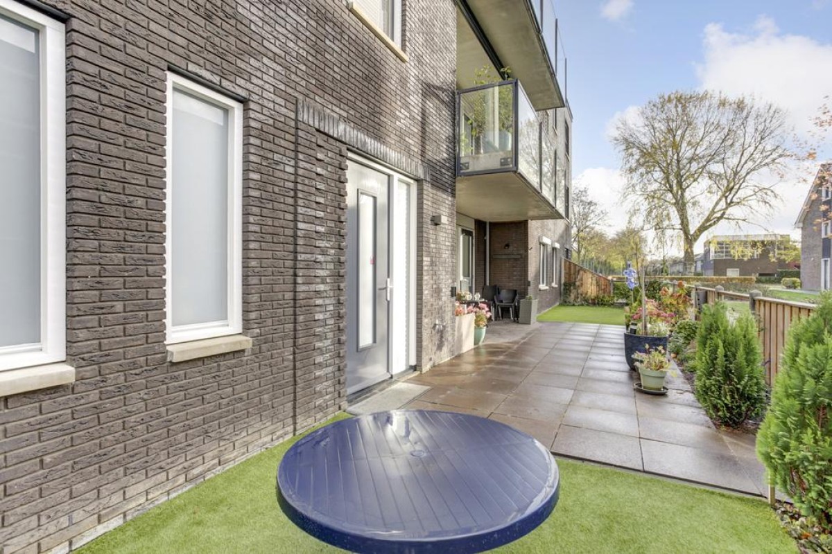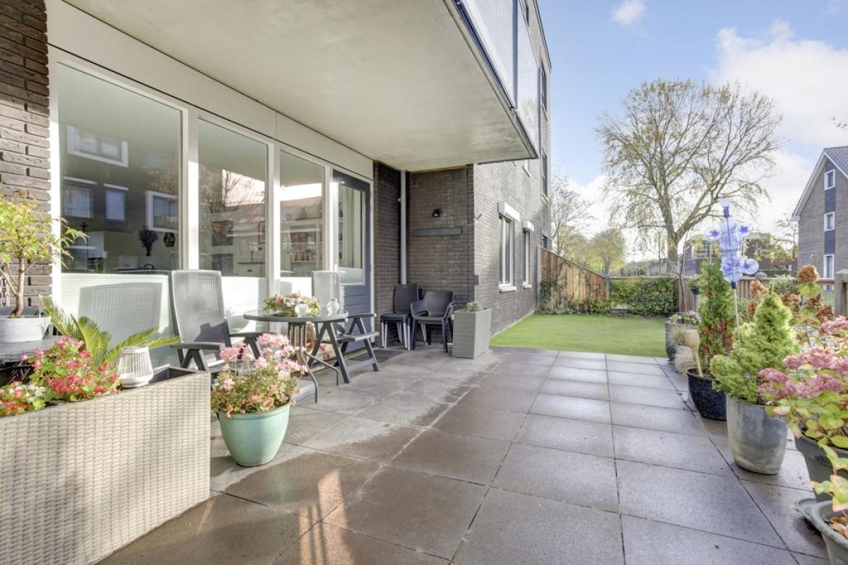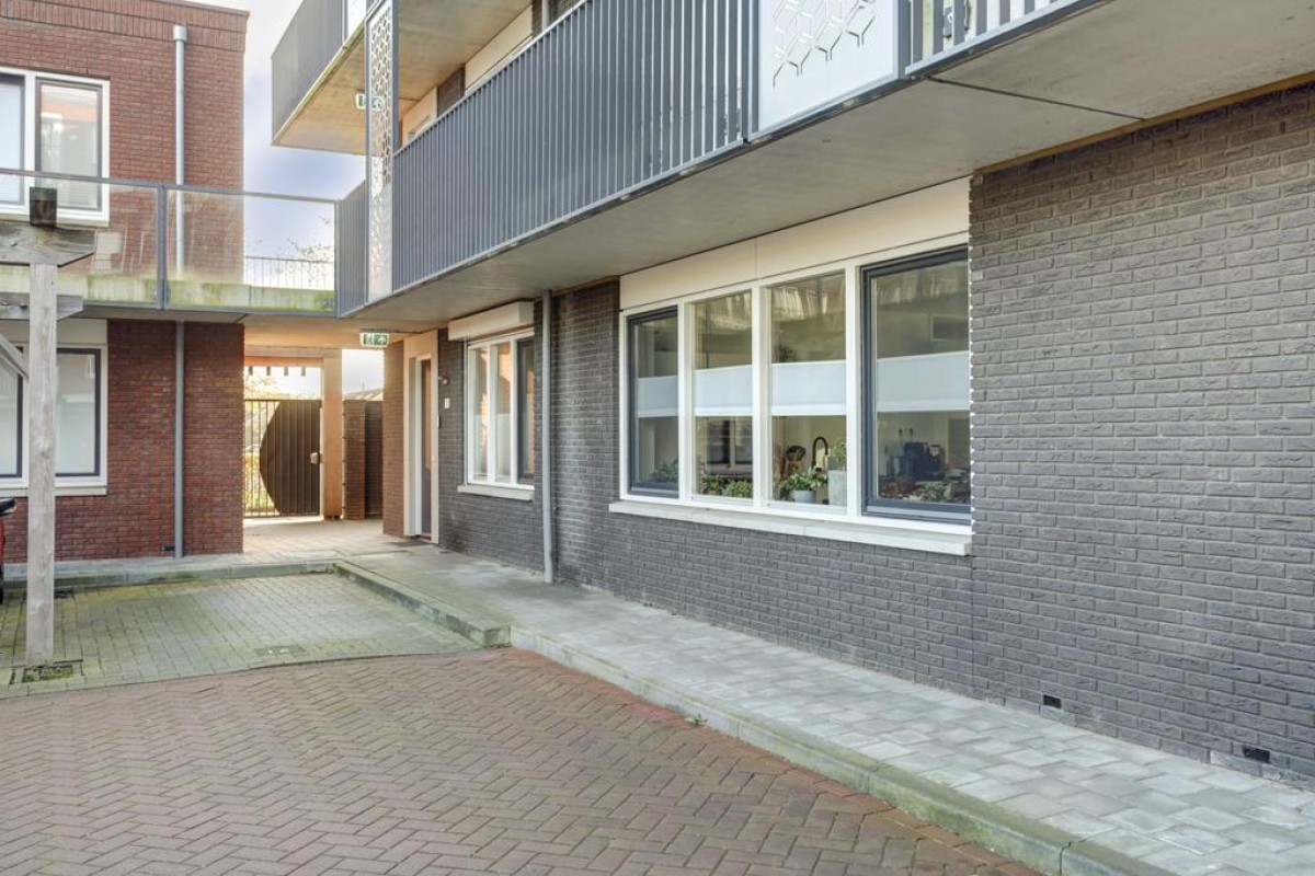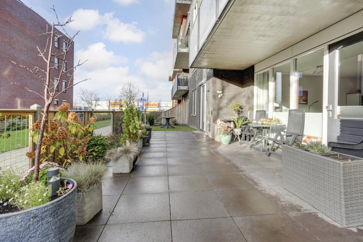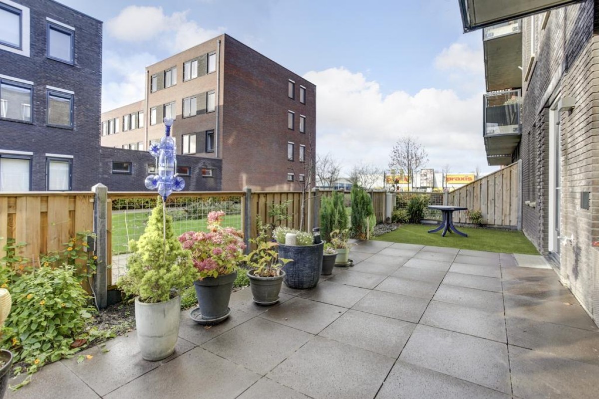 Lees verderVanuit het binnenterrein staat u direct voor het appartement en middels een algemene hal met trappenhuis en lift komt u op de corridor die toegang geeft naar de diverse verdiepingen. Dit appartement is op een hoek op de begane grond gesitueerd en beschikt daarmee over een ruime privé-tuin op het zuiden.