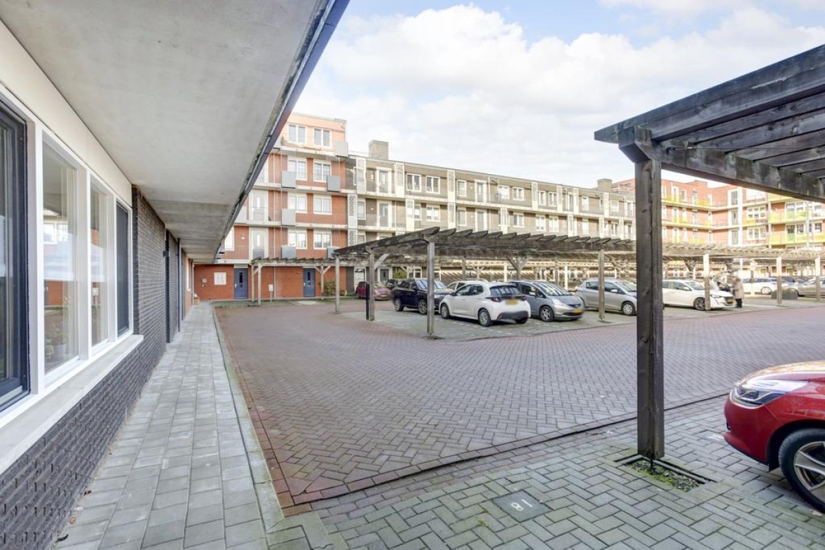 Het bijzondere gebouw heeft een beschut binnenterrein met parkeerplaatsen onder een fraai pergola. Er zijn twee liften in het gebouw en ieder appartement heeft een parkeerplaats plus ruime berging op de begane grond.