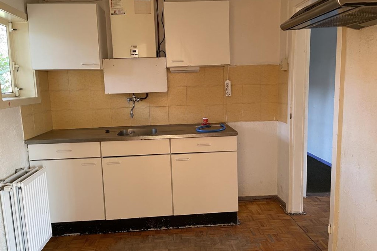 Lees verderBadkamer met een douche wastafel en wasmachineaansluiting. Vanuit de hal is tevens een (slaap)kamer toegankelijk