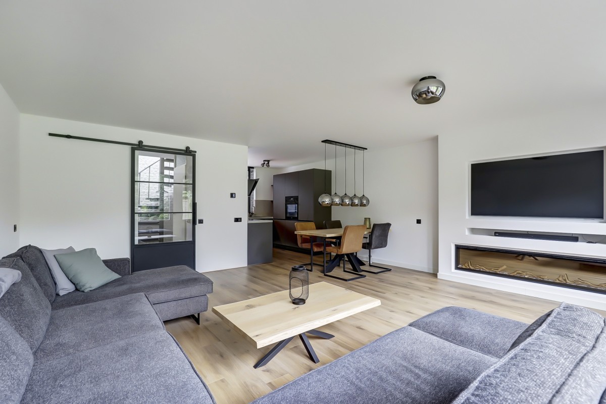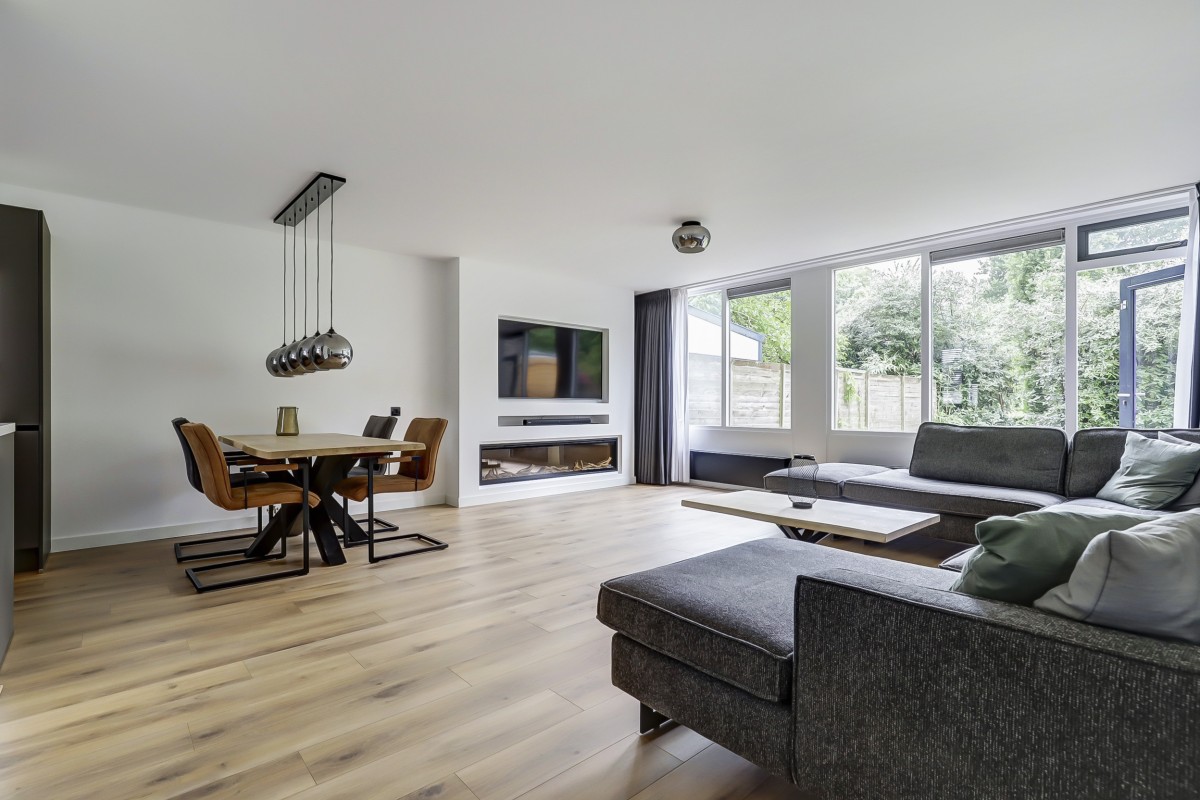 Lees verderDe royale tuingerichte woonkamer beschikt over een laminaatvloer, cinewall en een deur naar de achtertuin. Aan de voorzijde bevindt zich de moderne straatgerichte keuken in U-opstelling (2024), voorzien van diverse inbouwapparatuur: koelkast, vriezer, vaatwasser, combimagnetron, inductiekookplaat en afzuigschouw.