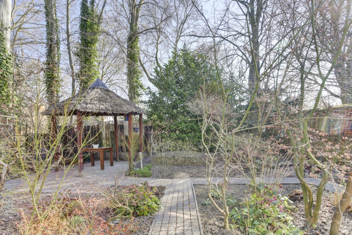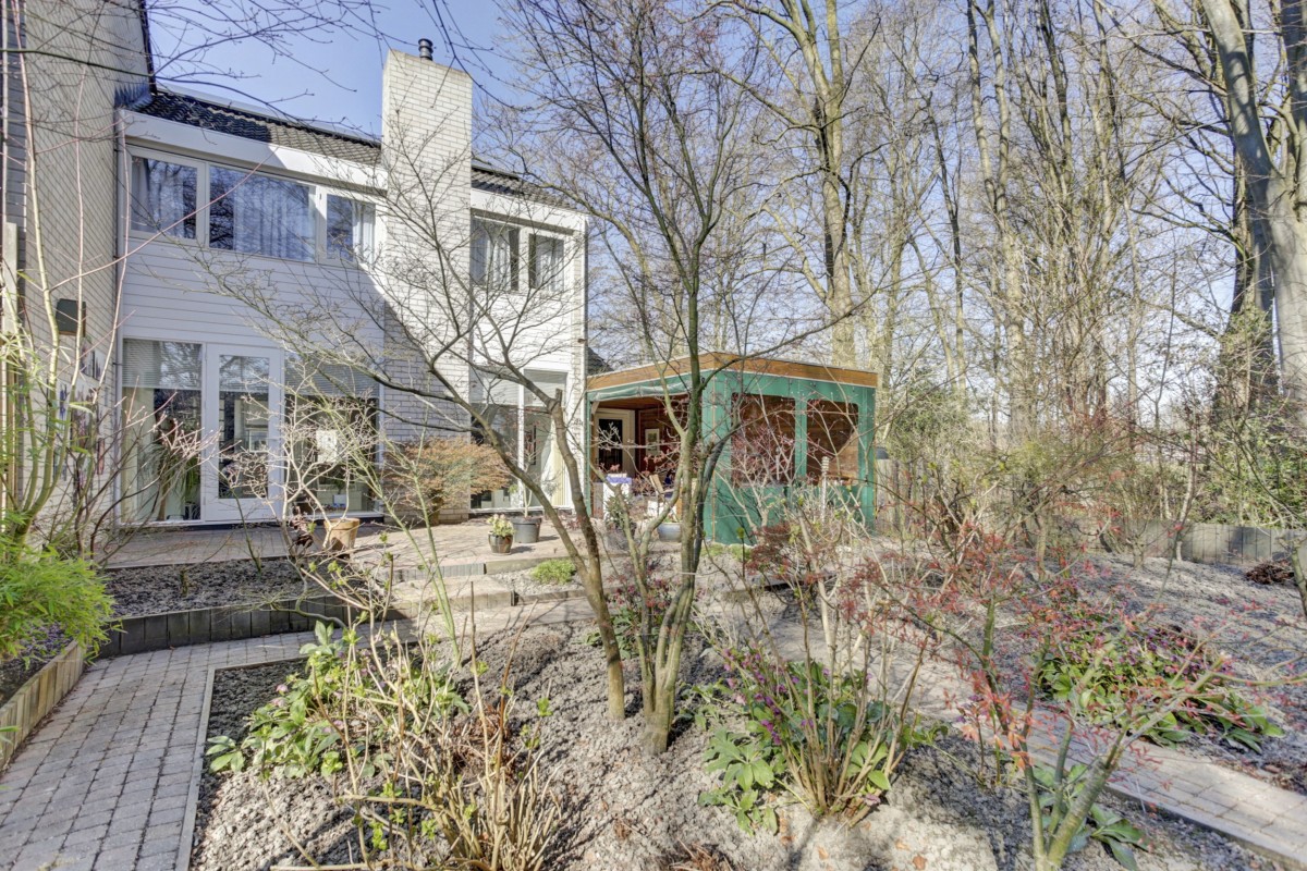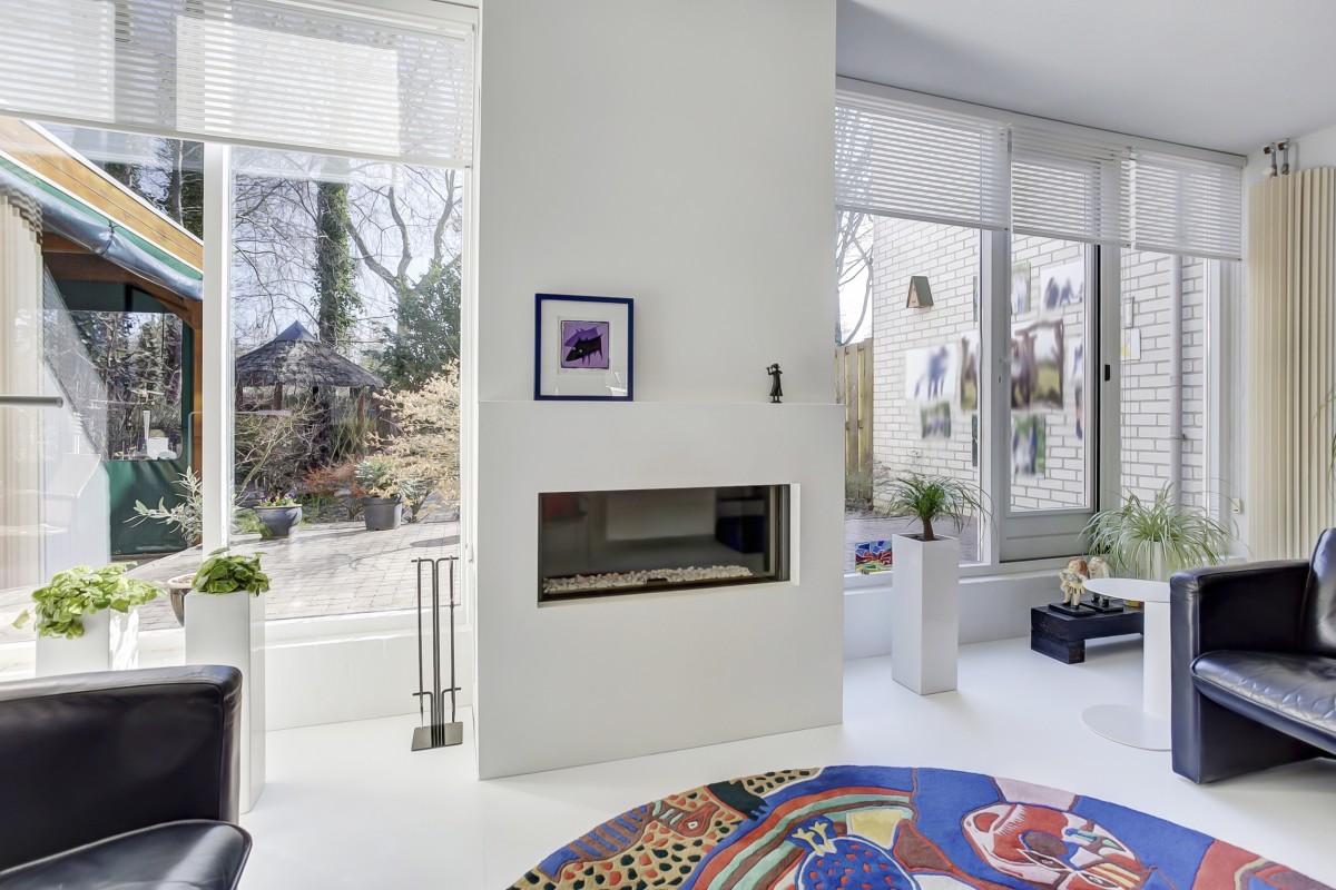 Lees verderMooie lichte straatgerichte eethoek met aangrenzend de luxe open Poggenpohl keuken in een U-opstelling gerealiseerd voorzien van een ingebouwde vaatwasser, koelkast, Quooker, 5-pits gaskookplaat, ruime Miele oven, afzuigkap, veel werkblad en kastruimte. De zithoek is voorzien van een fraaie laminaatvloer voorzien van elektrische vloerverwarming, ingebouwde gashaard en prettig uitzicht op de tuin. Een tuindeur biedt toegang naar het zonneterras en de verzorgd aangelegde achtertuin. Vanuit de ontvangsthal biedt een loopdeur toegang tot de garage met de opstelplaats voor de wasmachine en de droger. Een vlizotrap biedt toegang tot de ruime bergzolder boven de garage met gevelraam, opstelplaats voor de c.v.-ketel en 3 persoons sauna en douchcabine. Achter de garage is een mooie aangebouwde overkapping gerealiseerd, voorzien van elektra en water, waar een heerlijke zitmogelijkheid geboden wordt direct tegen het naastgelegen bos. De diepe tuin is mooi aangelegd, beschikt over diverse zitjes en heel veel privacy.