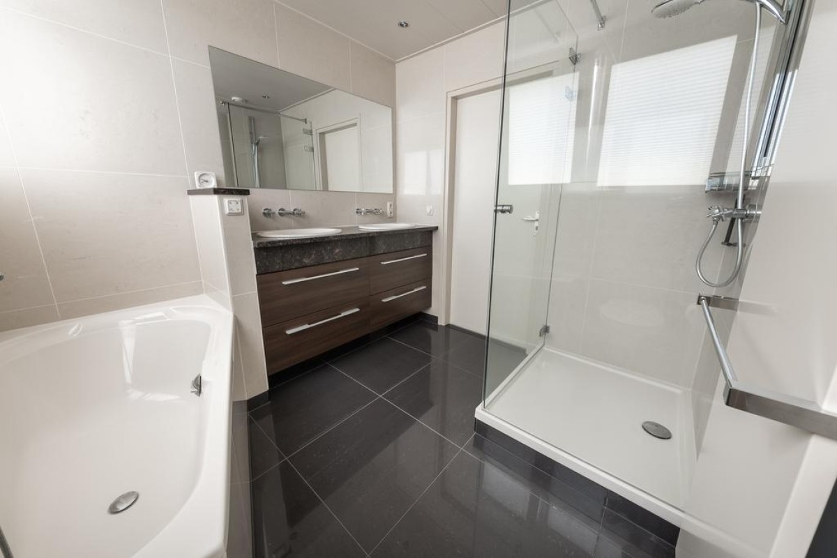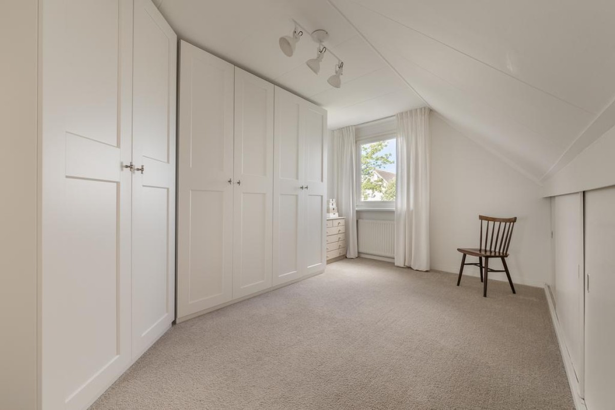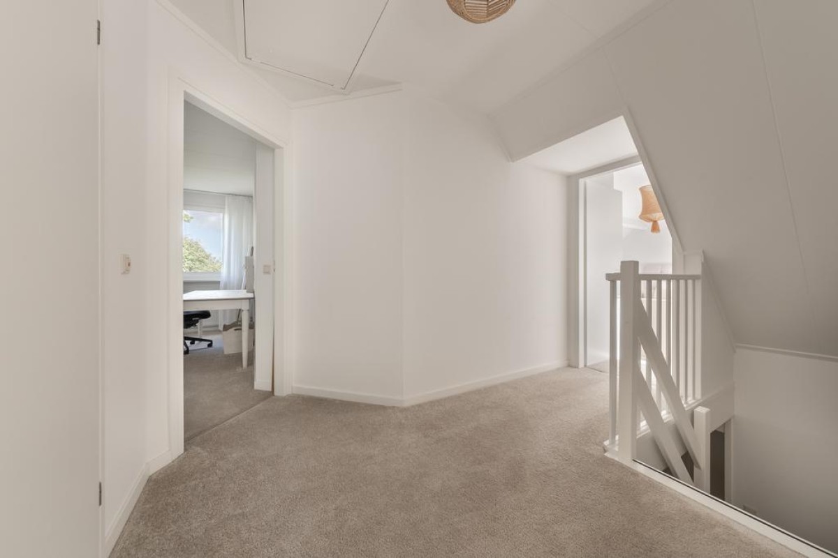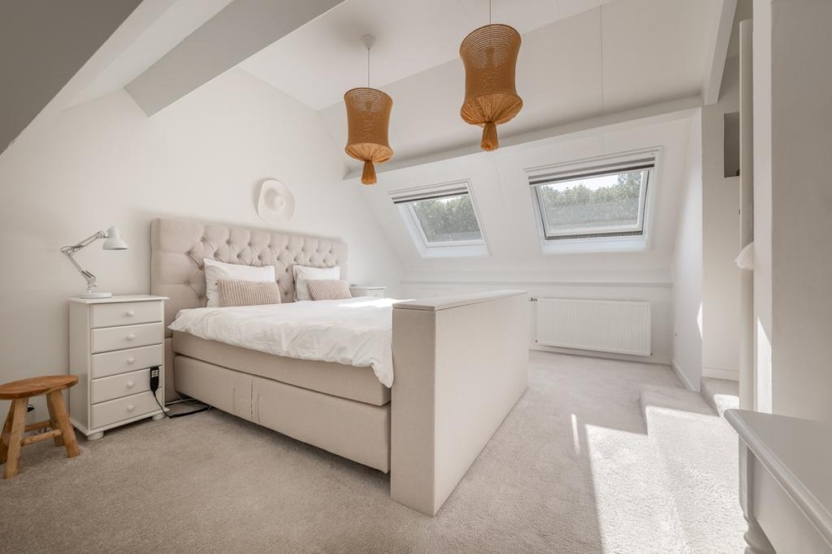 1e verdieping: vaste trap naar de overloop met aansluitend 3 mooie slaapkamers waarvan 1 slaapkamer voorzien is van een zeer riante walk-in-closet. De walk-in-closet kan tevens als 4e slaapkamer gebruikt worden. Elke kamer beschikt over veel bergruimte achter de knieschotten. Tevens is aansluitend de moderne badkamer voorzien van een onderhoudsarme dakkapel, 2e hangcloset, ruime douche met cabine, ligbad, wastafelmeubel met dubbele wastafel en designradiator gelegen.